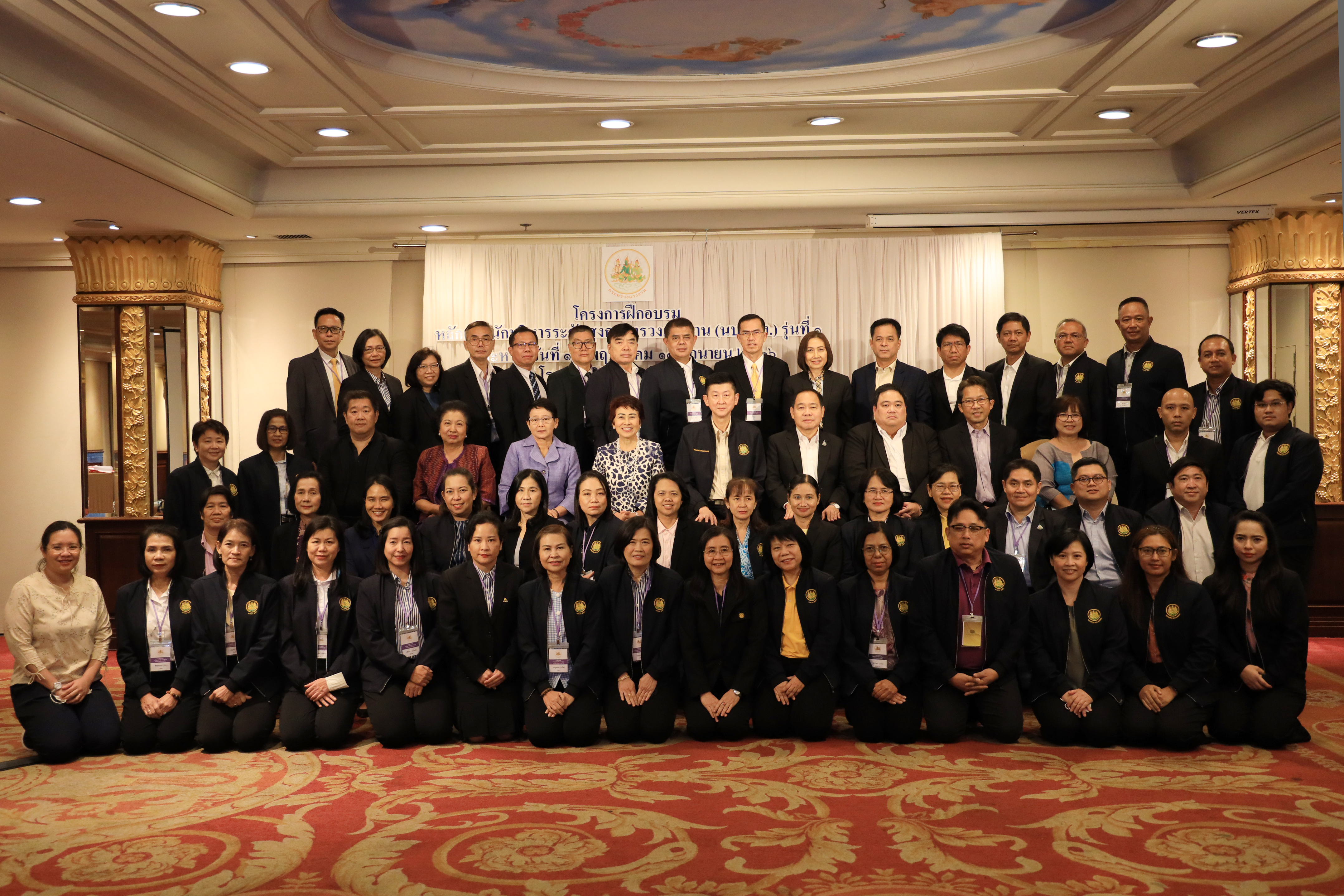 สำหรับการฝึกอบรมหลักสูตรนักบริหารระดับสูงกระทรวงแรงงาน (นบส.รง.) รุ่นที่ 1 เป็นหลักสูตรที่ได้รับการรับรองอย่างเป็นทางการจากสำนักงาน ก.พ. เป็นการอบรมร่วมกันจากทุกหน่วยงานในสังกัดกระทรวงแรงงาน รวมทั้งจากหน่วยงานราชการอื่นเข้าร่วมด้วย การฝึกอบรมหลักสูตรนี้ มีวัตถุประสงค์เพื่อเตรียมความพร้อมให้แก่ผู้ดำรงตำแหน่งประเภทอำนวยการหรือเทียบเท่าในการเข้าสู่ตำแหน่งประเภทบริหาร ระดับต้น เพื่อให้สามารถปฏิบัติหน้าที่ในตำแหน่งระดับบริหารได้อย่างมีประสิทธิภาพ และเป็นผู้บริหารมืออาชีพ สอดรับกับสถานการณ์และสภาพแวดล้อมที่เปลี่ยนแปลงไป รวมทั้งสร้างเครือข่ายและบูรณาการการทำงานด้านแรงงาน โดยมีผู้เข้ารับการฝึกอบรมเป็นข้าราชการที่ดำรงตำแหน่งประเภทอำนวยการจากหน่วยงานในสังกัดกระทรวงแรงงาน จำนวน 30 ราย และหน่วยงานภายนอก จำนวน 5 ราย จากกระทรวงการคลัง กระทรวงการท่องเที่ยวและกีฬา และกระทรวงเกษตรและสหกรณ์ รวมทั้งสิ้น จำนวน 35 ราย โครงสร้างของหลักสูตร แบ่งออกเป็น 4 ช่วง รวม 168 ชั่วโมง ประกอบด้วย กิจกรรมเตรียมความพร้อม กิจกรรมการเรียนรู้ การจัดทำข้อเสนอเพื่อขับเคลื่อนนโยบายสู่การปฏิบัติในรูปแบบผลงานรายบุคคลและผลงานกลุ่ม สรุปผลการเรียนรู้ การนำเสนอรายงานการศึกษาส่วนบุคคล (IS) และรายงานการศึกษากลุ่ม (GP) รวมทั้งการประเมินสมรรถนะทางการบริหารอีกด้วย