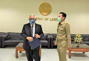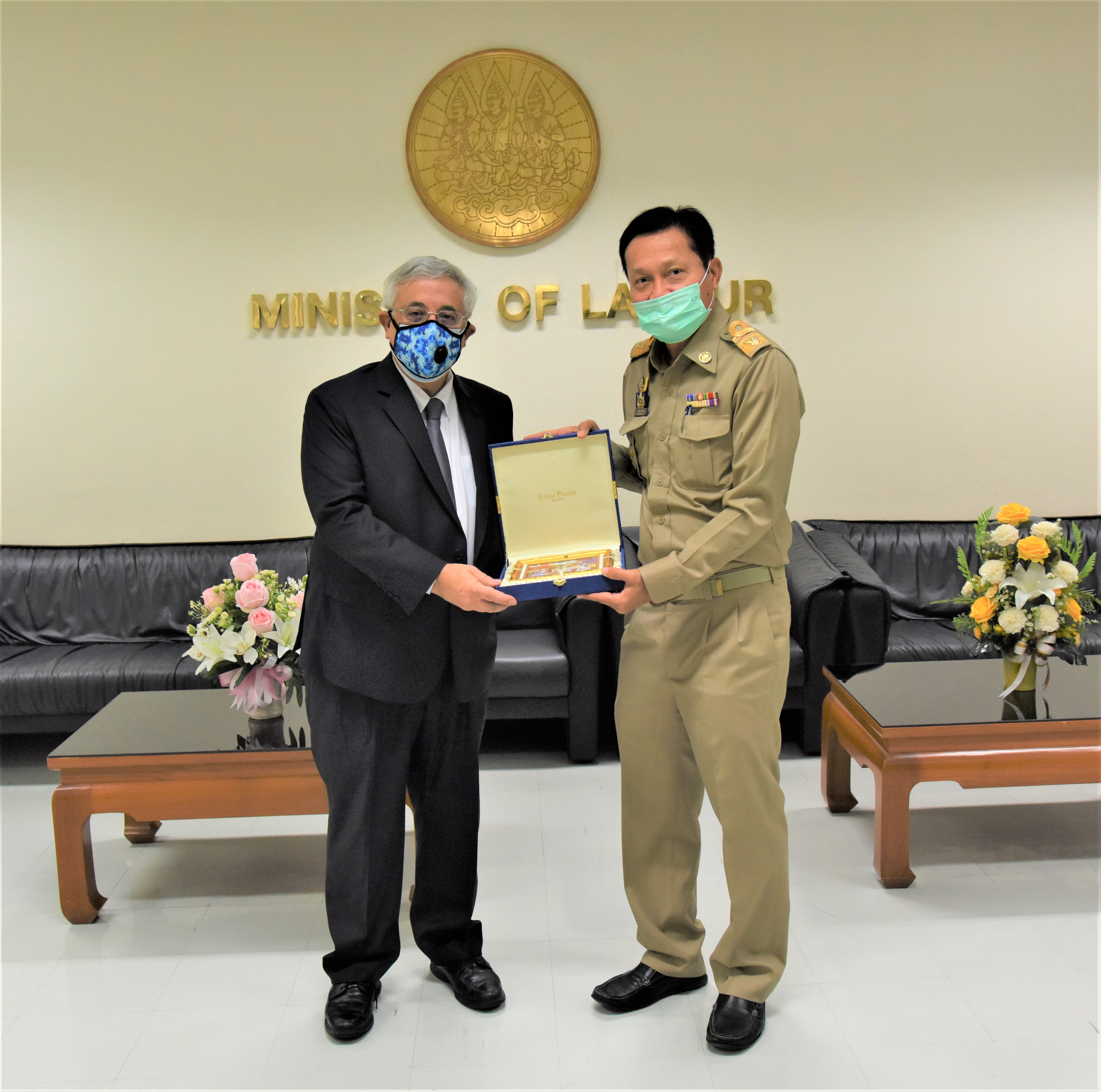 วันที่ ๒๘ มิถุนายน ๒๕๖๔ เวลา ๐๙.๐๐ น. นายสุทธิ สุโกศล ปลัดกระทรวงแรงงาน ให้การต้อนรับ นายเมเอีร์ ชโลโม (H.E. Dr. Mei Shlomo) เอกอัครราชทูตอิสราเอลประจำประเทศไทย เข้าพบเพื่ออำลาในโอกาสครบวาระการดำรงตำแหน่ง ณ ห้องทำงานปลัดกระทรวงแรงงาน ชั้น ๗ อาคารกระทรวงแรงงาน
