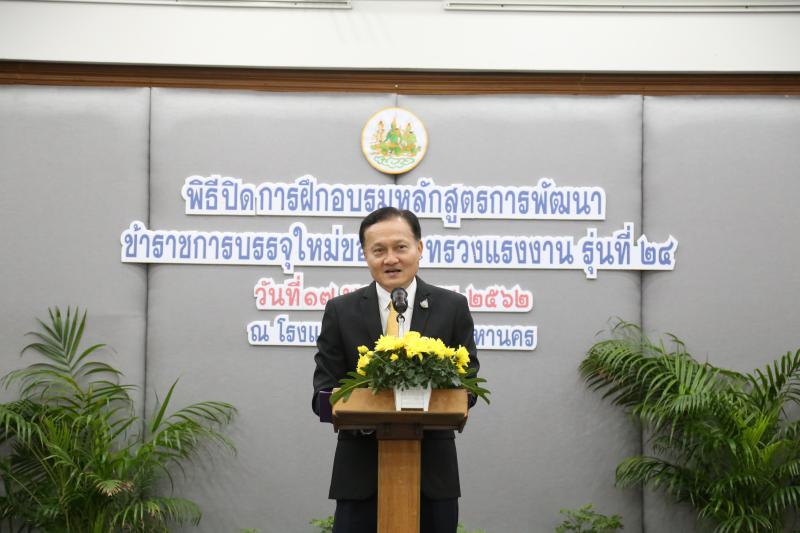 วันที่ ๑๗ พฤศจิกายน ๒๕๖๒ เวลา ๐๙.๐๐ น. นายสุทธิ สุโกศล ปลัดกระทรวงแรงงาน เป็นประธานปิดการฝึกอบรมหลักสูตรการพัฒนาข้าราชการบรรจุใหม่ของกระทรวงแรงงาน รุ่นที่ ๒๔ พร้อมประดับเครื่องหมายอินทรธนูให้แก่ข้าราชการใหม่ที่ผ่านการฝึกอบรม ณ ห้องวิสุทธิกษัตริย์ ชั้น ๖ โรงแรมตรัง กรุงเทพมหานคร โดยกล่าวว่า ข้าราชการบรรจุใหม่ทุกคนในที่นี้ จะเป็นทรัพยากรบุคคลที่มีคุณค่าของกระทรวงแรงงาน จึงขอให้ทุกคนจงตระหนักถึงความสำคัญในบทบาทหน้าที่ และความรับผิดชอบในฐานะข้าราชการที่ดี ทุกคนต้องเป็นข้าราชการรุ่นใหม่ที่ใฝ่เรียนรู้ มุ่งมั่นพัฒนาตนเองให้ทันยุคสมัย เท่าทันการเปลี่ยนแปลงของโลกในด้านต่างๆ อย่างสม่ำเสมอ รวมทั้งมีความสามารถนำเทคโนโลยีใหม่ๆ มาประยุกต์สร้างสรรค์นวัตกรรมที่เป็นประโยชน์ต่อการพัฒนางานของหน่วยงานให้มีประสิทธิภาพยิ่งขึ้น