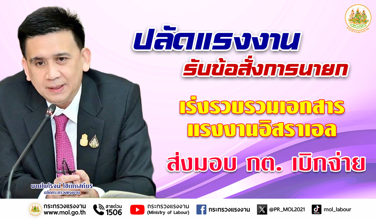 นายไพโรจน์ กล่าวต่อว่า ผมได้สั่งการให้แรงงานจังหวัดทุกจังหวัดอำนวยความสะดวกในการรับคำร้องและรวบรวมเอกสารหลักฐานการเดินทางของแรงงานไทยที่กลับจากอิสราเอล และให้สำนักตรวจและประเมินผล สำนักงานปลัดกระทรวงแรงงานรวบรวมส่งกระทรวงการต่างประเทศ ซึ่งความคืบหน้าการยื่นคำขอรับเงินค่าใช้จ่ายในการเดินทางกลับประเทศไทยของแรงงานไทยในอิสราเอล พบว่า ระหว่างวันที่ 31 ต.ค. – 7 พ.ย.66 มีแรงงานยื่นคำร้องฯ ผ่านศูนย์ช่วยเหลือแรงงานและติดตามสถานการณ์ความไม่สงบในอิสราเอลที่ชั้นล่าง อาคารกระทรวงแรงงาน จำนวน 139 ราย และยื่นคำร้องฯ ผ่านศูนย์ช่วยเหลือฯ ในจังหวัด จำนวน 2,321 ราย รวมทั้งสิ้น 2,460 ราย เป็นค่าตั๋วเครื่องบิน 1,077 ราย และค่าแท็กซี่ 1,866 ราย กระทรวงแรงงานได้ส่งคำร้องให้กระทรวงการต่างประเทศแล้ว จำนวน 125 ราย และอยู่ระหว่างการตรวจสอบคำร้องฯ ก่อนส่งกระทรวงการต่างประเทศอีก 580 ราย
