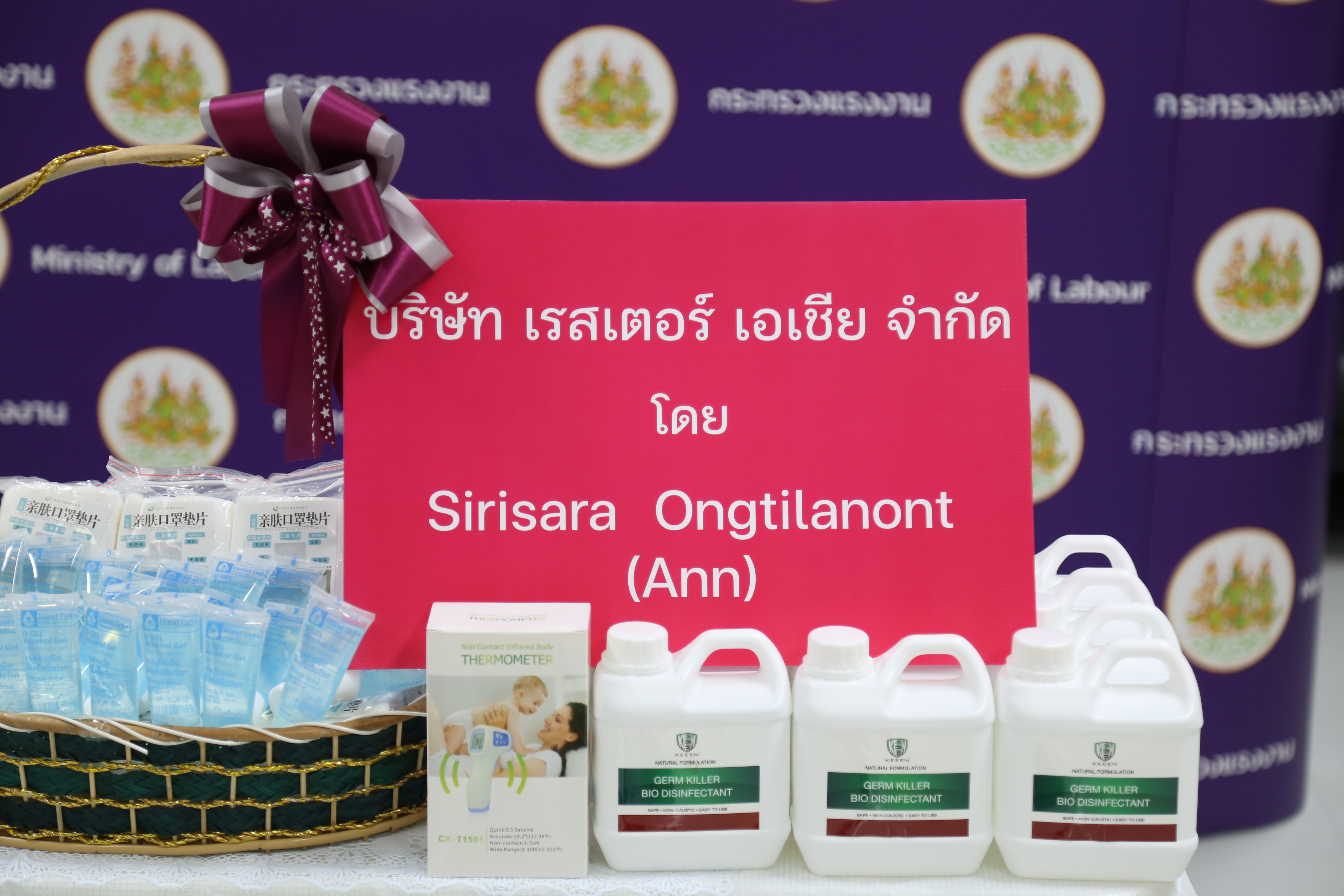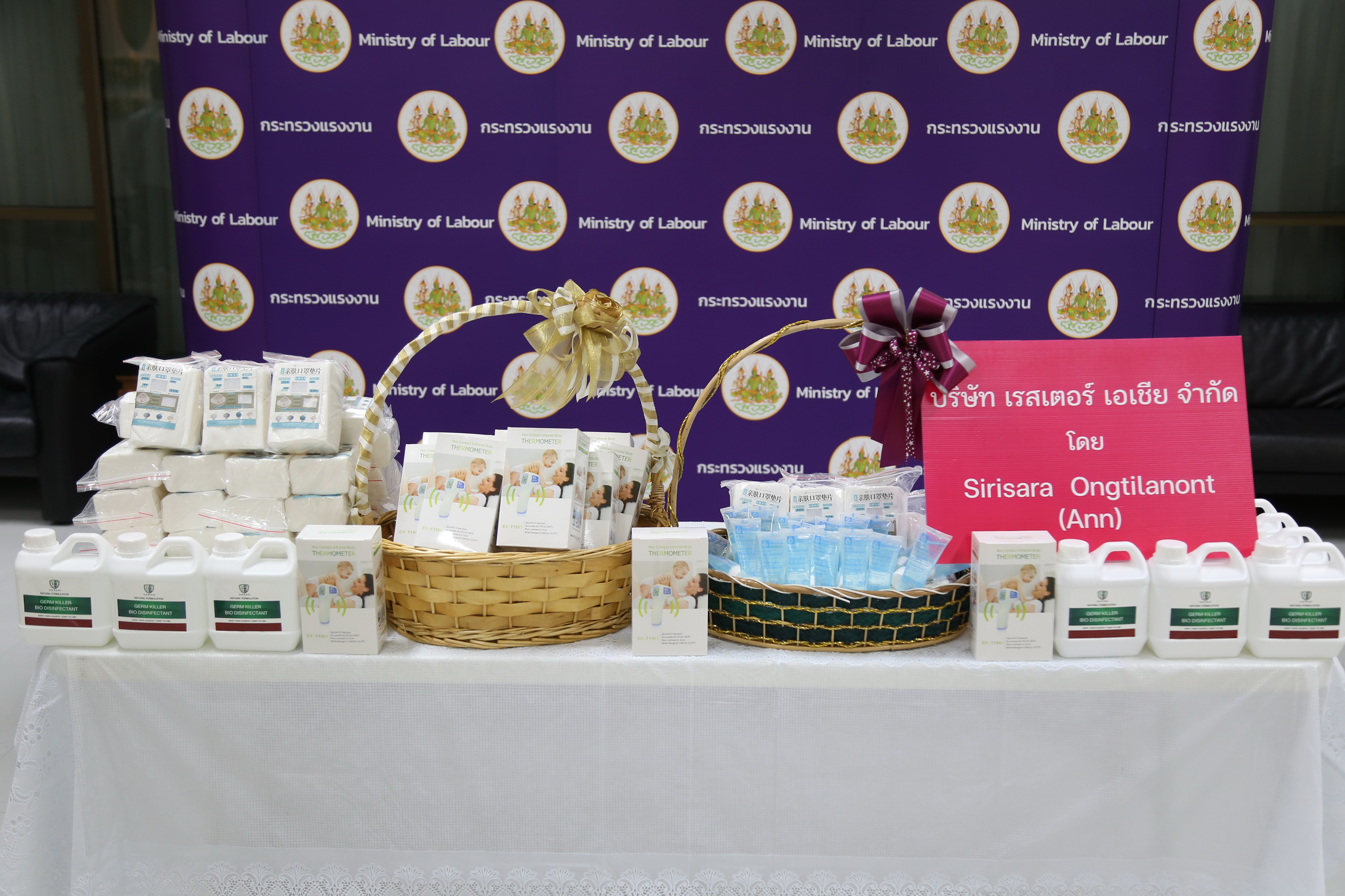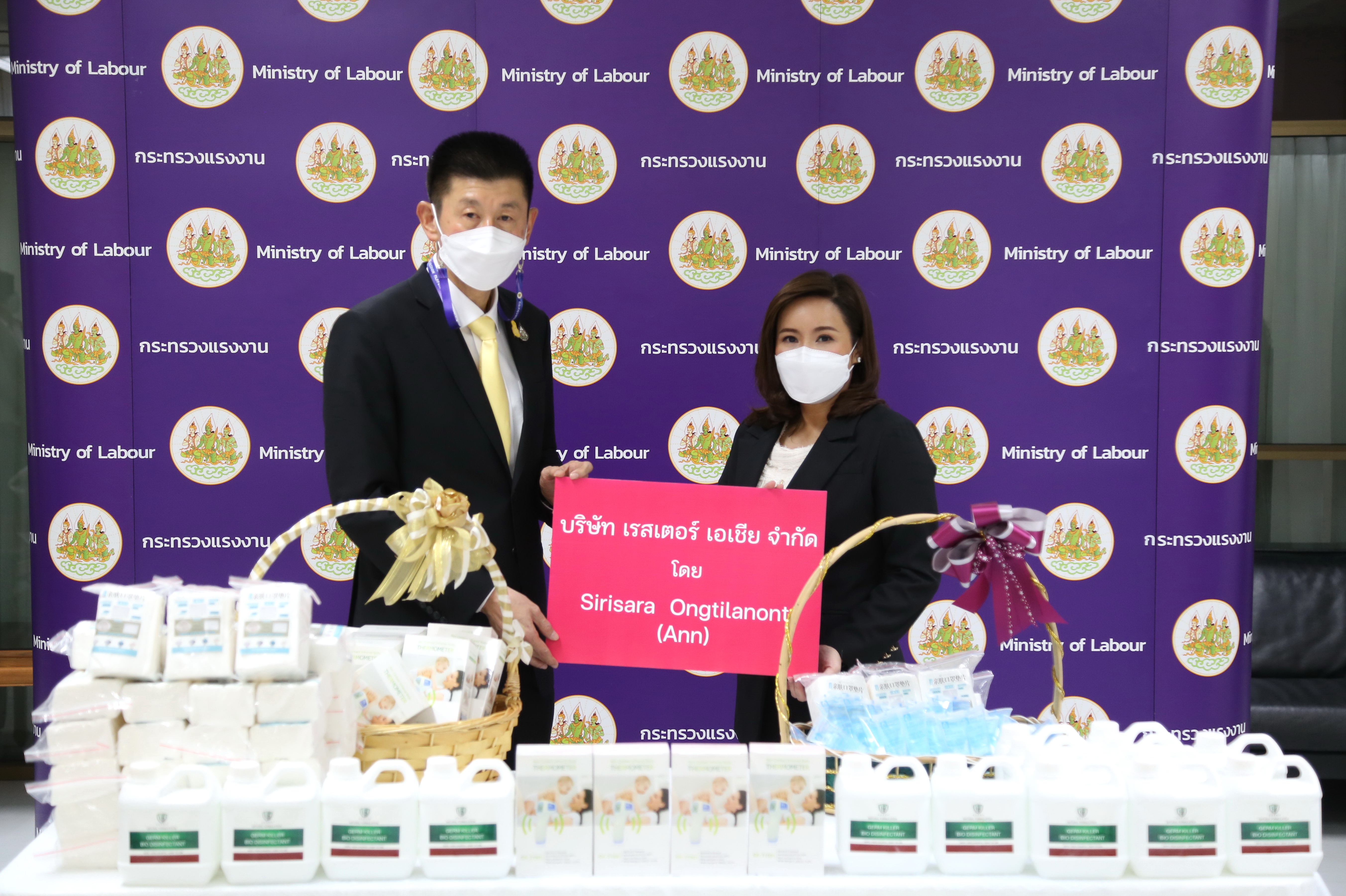 วันที่ 16 ธันวาคม 2564 เวลา 15.00 น. นายบุญชอบ สุทธมนัสวงษ์ ปลัดกระทรวงแรงงาน รับมอบสิ่งของจาก นางสาวศิริสรา องค์ติลานนท์ บริษัท เรสเตอร์ เอเชีย จำกัด ได้แก่ เทอร์โมมิเตอร์ จำนวน 150 อัน เจลแอลกอฮอล์ 12,000 หลอด แผ่นกรองหน้ากากอนามัย 500 ห่อ และน้ำยาพ่นฆ่าเชื้อ ขนาด 1 ลิตร 100 แกลลอน ณ บริเวณโถงหน้าห้องทำงาน ปลัดกระทรวงแรงงาน ชั้น 7 อาคารกระทรวงแรงงาน