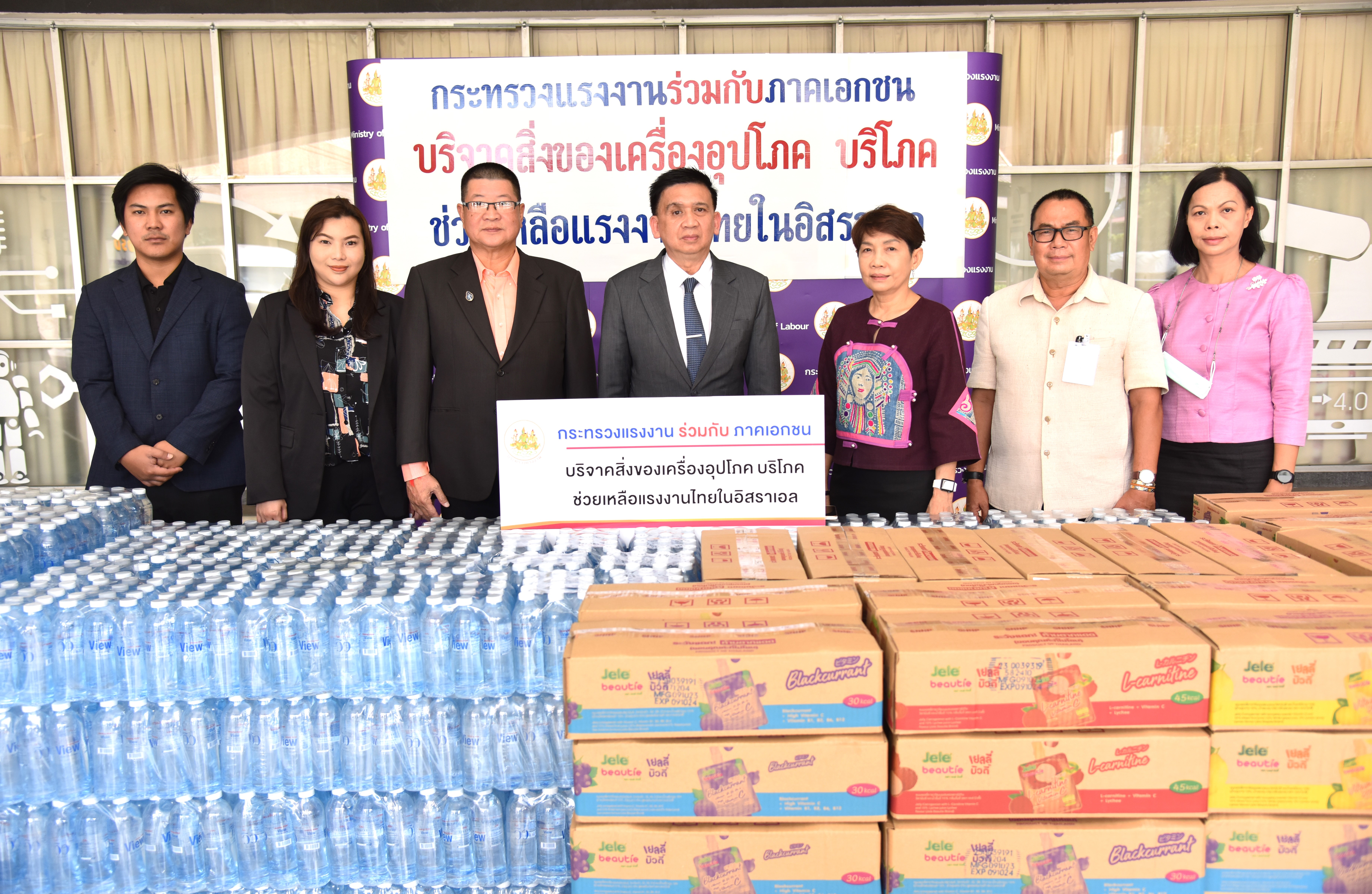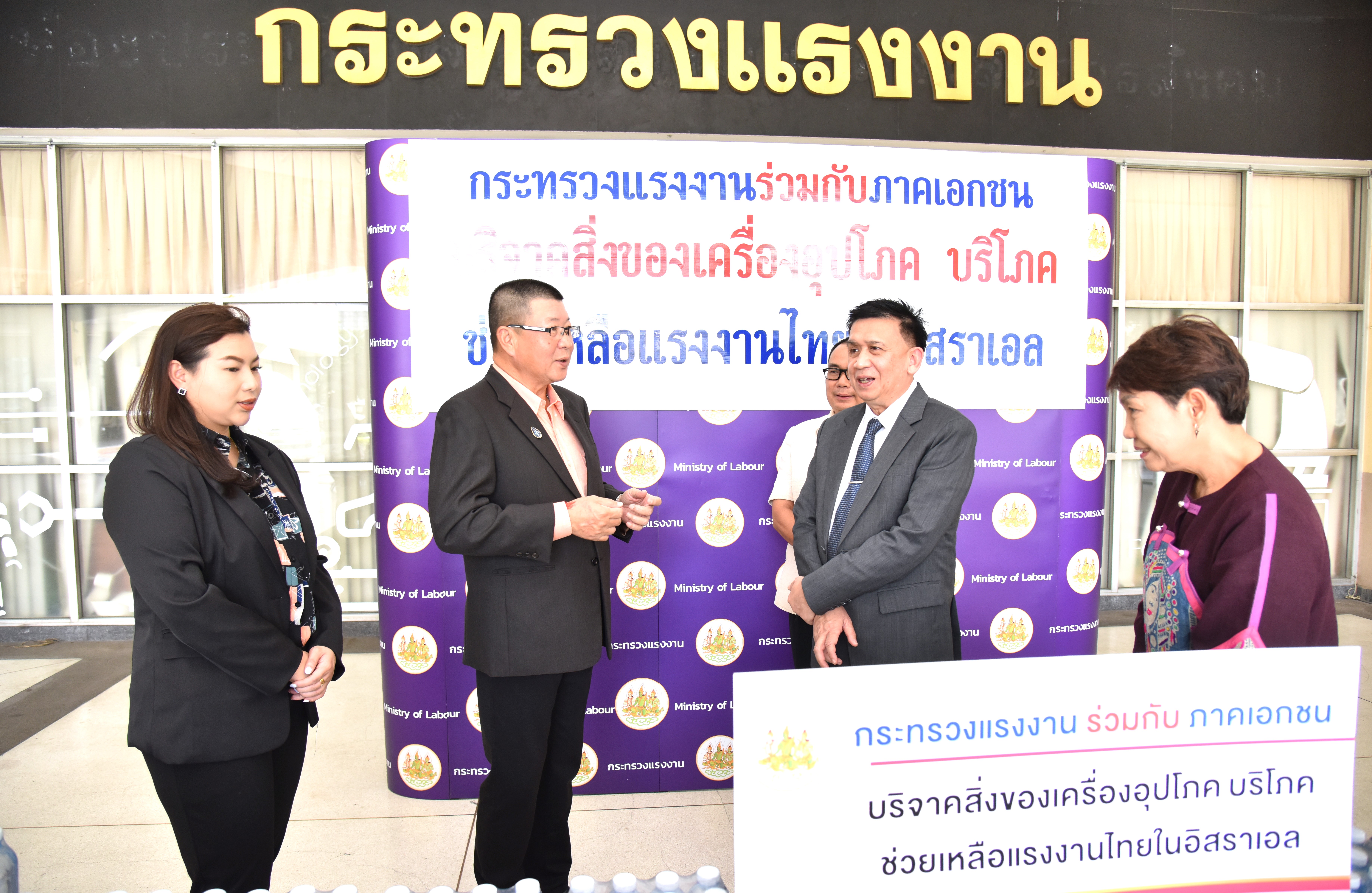 ทั้งนี้ ผู้ประกอบการภาคเอกชนใดที่มีความประสงค์จะนำสิ่งของ ข้าวสาร อาหารแห้ง เครื่องอุปโภคบริโภค มาบริจาคเพื่อนำไปช่วยเหลือแรงงานไทยที่ได้รับผลกระทบจากสถานการณ์ความไม่สงบในอิสราเอล สามารถติดต่อได้ที่กองกลาง สำนักงานปลัดกระทรวงแรงงาน โทรศัพท์ 02-2321142 , 02-2321443 , 02-2321156 และ 098-4163636 , 089-9876016 , 081-2480702