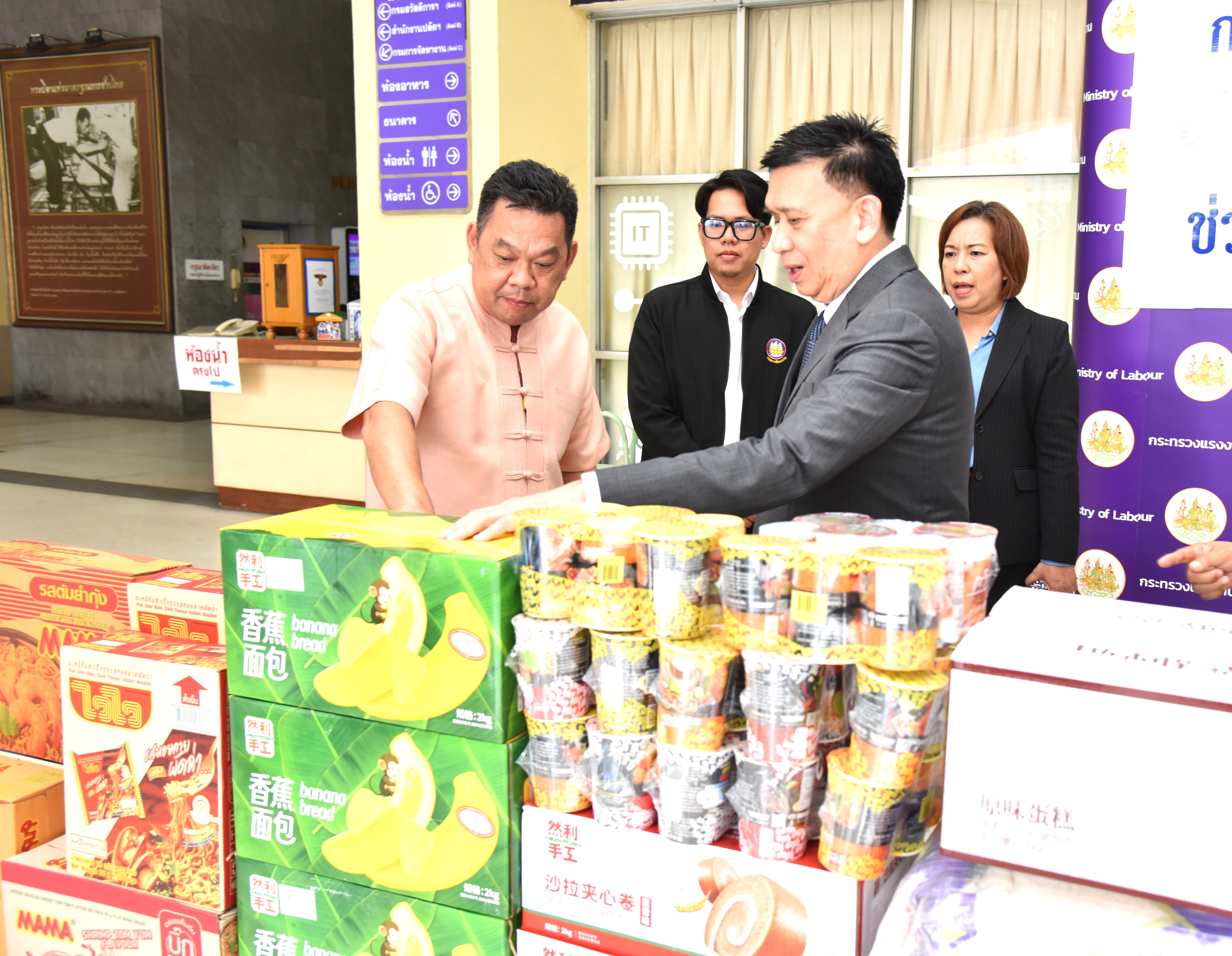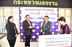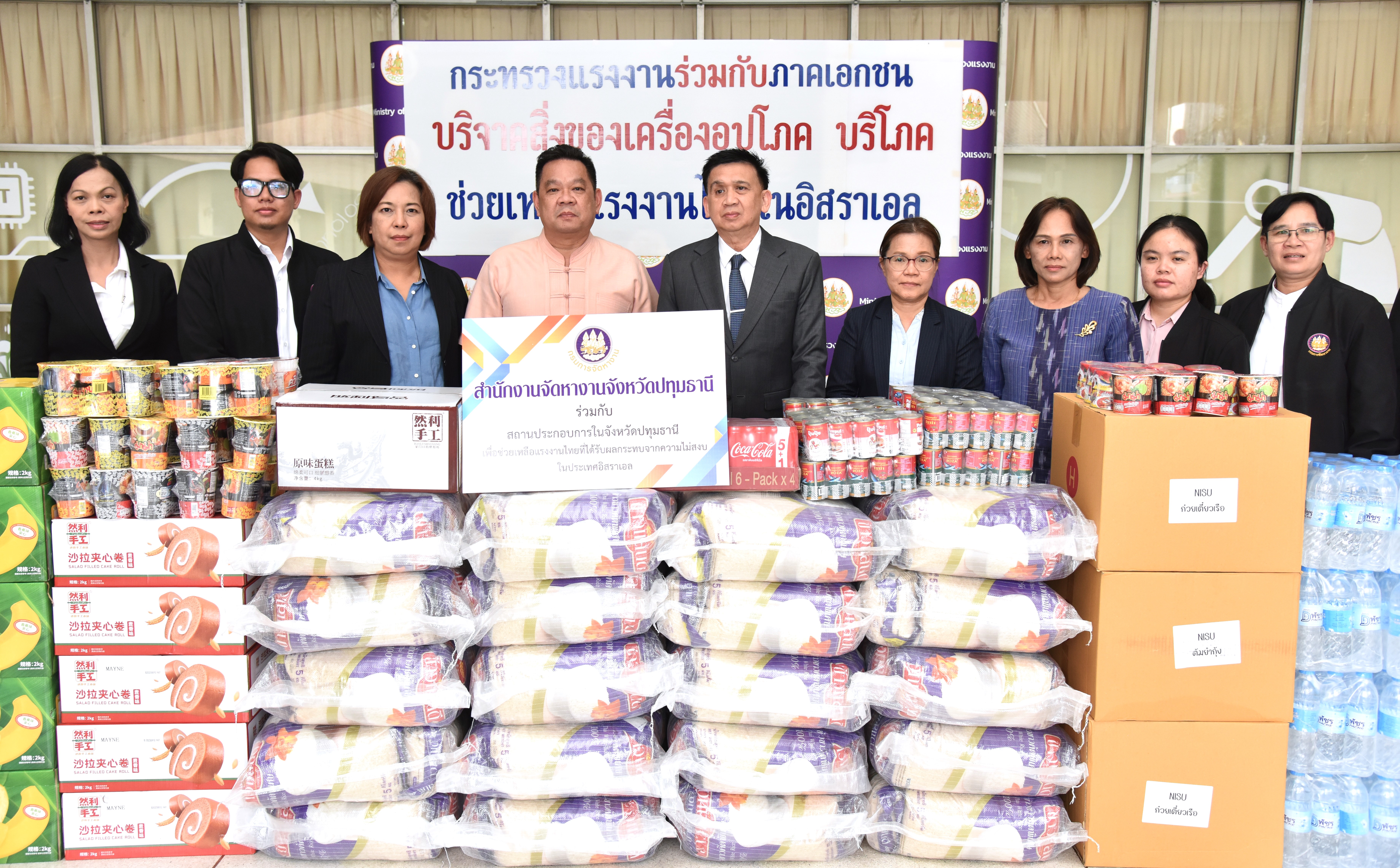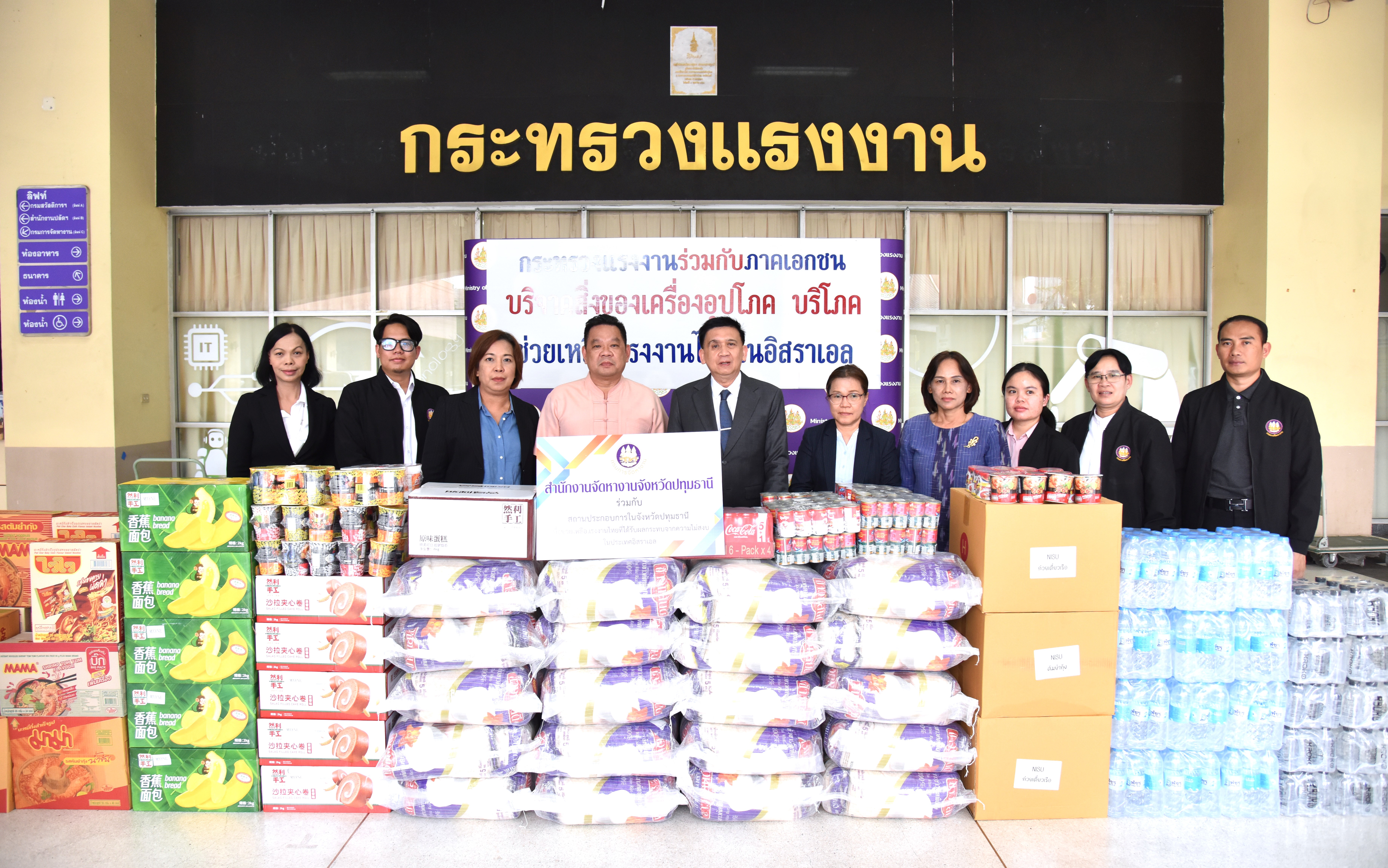 วันที่ 17 ตุลาคม 2566 นายไพโรจน์ โชติกเสถียร ปลัดกระทรวงแรงงาน รับมอบเครื่องอุปโภคบริโภค จาก นายสกลพิสิษฐ์ คุณาวรนนท์ บริษัท ศรีนานาพร มาร์เก็ตติ้ง จํากัด และสำนักงานจัดหางานจังหวัดปทุมธานี โดยมี นางสาวกรจิรัฏฐ์ พงจันทร์ศธร ผู้ช่วยปลัดกระทรวงแรงงาน ณ บริเวณโถงชั้นล่าง อาคารกระทรวงแรงงาน โดยสิ่งของเหล่านี้กระทรวงแรงงานจะจัดส่งไปให้ทูตแรงงานที่อิสราเอล นำไปแจกจ่ายให้กับแรงงานที่พักอยู่ในศูนย์พักพิง เพื่อบรรเทาความเดือดร้อนในเบื้องต้นต่อไป