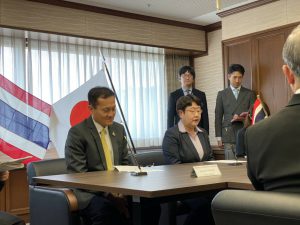 ในโอกาสนี้ปลัดกระทรวงแรงงานได้เป็นหัวหน้าคณะผู้แทนฝ่ายไทยในการหารือข้อราชการกับ Ms. Shoko Sasaki ผู้บัญชาการสำนักงานตรวจคนเข้าเมือง กระทรวงยุติธรรมญี่ปุ่นเกี่ยวกับการส่งเสริมการจัดส่งและการรับแรงงานที่มีทักษะเฉพาะจากประเทศไทยไปทำงานในประเทศญี่ปุ่นให้เป็นไปอย่างราบรื่น แก้ไขปัญหาในการส่งและการรับแรงงาน และปัญหาของการพำนักอยู่ในญี่ปุ่นของแรงงานที่มีทักษะเฉพาะ จะก่อให้เกิดประโยชน์สูงสุดในการถ่ายทอดทักษะฝีมือทางเทคนิค รวมถึงการกระชับความสัมพันธ์ด้านแรงงานระหว่างกระทรวงแรงงานและหน่วยงานภาครัฐของประเทศญี่ปุ่น ซึ่งเป็นส่วนหนึ่งที่จะช่วยผลักดันให้การเป็นหุ้นส่วนทางเศรษฐกิจระหว่างกันของทั้งสองประเทศบรรลุสู่จุดมุ่งหมายต่อไป