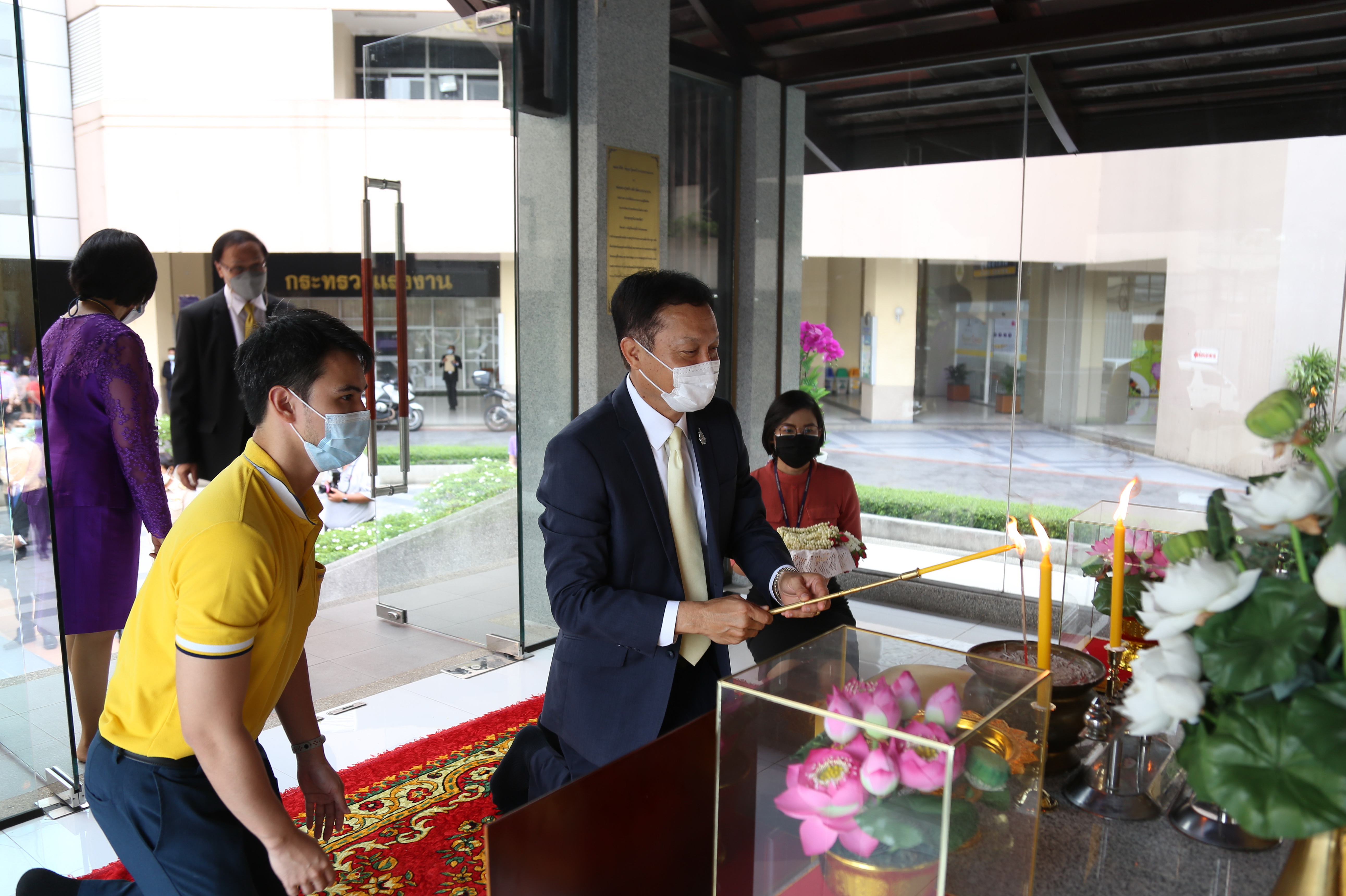 วันที่ 30 กันยายน 2564 เวลา 08.19 น. นายสุทธิ สุโกศล ปลัดกระทรวงแรงงาน พร้อมด้วย นางสาวอำพันธ์ ธุววิทย์ รองปลัดกระทรวงแรงงาน นายสุชาติ พรชัยวิเศษกุล รองปลัดกระทรวงแรงงาน นายเชิดศักดิ์ วิสุทธิกุล ผู้ตรวจราชการกระทรวงแรงงาน และนางสาวภัทรพร สมันตรัฐ ผู้ช่วยปลัดกระทรวงแรงงาน กราบสักการะสิ่งศักดิ์สิทธิ์ประจำกระทรวงแรงงาน ประกอบด้วย พระพุทธสุทธิธรรมบพิตร พระพุทธชินราช ศาลพ่อปู่ชัยมงคล ศาลท้าวมหาพรหมเทวฤทธิ์ และศาลพ่อปู่สุชินพรหมมา เนื่องในวาระเกษียณอายุราชการ ณ บริเวณกระทรวงแรงงาน