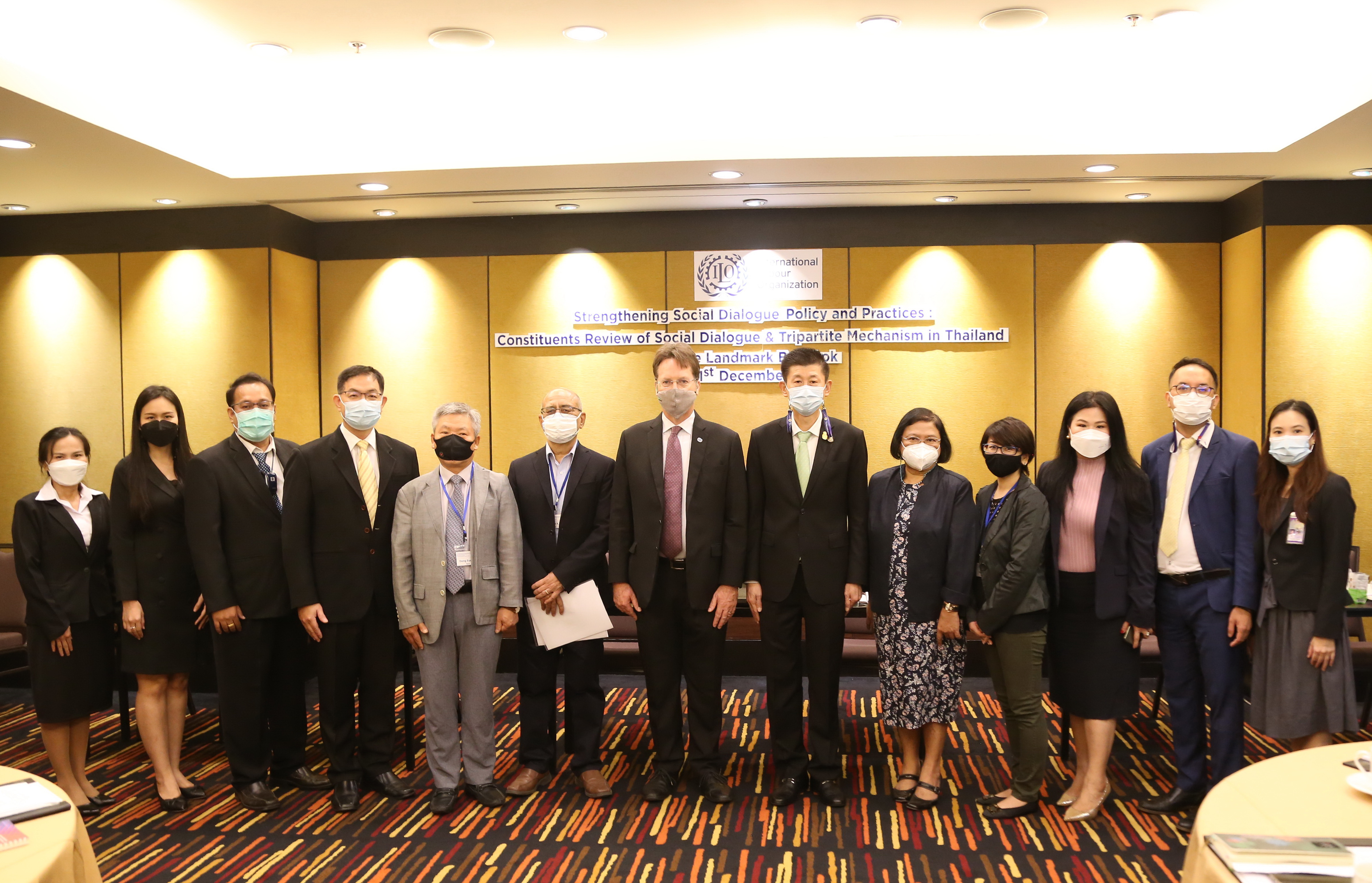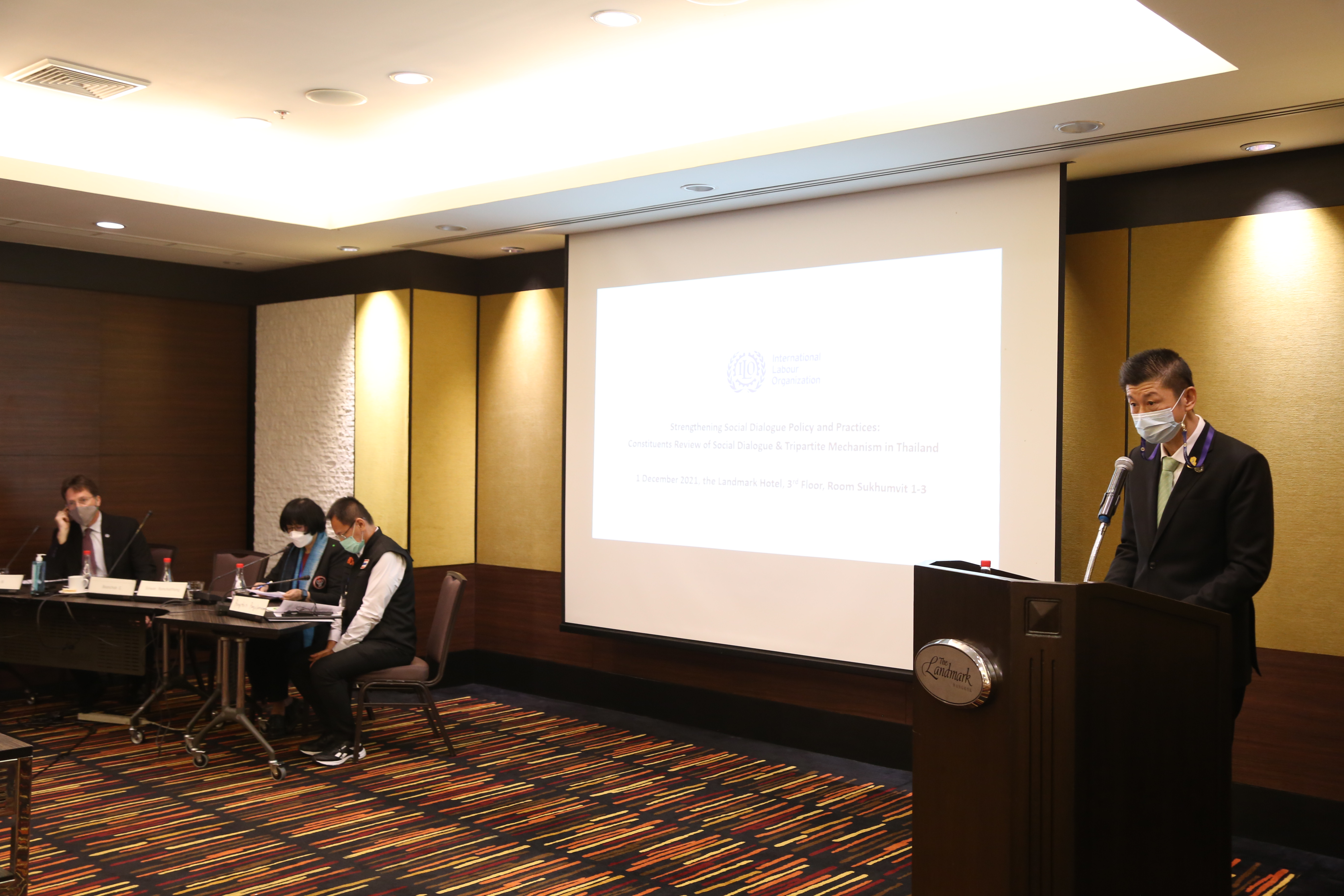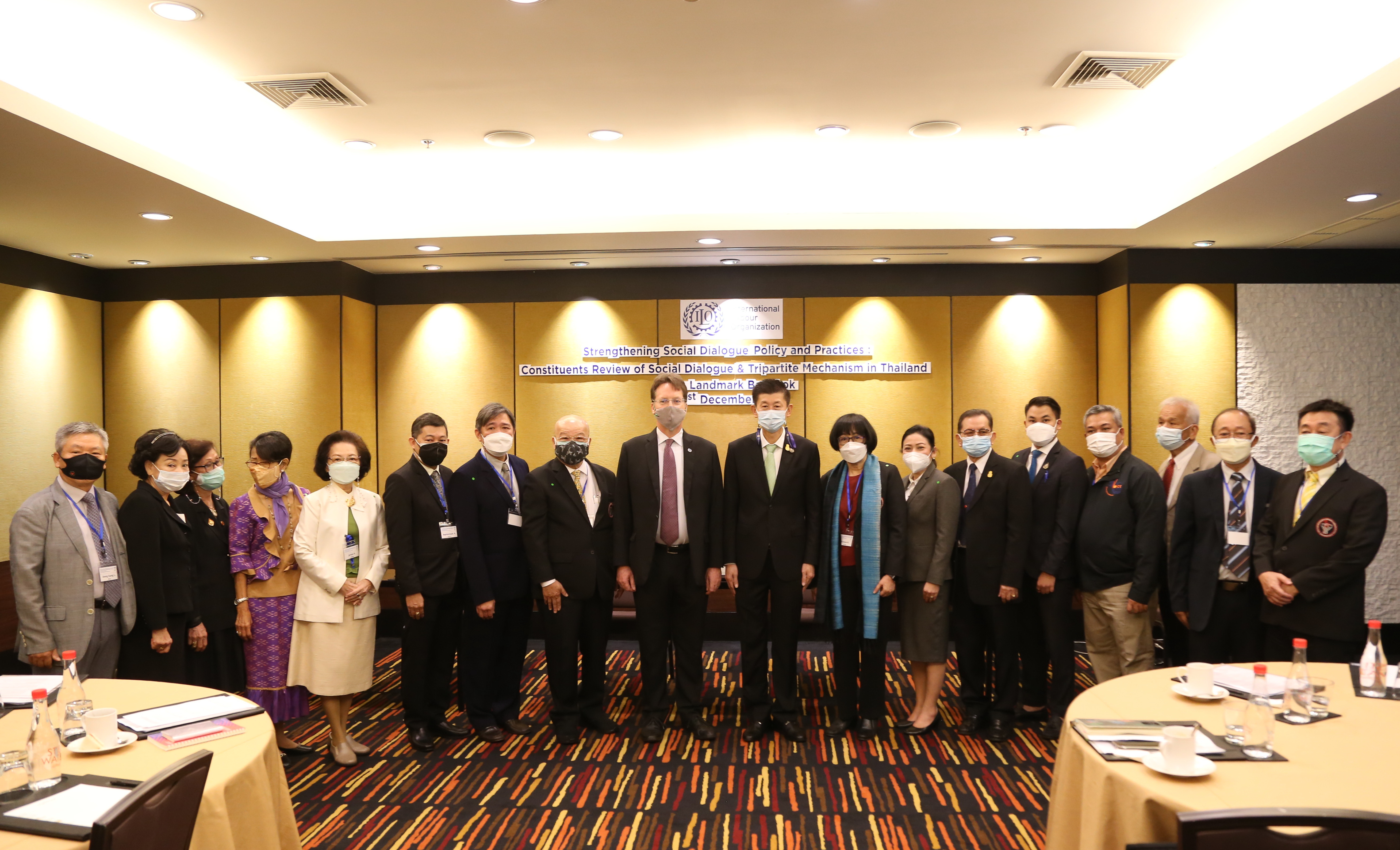วันที่ 1 ธันวาคม 2564 เวลา 09.00 น. นายบุญชอบ สุทธมนัสวงษ์ ปลัดกระทรวงแรงงาน เป็นประธานเปิดการประชุม Strengthening Social Dialogue Policy and Practices: Constituents Review of Social Dialogue & Tripartite Mechanism in Thailand ณ โรงแรมแลนด์มาร์ค กรุงเทพฯ โดยกล่าวว่า การเจรจาทางสังคมและกลไกไตรภาคี เป็นหลักการสำคัญขององค์การแรงงานระหว่างประเทศ หรือ ILO ซึ่งกระทรวงแรงงานได้ยึดถือปฏิบัติมาโดยตลอด ภายใต้สัญลักษณ์ของเทวดาสามองค์ ซึ่งแสดงถึงการทำงานรวมกันในลักษณะองค์คณะไตรภาคี และบทบาทของกระทรวงแรงงานในการเป็นสะพานเชื่อมระหว่างนายจ้าง และลูกจ้าง เพื่อคุ้มครองสิทธิแรงงาน และส่งเสริมงานที่มีคุณค่าสำหรับทุกคน