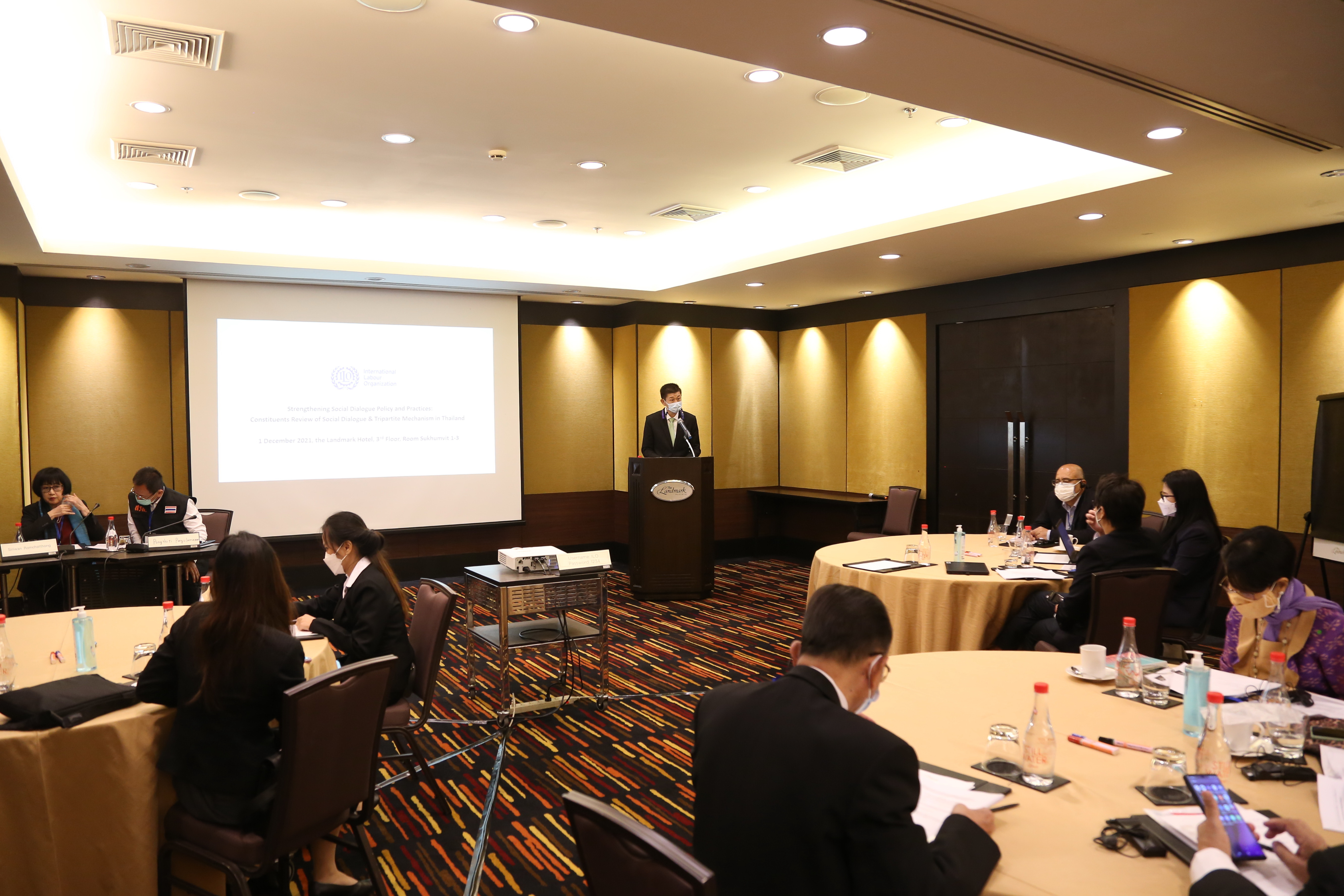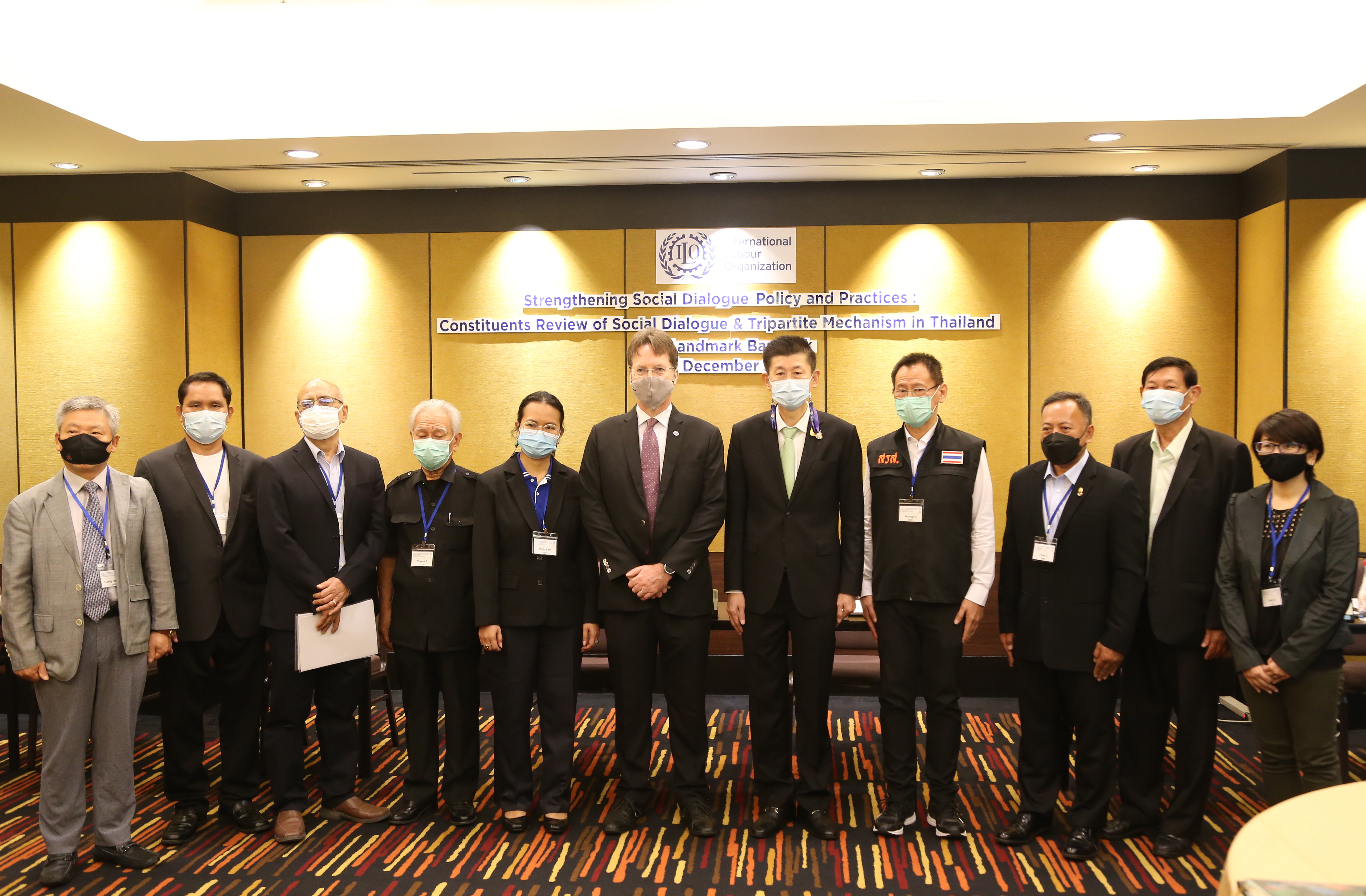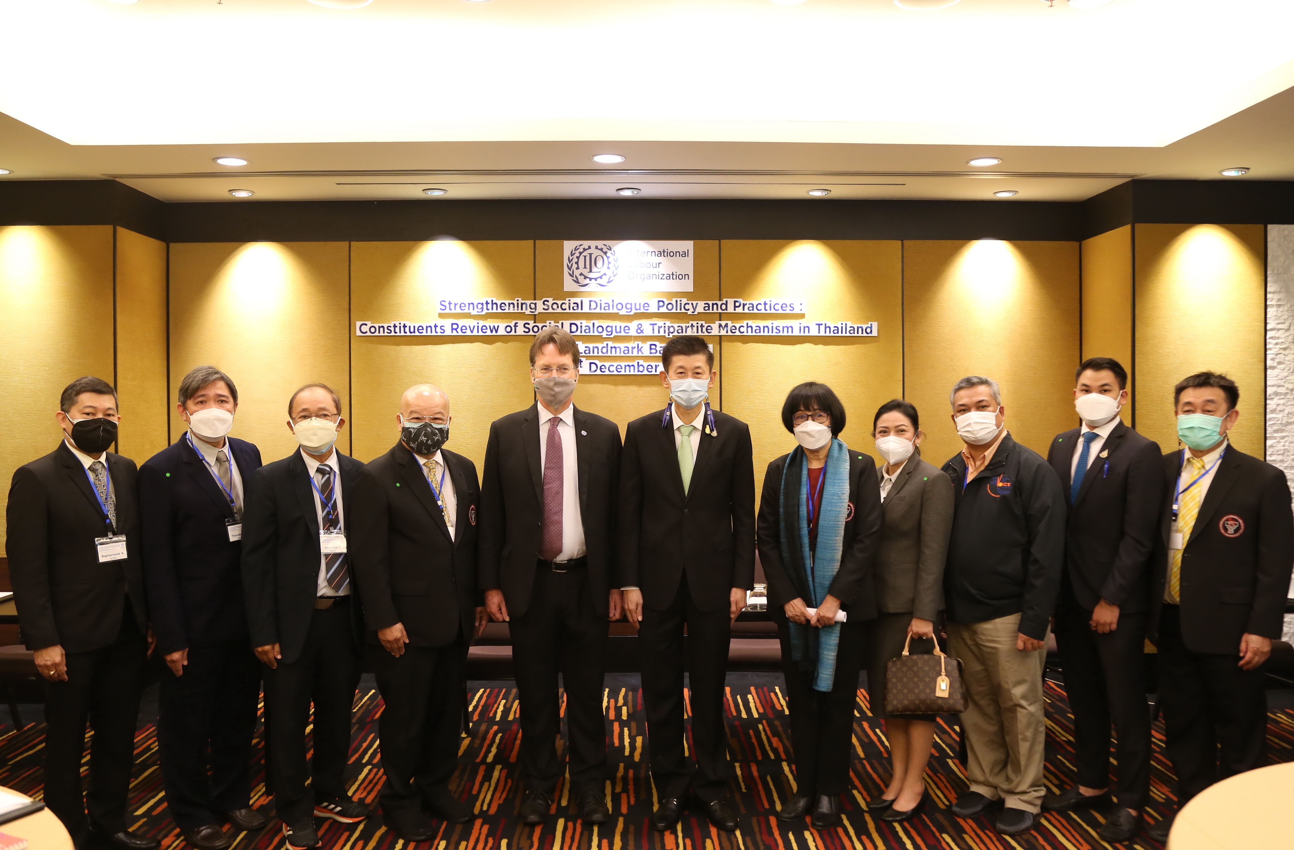วันที่ 1 ธันวาคม 2564 เวลา 09.00 น. นายบุญชอบ สุทธมนัสวงษ์ ปลัดกระทรวงแรงงาน เป็นประธานเปิดการประชุม Strengthening Social Dialogue Policy and Practices: Constituents Review of Social Dialogue & Tripartite Mechanism in Thailand ณ โรงแรมแลนด์มาร์ค กรุงเทพฯ โดยกล่าวว่า การเจรจาทางสังคมและกลไกไตรภาคี เป็นหลักการสำคัญขององค์การแรงงานระหว่างประเทศ หรือ ILO ซึ่งกระทรวงแรงงานได้ยึดถือปฏิบัติมาโดยตลอด ภายใต้สัญลักษณ์ของเทวดาสามองค์ ซึ่งแสดงถึงการทำงานรวมกันในลักษณะองค์คณะไตรภาคี และบทบาทของกระทรวงแรงงานในการเป็นสะพานเชื่อมระหว่างนายจ้าง และลูกจ้าง เพื่อคุ้มครองสิทธิแรงงาน และส่งเสริมงานที่มีคุณค่าสำหรับทุกคน