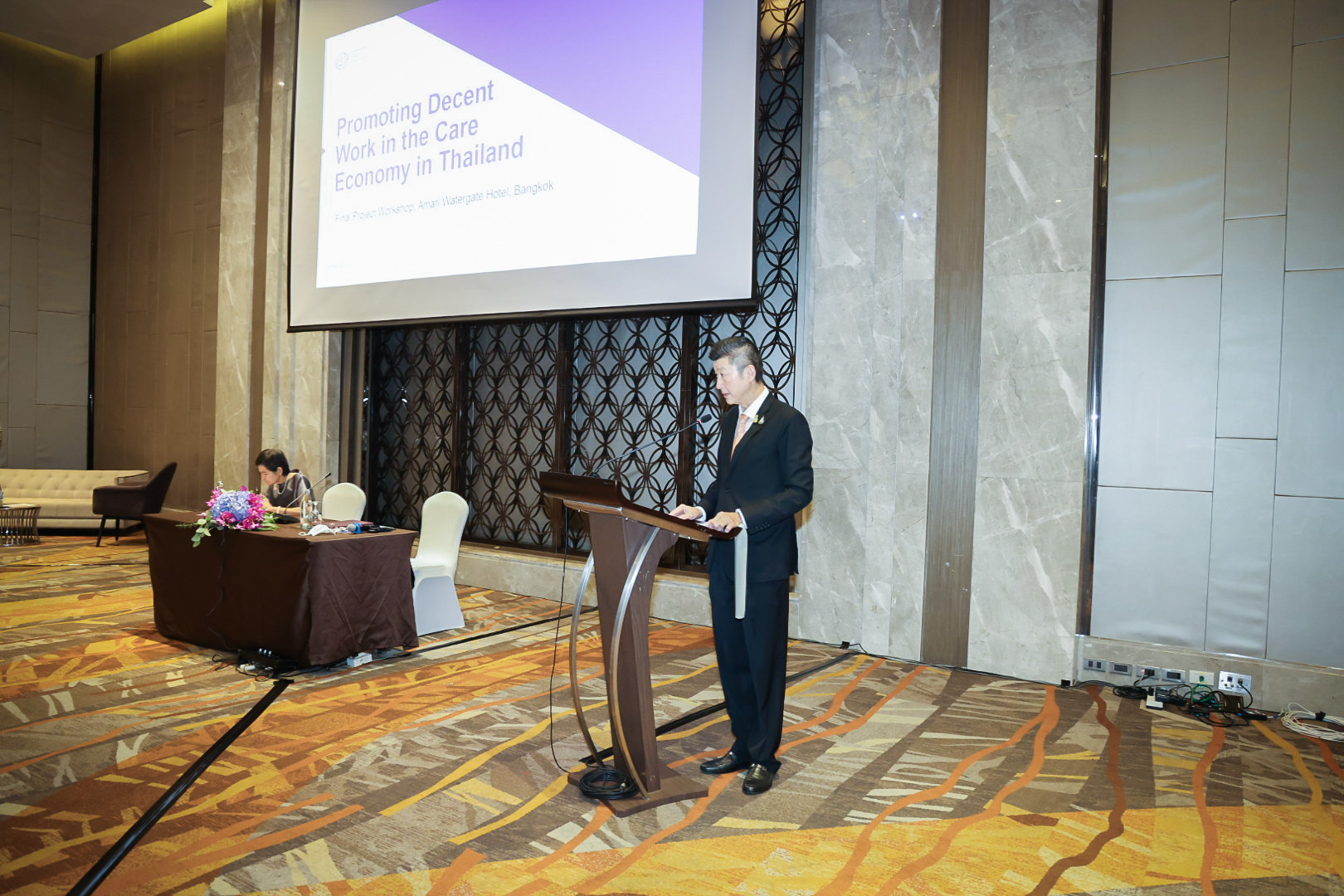 “The Ministry of Labour is pleased to be involved in the Care Economy Project and looks forward to working with all sectors to promote decent jobs for workers in economically conscious sectors in Thailand and narrowing the gap in childcare and long-term care services in the context of society, health, labour, and economy. The efforts will enable workers in the care economic sector to have access to the development of necessary professional skills, to receive fair wages, full protection, and other benefits,” concluded Mr. Boonchob.