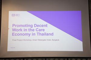โครงการ Care Economy Project เป็นโครงการความร่วมมือขององค์การแรงงานระหว่างประเทศที่ดำเนินการระหว่าง มกราคม 2565 – เมษายน 2566 โดยโครงการมีเป้าหมายในการร่วมมือและสนับสนุนผู้แทนไตรภาคี ในการลงทุนที่ตอบสนองต่อประเด็นด้านเพศสภาพในเศรษฐกิจการดูแล (Care Economy) เพื่อแก้ไขปัญหาทั้งด้านอุปสงค์และอุปทาน รวมถึง ระบุและแก้ไขช่องว่างทางนโยบาย การลงทุน ข้อกฎหมายเดียวกับบริการ การพัฒนาทักษะ และงานที่มีคุณค่า โดยการประชุมเชิงปฏิบัติการดังกล่าว มีผู้เข้าร่วมการประชุมจากหน่วยงานภาครัฐที่เกี่ยวข้อง องค์การนายจ้างและลูกจ้าง องค์การภาคประชาสังคม และหุ้นส่วนเพื่อการพัฒนาต่างๆ ร่วมกันแสดงความคิดเห็นเกี่ยวกับผลลัทธ์ของโครงการ รวมถึงข้อเสนอแนะในการพัฒนา และประเด็นสำคัญที่ควรดำเนินการต่อไปในอนาคต