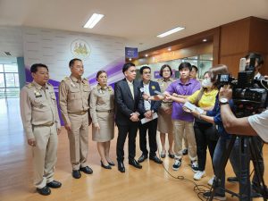 วันที่ 16 ตุลาคม 2566 เวลา 10.45 น. นายไพโรจน์ โชติกเสถียร ปลัดกระทรวงแรงงาน ให้สัมภาษณ์ ผู้สื่อข่าว ได้แก่ อสมท., หนังสือพิมพ์ไทยรัฐ และ สถานีวิทยุกระจายเสียงแห่งประเทศไทย ประเด็น “ความคืบหน้าการให้ความช่วยเหลือแรงงานไทยในอิสราเอล” ณ บริเวณหน้าห้องประชุมประสงค์ รณะนันท์ ชั้น 5 อาคารกระทรวงแรงงาน
