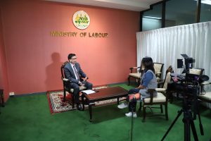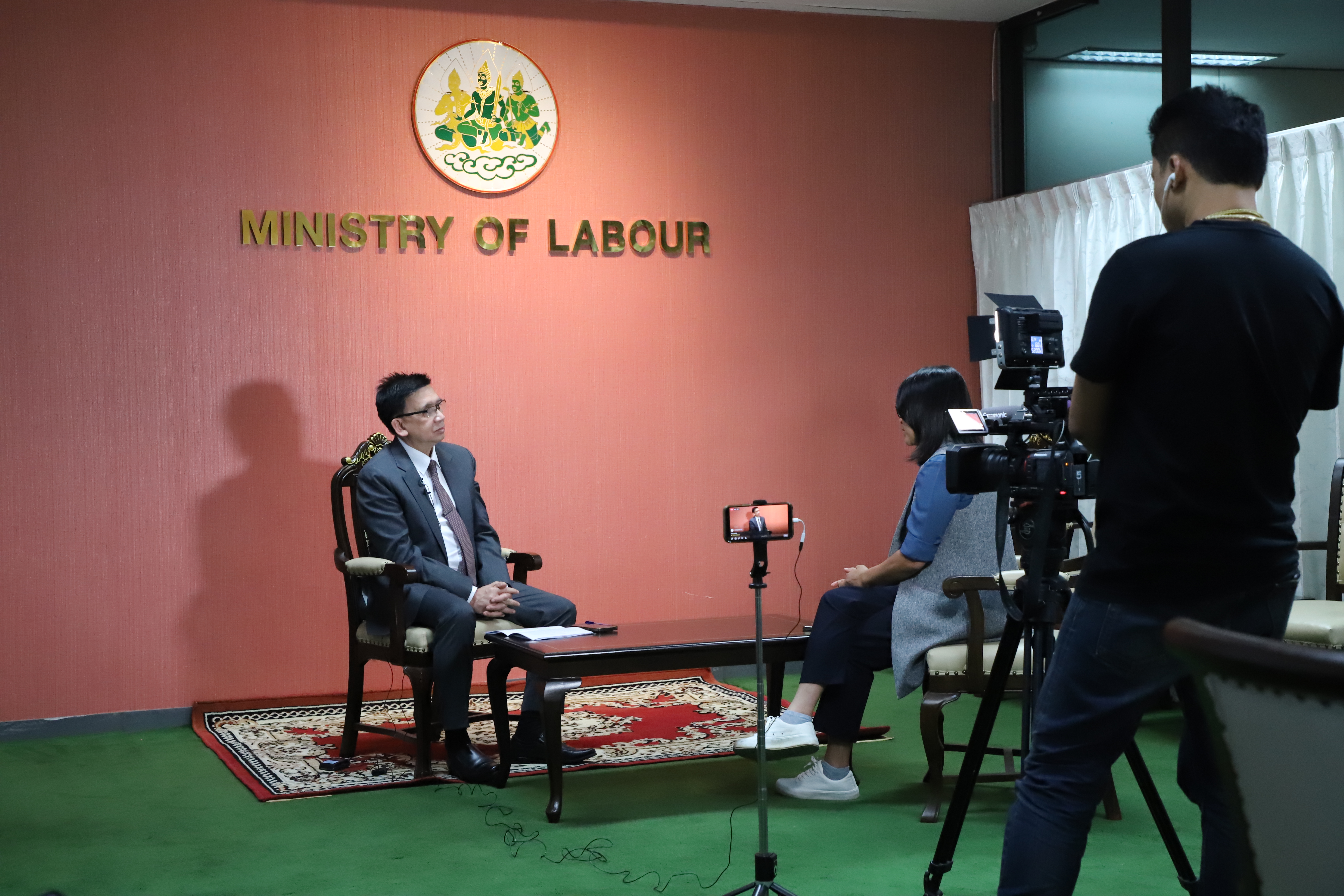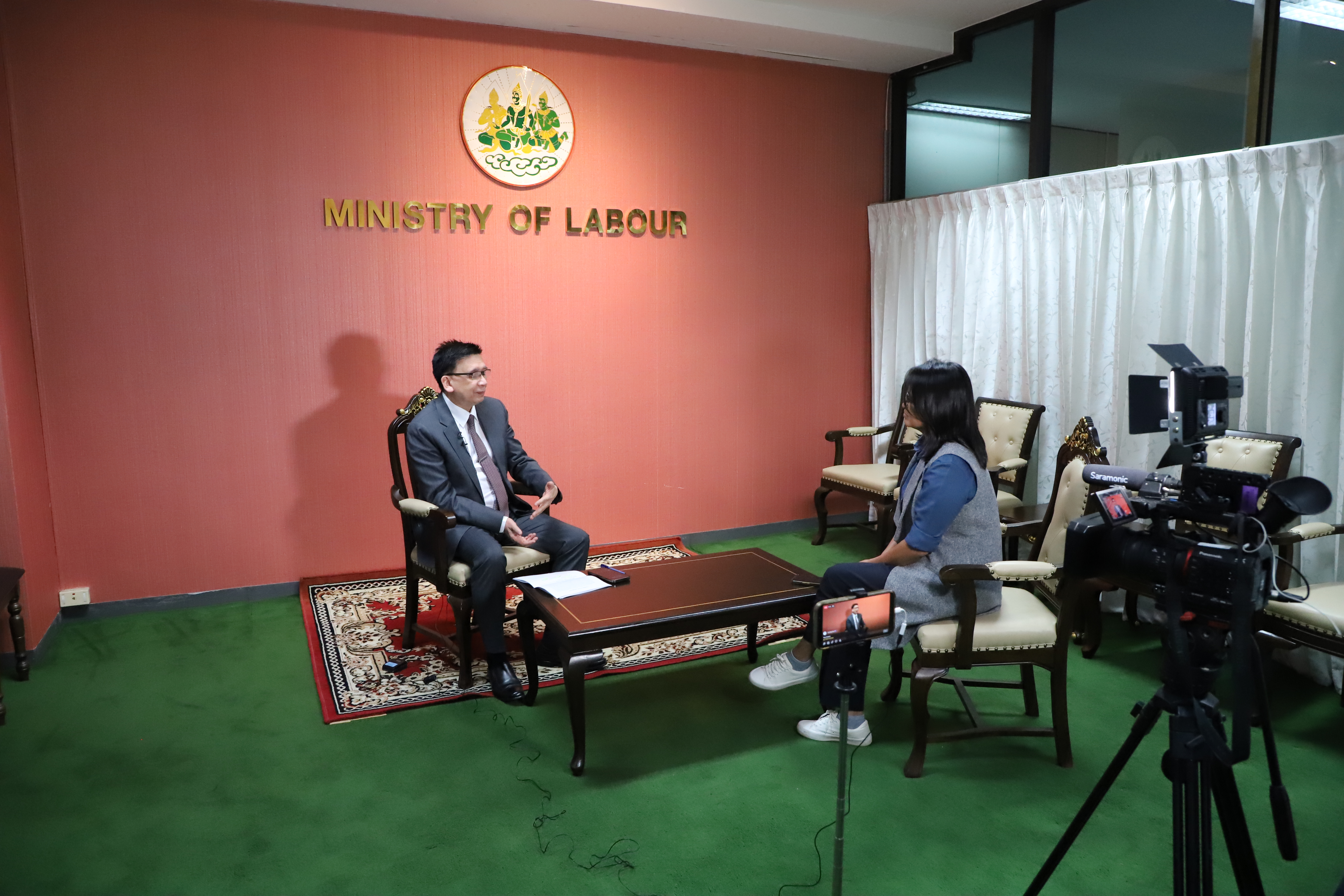 On December 19, 2023, at 15.30 hours, the Permanent Secretary of Labour, Mr. Phairoj Chotikasatian, gave an interview on the 3D News Program about the election of the Social Security Board and the progress of applications for the 50,000 Baht compensation for Thai workers affected by the unrest in Israel. The occasion took place at the reception room of the Permanent Secretary of Labour, 7th floor, Ministry of Labour.