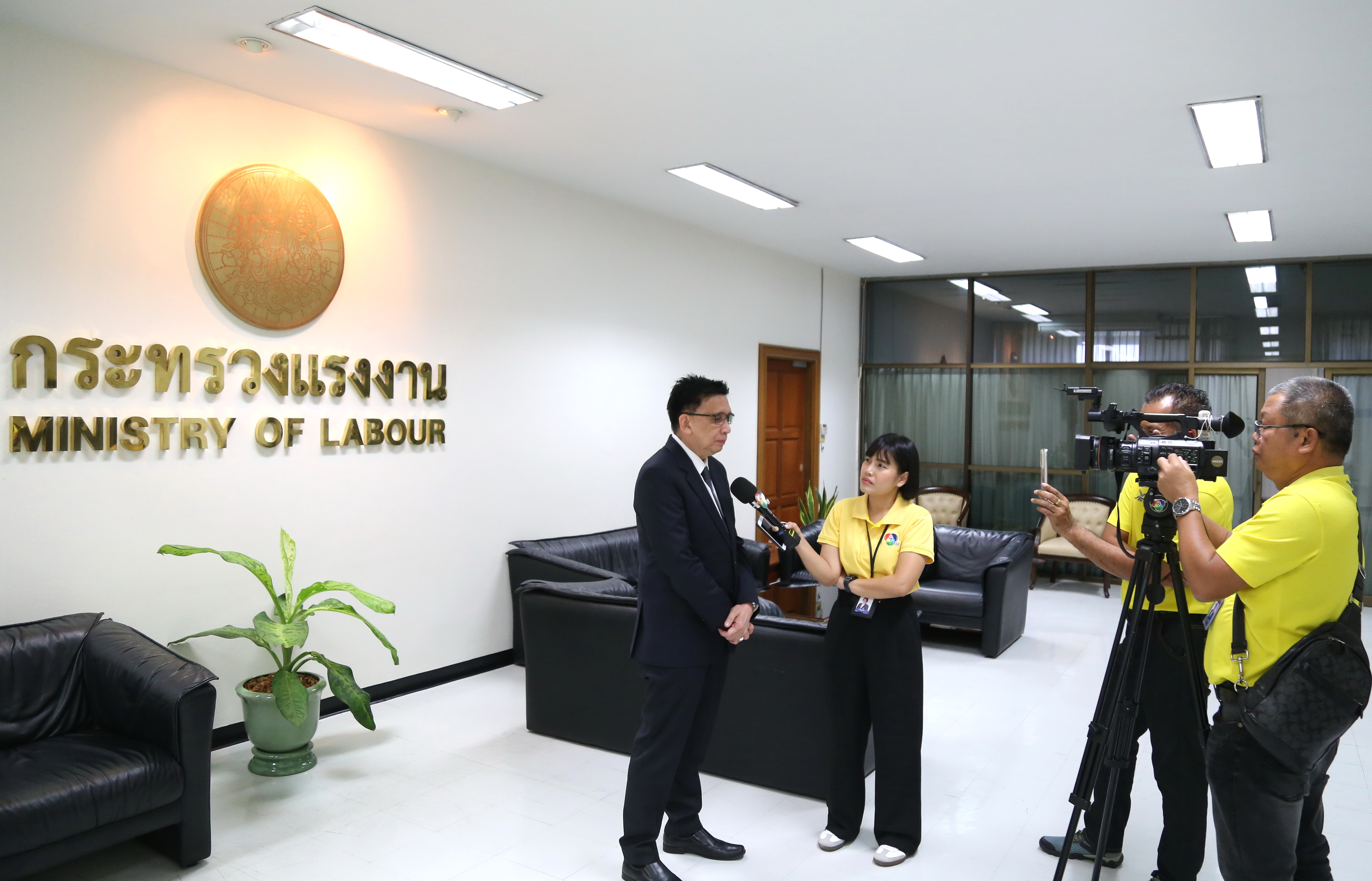 วันที่ 18 ธันวาคม 2566 เวลา 11.00 น. นายไพโรจน์ โชติกเสถียร ปลัดกระทรวงแรงงาน ให้สัมภาษณ์ ผู้สื่อข่าว ช่อง 7 HD ประเด็น ” ผลการประชุมหารือระหว่างกระทรวงแรงงานกับสถาบันคุณวุฒิวิชาชีพ(องค์การมหาชน) เรื่องการกำหนดอัตราค่าจ้างตามมาตรฐานฝีมือ และความคืบหน้าการปรับอัตราค่าจ้างขั้นต่ำ” ณ บริเวณห้องทำงานปลัดกระทรวงแรงงาน ชั้น 7 อาคารกระทรวงแรงงาน