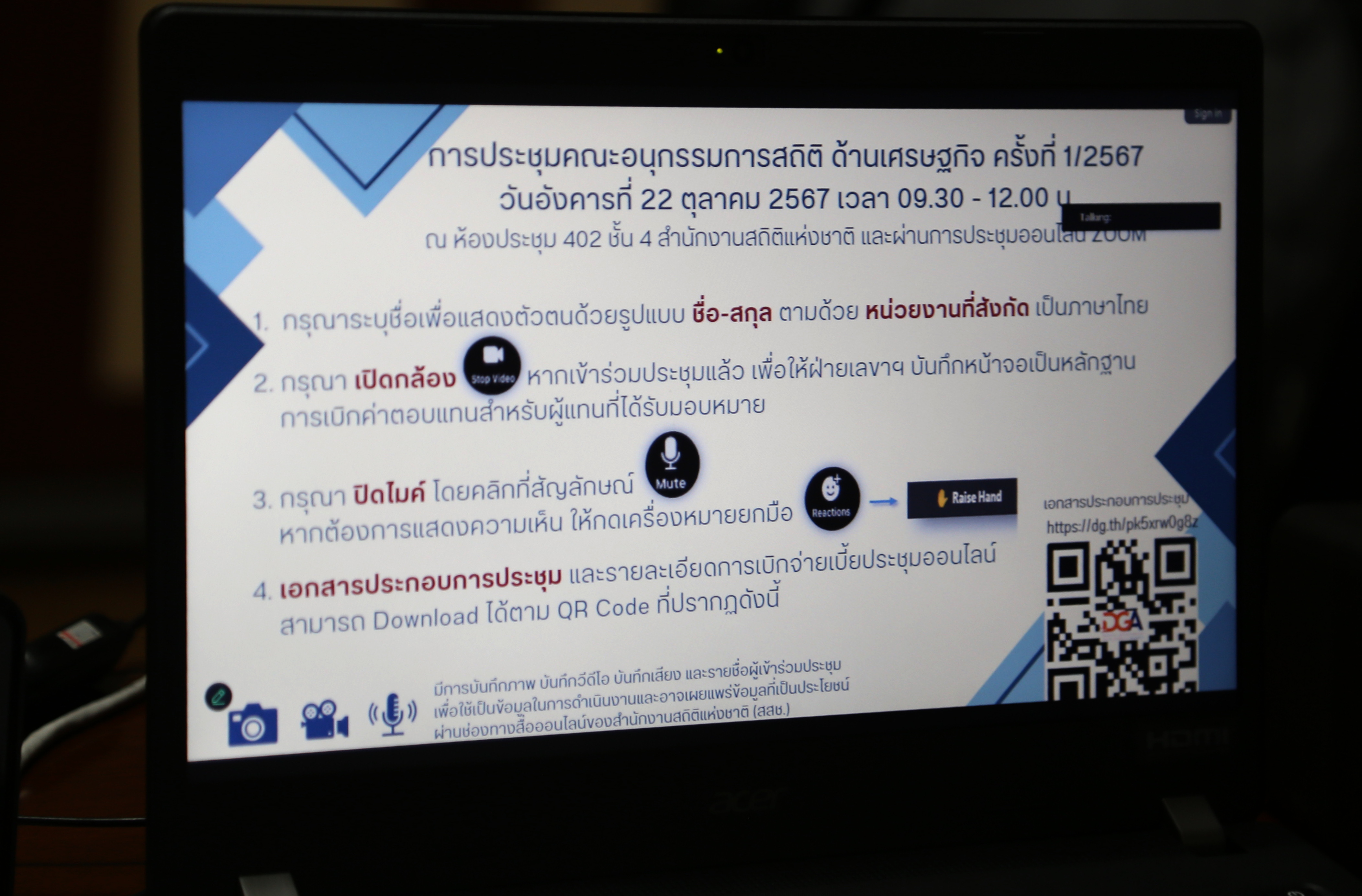 สำหรับการประชุมในครั้งนี้ ที่ประชุมได้พิจารณา แนวทางการขับเคลื่อนการพัฒนาสถิติทางการ ตัวชี้วัด และ (ร่าง) สถิติทางการ ประเด็นเศรษฐกิจดิจิทัล และประเด็น ODIN (ด้านเศรษฐกิจ)
