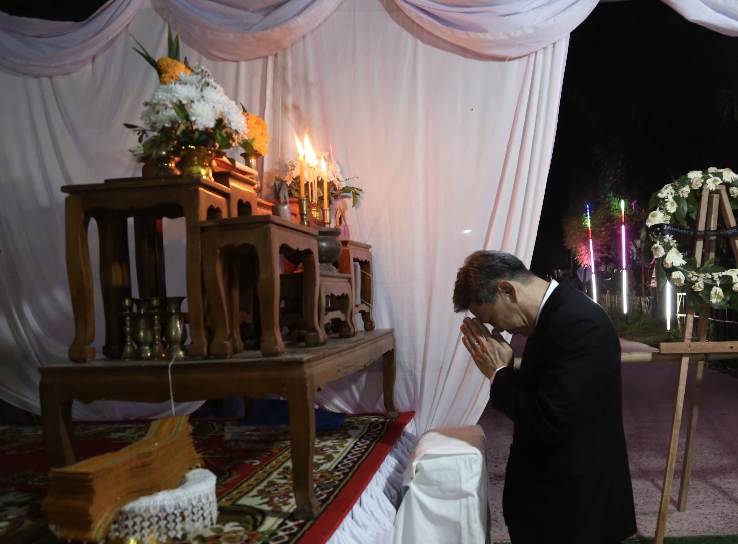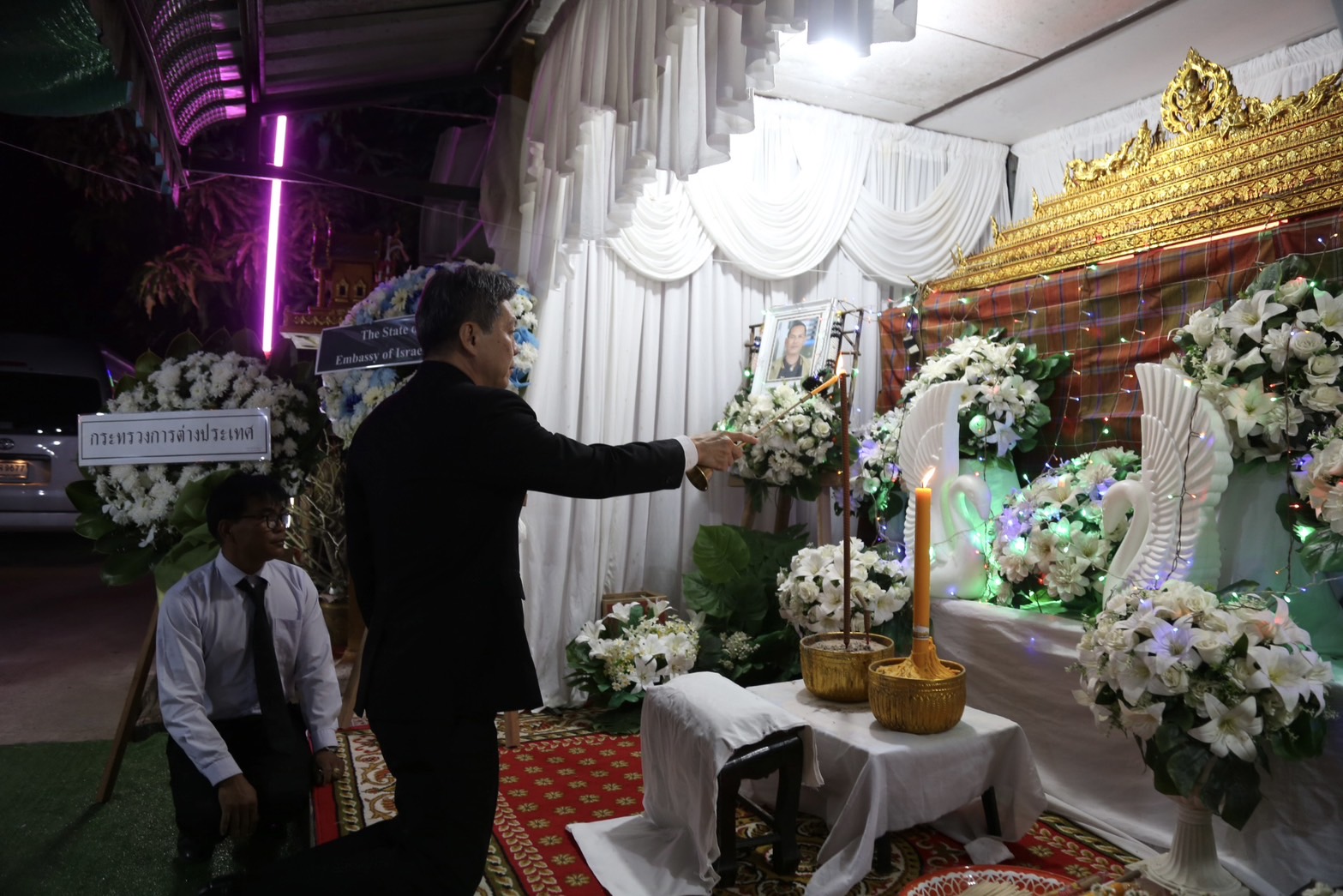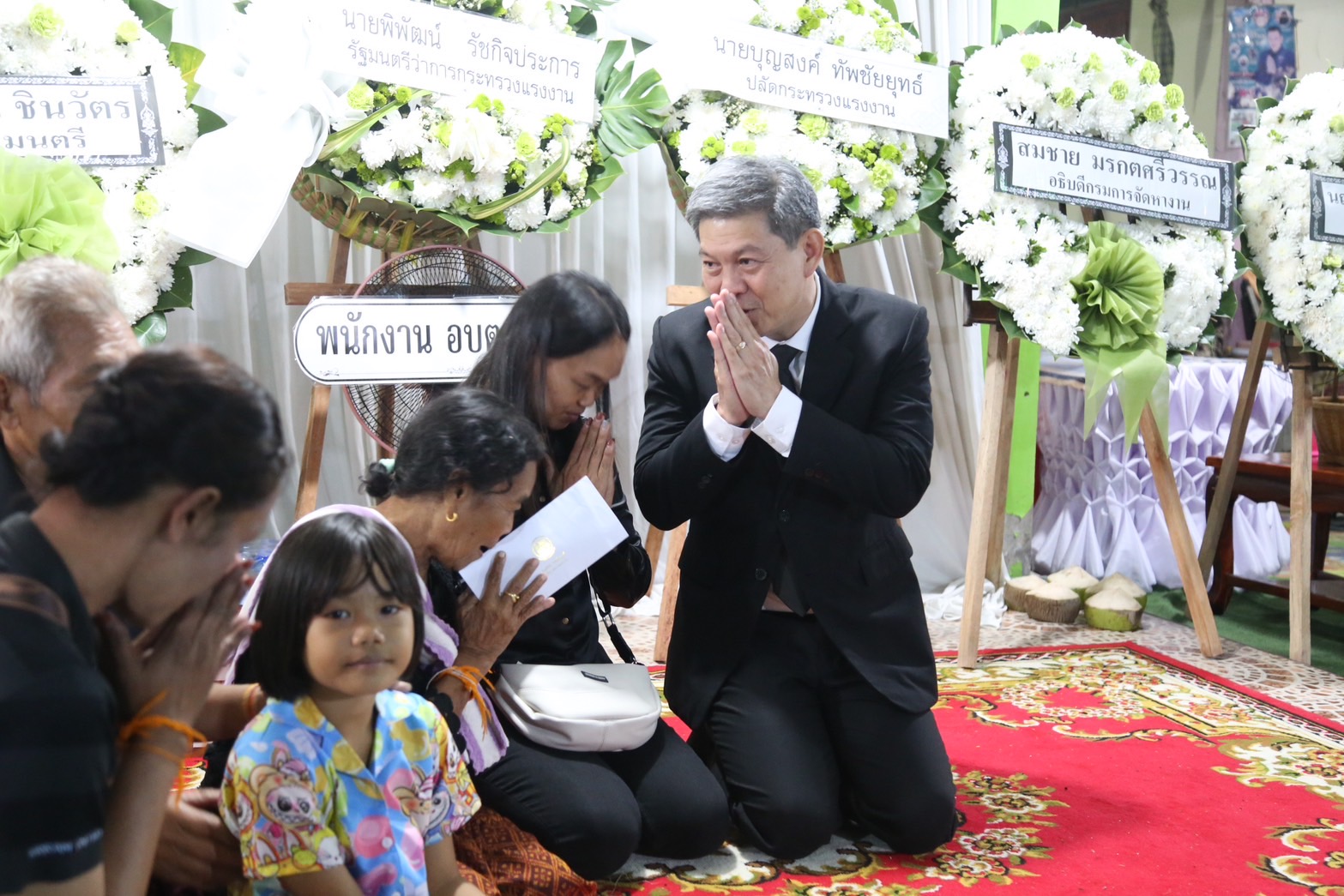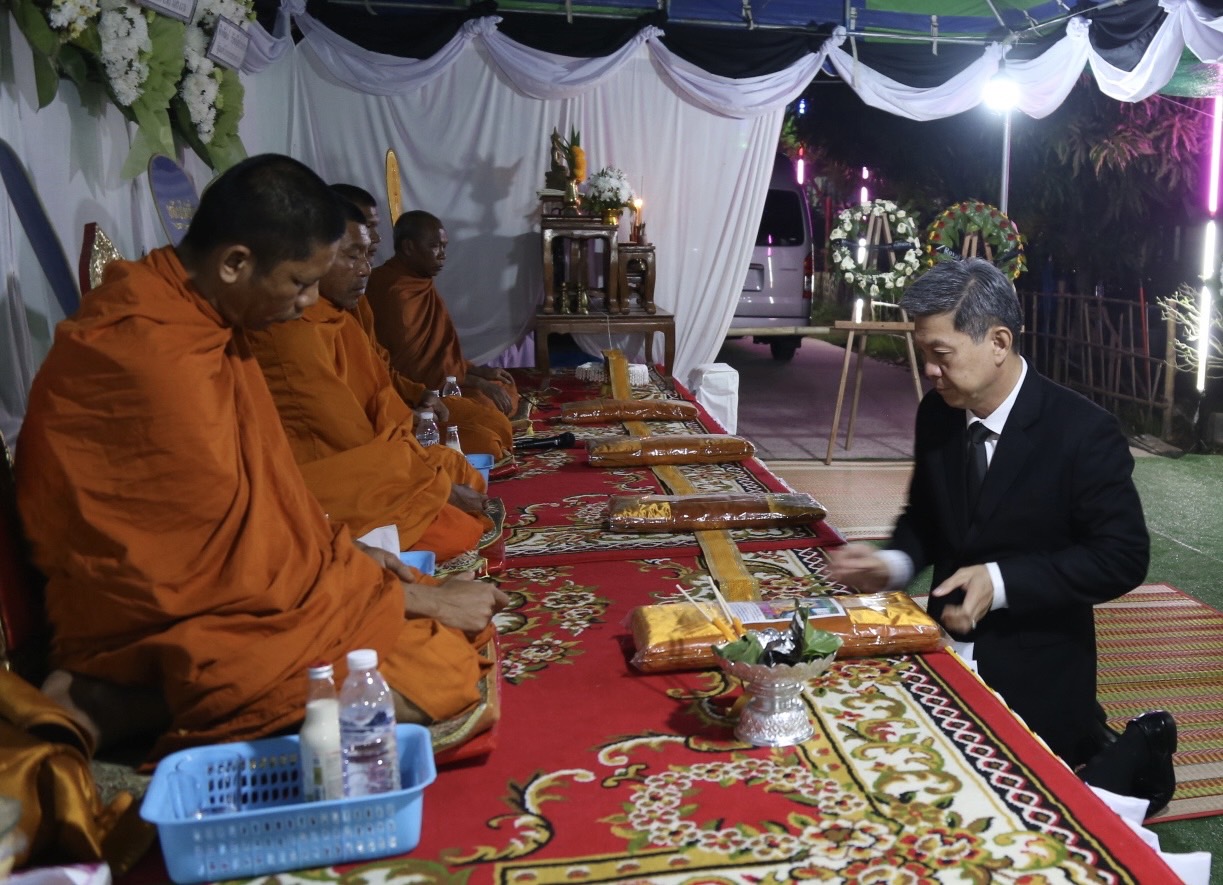 วันที่ 9 พฤศจิกายน 2567 เวลา 19.00 น. นายบุญสงค์ ทัพชัยยุทธ์ ปลัดกระทรวงแรงงาน มอบหมายให้ นายศักดินาถ สนธิศักดิ์โยธิน ผู้ช่วยปลัดกระทรวงแรงงาน เป็นผู้แทนกระทรวงแรงงานร่วมพิธีสวดพระอภิธรรมศพ นายประหยัด พิลาศรัมย์ แรงงานไทยที่เสียชีวิตจากเหตุจรวดโจมตีจากเลบานอนไปยังเมืองเมตูลาทางตอนเหนือของรัฐอิสราเอล เมื่อวันที่ 31 ตุลาคม 2567 ที่ผ่านมา โดยมี หัวหน้าส่วนราชการ เจ้าหน้าที่สังกัดกระทรวงแรงงานจังหวัดบุรีรัมย์ และญาติพี่น้อง ร่วมพิธี ในการนี้ ผู้ช่วยปลัดกระทรวงแรงงาน ได้วางพวงหรีดของรัฐมนตรีว่าการกระทรวงแรงงาน และปลัดกระทรวงแรงงาน เพื่อแสดงความอาลัย พร้อมมอบเงินช่วยเหลือเพื่อปลอบขวัญกำลังใจ ตลอดจนฝากความห่วงใยจากรัฐมนตรีว่าการกระทรวงแรงงาน และปลัดกระทรวงแรงงานมายังครอบครัวแรงงานไทยที่เสียชีวิตด้วย ณ บ้านพัก บ้านหนองพลวง หมู่ที่ 3 ตำบลลำดวน อำเภอกระสัง จังหวัดบุรีรัมย์