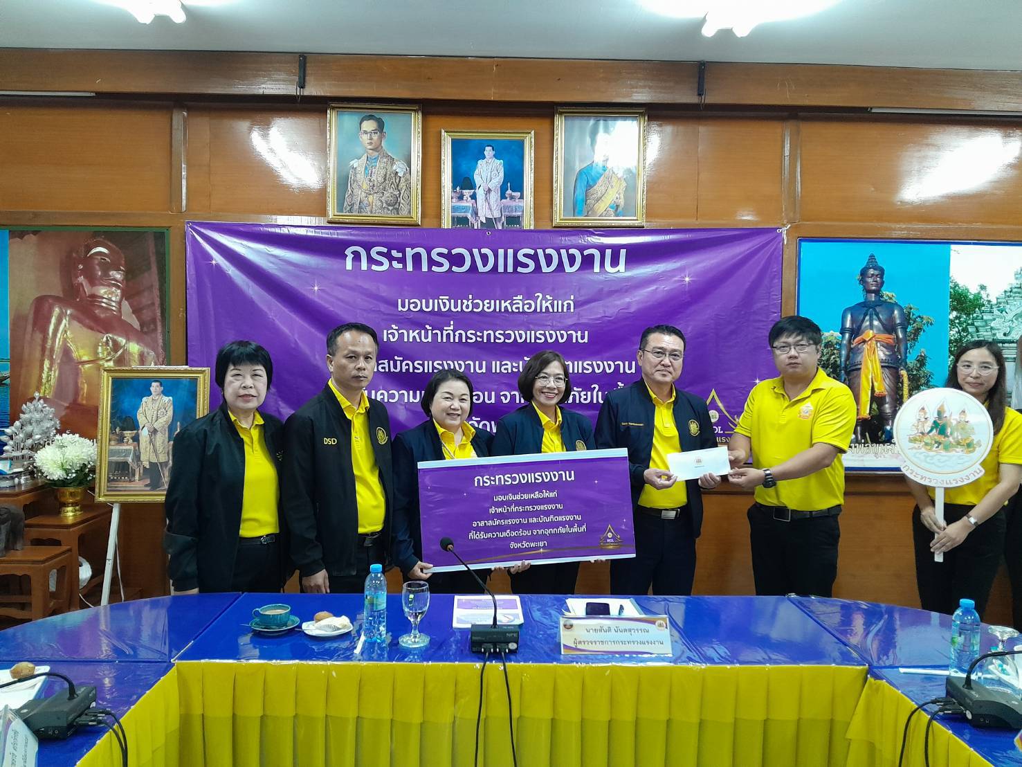 วันที่ 18 ตุลาคม 2567 นายพิพัฒน์ รัชกิจประการ รัฐมนตรีว่าการกระทรวงแรงงาน มีความห่วงใยต่อความเป็นอยู่ของครอบครัวแรงงานที่ได้รับผลกระทบจากอุทกภัย โดยนายบุญสงค์ ทัพชัยยุทธ์ ปลัดกระทรวงแรงงาน ได้มอบหมายให้ นายสันติ นันตสุวรรณ ผู้ตรวจราชการกระทรวงแรงงาน ลงพื้นที่ตรวจเยี่ยมให้กำลังใจ พร้อมมอบเงินและชุดยังชีพ เครื่องอุปโภคบริโภคช่วยเหลือบุคลากรกระทรวงแรงงาน บัณฑิตแรงงาน และอาสาสมัครแรงงาน ที่ได้รับผลกระทบจากสถานการณ์อุทกภัยในพื้นที่ จังหวัดพะเยา รวมจำนวน 28 ราย เพื่อสร้างขวัญกำลังใจและบรรเทาความเดือดร้อนให้แก่ผู้ประสบอุทกภัย สำหรับอุปกรณ์ที่ได้รับความเสียหายจากสถานการณ์อุทกภัย สำนักงานพัฒนาฝีมือแรงงานพะเยาจะตรวจเช็คและซ่อมแซมเครื่องอบลมร้อนขนาดใหญ่ให้แก่กลุ่มวิสาหกิจชุมชน ชาบัวกว๊านพะเยา ซึ่งมีสมาชิก 7 คน “ด้วยรักและห่วงใยจากใจครอบครัวแรงงาน”