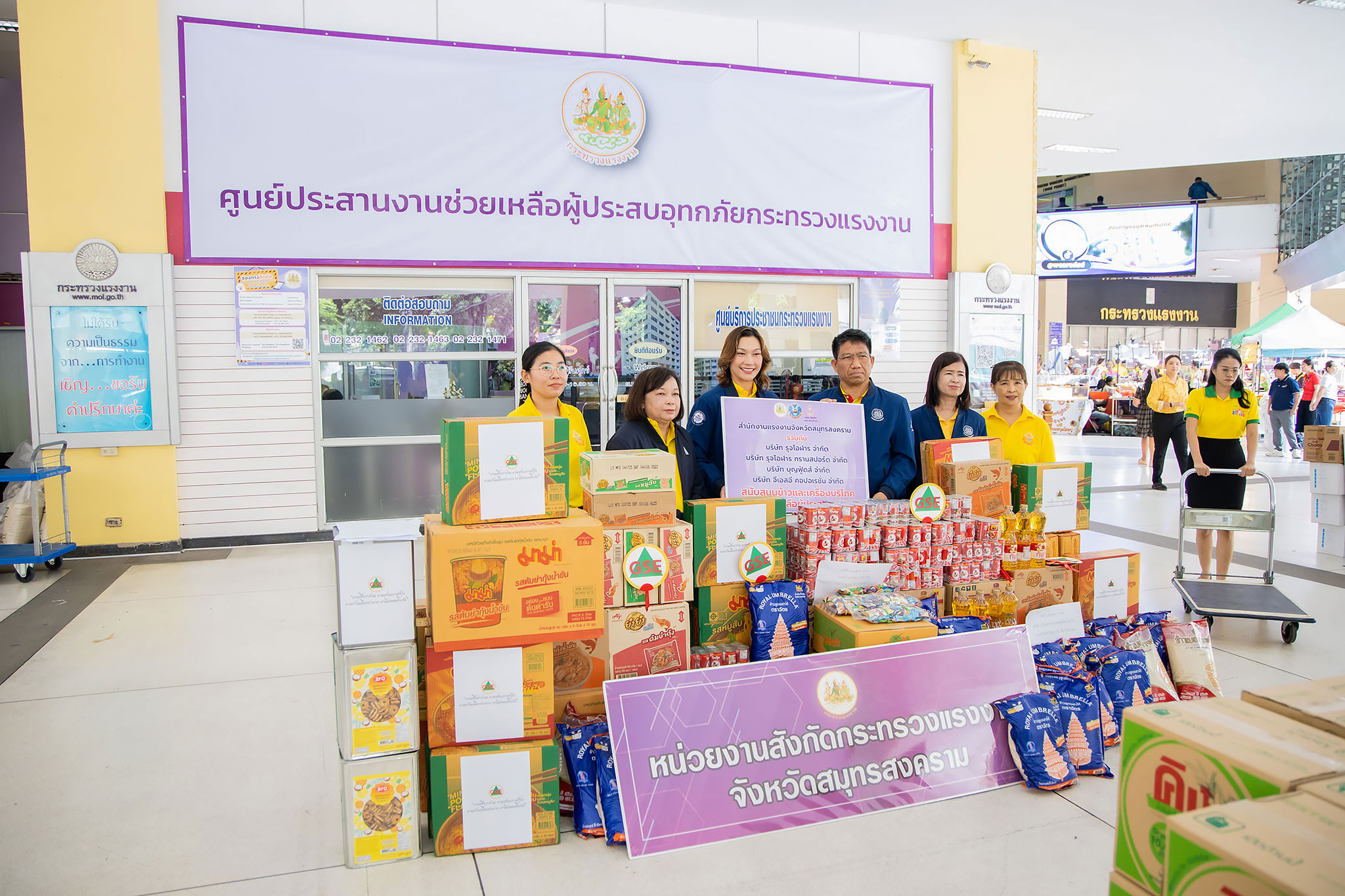 วันที่ 30 กรกฎาคม 2568 เวลา 10.00 น. นายบุญสงค์ ทัพชัยยุทธ์ ปลัดกระทรวงแรงงาน มอบหมายให้ ว่าที่ร้อยตรี สมศักดิ์ พรหมดำ ผู้ตรวจราชการกระทรวงแรงงาน เป็นผู้แทนรับมอบเครื่องอุปโภคบริโภคจาก นางรภัสสา พานิกุล แรงงานจังหวัดสมุทรสงคราม พร้อมด้วย นางอรุณ ธาราวุฒิ ประกันสังคมจังหวัดสมุทรสงคราม อาทิ ข้าวสาร น้ำดื่ม น้ำมันพืช บะหมี่กึ่งสำเร็จรูป ปลากระป๋อง เป็นต้น ทั้งนี้ หน่วยงานสังกัดกระทรวงแรงงานจังหวัดสมุทรสงคราม ได้ร่วมกับเครือข่ายด้านแรงงาน ประกอบด้วย อาสาสมัครแรงงานจังหวัดสมุทรสงคราม ,บริษัท รุจโอฬาร จำกัด ,บริษัท รุจโอฬาร ทรานสปอร์ต จำกัด ,บริษัท บุญฟู้ดส์ จำกัด ,บริษัท จีเอสอี คอปอเรชั่น จำกัด และบริษัท ไทยนันทพันธ์ จำกัด เพื่อให้กระทรวงแรงงาน นำไปช่วยเหลือผู้ประสบอุทกภัยในพื้นที่จังหวัดภาคเหนือภาคตะวันออกเฉียงเหนือ และผู้ประสบภัยจากการสู้รบบริเวณชายแดนไทย – กัมพูชา ณ บริเวณโถงชั้นล่าง อาคารกระทรวงแรงงาน