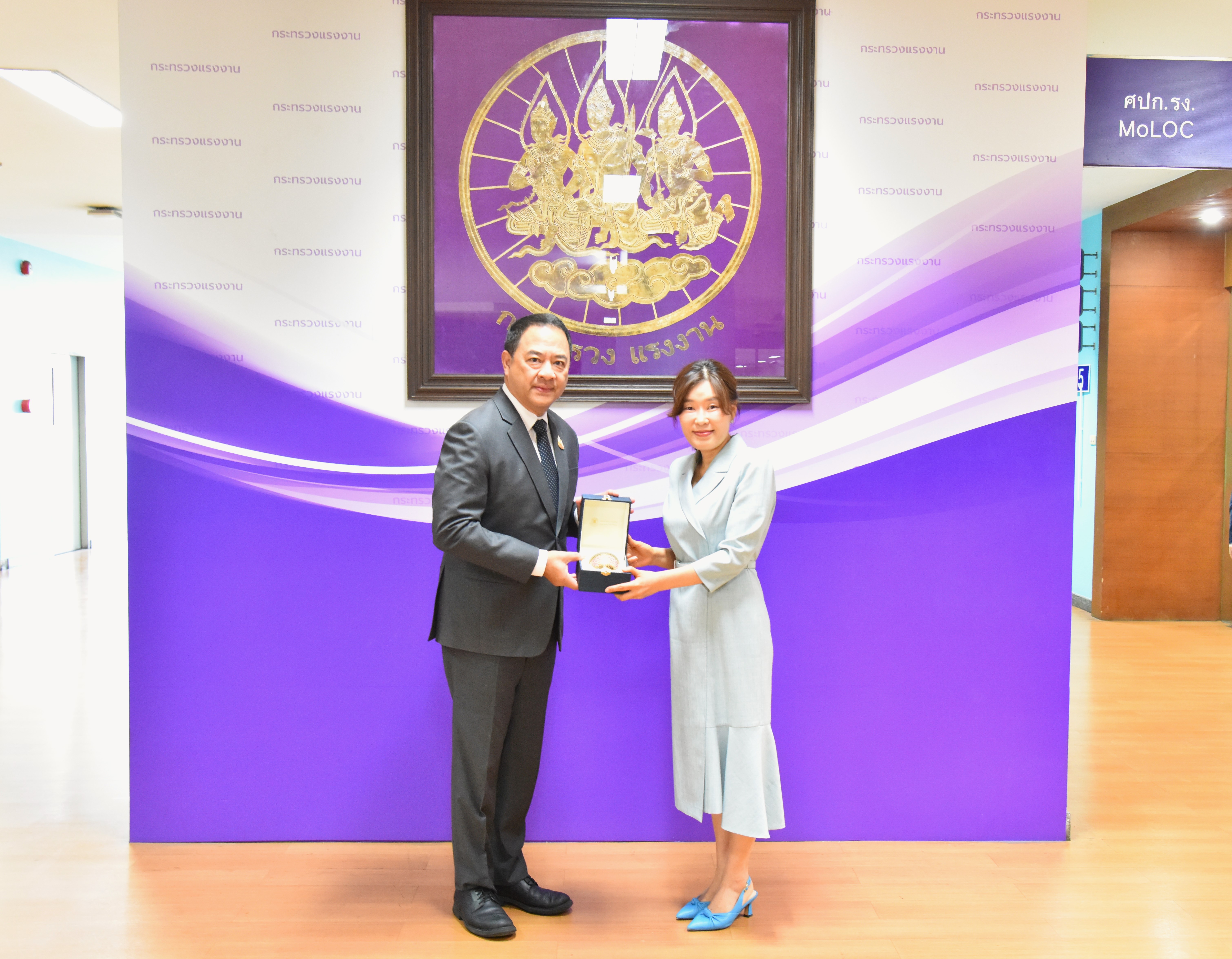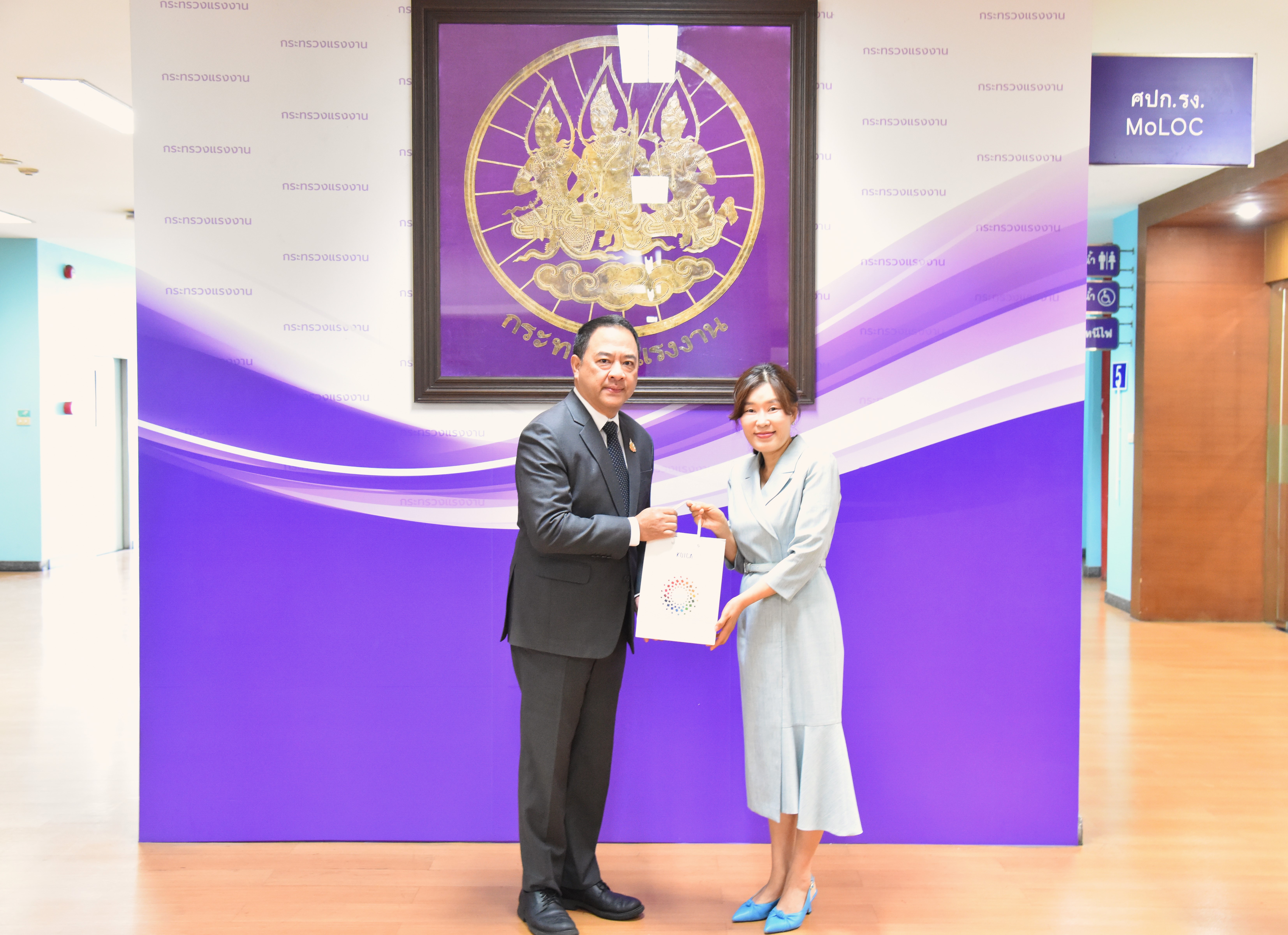 วันที่ 22 พฤศจิกายน 2567 เวลา 09.30 น. นายบุญสงค์ ทัพชัยยุทธ์ ปลัดกระทรวงแรงงาน มอบหมายให้ นายสมาสภ์ ปัทมะสุคนธ์ รองปลัดกระทรวงแรงงาน ให้การต้อนรับ Ms. Jun Youngsuk , Country Director จากองค์การความร่วมมือระหว่างประเทศของสาธารณรัฐเกาหลี (Korea International Cooperation Agency) ประจำประเทศไทย และคณะ โดยมี นางอรุณี ไฮม์ม (Mrs. Arunee Hiam) รองอธิบดี กรมความร่วมมือระหว่างประเทศ ในฐานะผู้แทนฝ่ายไทย ร่วมให้การต้อนรับและหารือด้วย ณ ห้องประชุมแสงสิงแก้ว ชั้น 5 อาคารกระทรวงแรงงาน