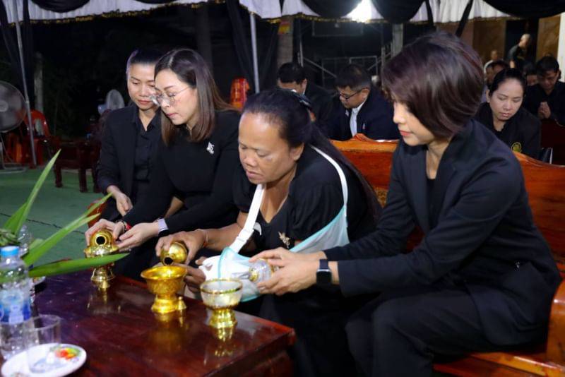 วันที่ 10 พฤศจิกายน 2567 เวลา 19.00 น. นายบุญสงค์ ทัพชัยยุทธ์ ปลัดกระทรวงแรงงาน มอบหมายให้ นางสาวบุปผา เรืองสุด อธิบดีกรมพัฒนาฝีมือแรงงาน รักษาราชการแทน รองปลัดกระทรวงแรงงาน เป็นผู้แทนกระทรวงแรงงานร่วมพิธีสวดพระอภิธรรมศพ นายกวีศักดิ์ ปานะนัง แรงงานไทยชาวจังหวัดนครราชสีมา ที่เสียชีวิตจากเหตุจรวดโจมตีจากเลบานอนไปยังเมืองเมตูลาทางตอนเหนือของรัฐอิสราเอล เมื่อวันที่ 31 ตุลาคม 2567 ที่ผ่านมา โดยมี หัวหน้าส่วนราชการ เจ้าหน้าที่สังกัดกระทรวงแรงงานจังหวัดนครราชสีมา และญาติพี่น้อง ร่วมพิธี ในการนี้ รักษาราชการแทน รองปลัดกระทรวงแรงงาน ได้เป็นผู้แทนกระทรวงแรงงานมอบสิทธิประโยชน์จากสำนักงานประกันสังคมจังหวัดนครราชสีมา สาขาโนนสูง เป็นเงินบำเหน็จชราภาพ กรณีเสียชีวิต จำนวน 35,730.18 บาท ให้แก่ ทายาทของผู้เสียชีวิต ตลอดจนมอบเงินช่วยเหลือปลอบขวัญกำลังใจ และฝากความห่วงใยจากรัฐมนตรีว่าการกระทรวงแรงงาน และปลัดกระทรวงแรงงานมายังครอบครัวแรงงานไทยที่เสียชีวิต ณ บ้านพัก บ้านช่องแมว อำเภอละทะเมนชัย จังหวัดนครราชสีมา