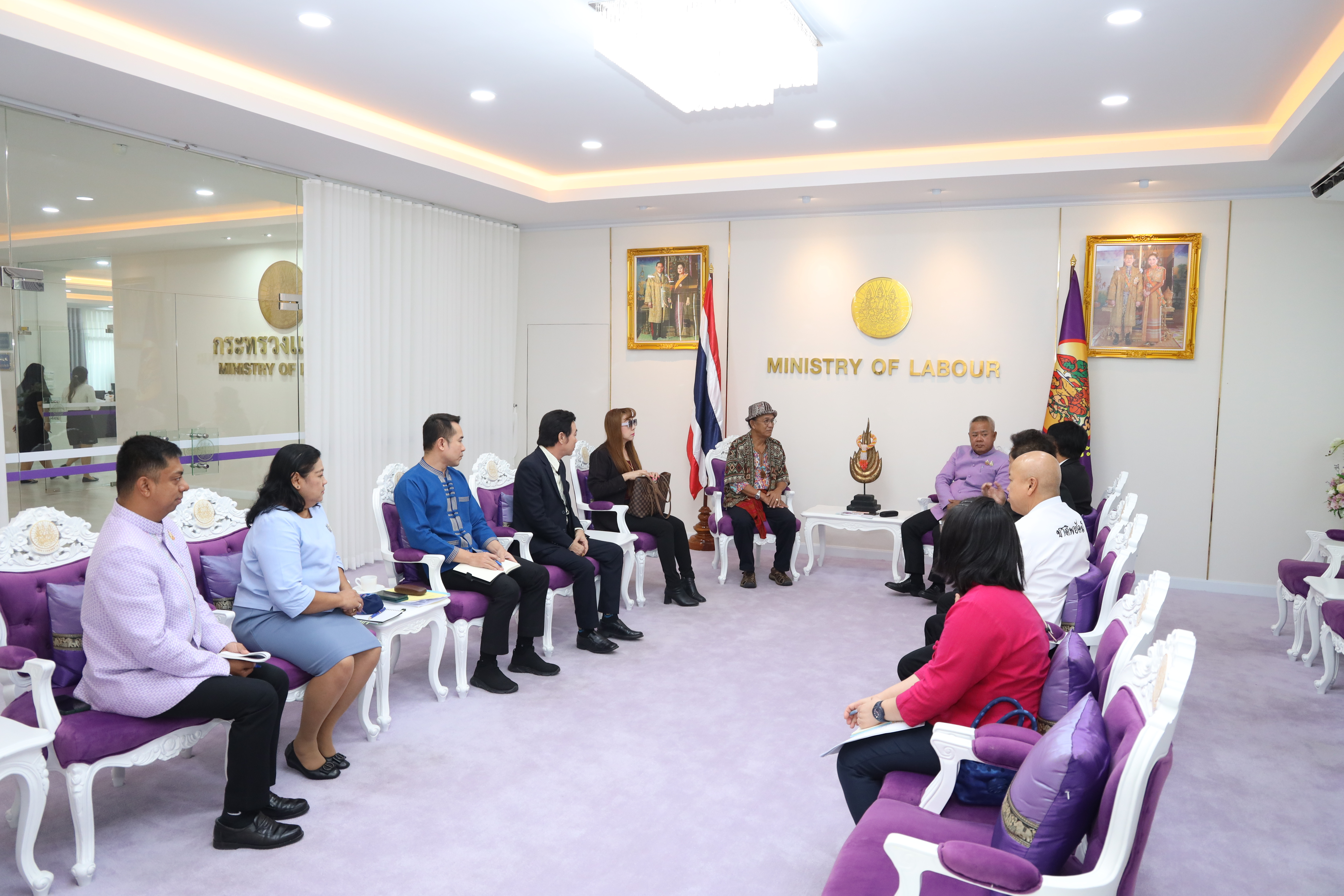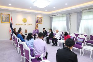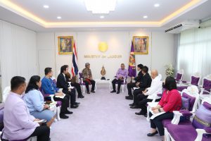 วันที่ 22 กรกฎาคม 2568 เวลา 11.00 น. นายบุญสงค์ ทัพชัยยุทธ์ ปลัดกระทรวงแรงงาน ให้การต้อนรับ นายศักดินา รักอุดมการณ์ หรือ ป๋าแหงม ผู้สื่อข่าว ในโอกาสนำคณะกรรมการสมาคมนักร้องลูกทุ่งแห่งประเทศไทย และสมาคมช่างภาพสื่อมวลชนดิจิตอล ซึ่งเป็นผู้ประกอบอาชีพอิสระ นำโดย นายทศพล หิมพานต์ นายกสมาคมนักร้องลูกทุ่งแห่งประเทศไทย และคณะ เข้าพบเพื่อหารือแนวทางขับเคลื่อนความร่วมมือในการเผยแพร่ภารกิจของกระทรวงแรงงานโดยเฉพาะผู้ประกอบอาชีพอิสระ โดยมี ผู้อำนวยการสำนักตรวจและประเมินผล ผู้อำนวยการกลุ่มงานสนับสนุนเครือข่ายและประสานภูมิภาค สำนักตรวจและประเมินผล ผู้อำนวยการกองเผยแพร่และประชาสัมพันธ์ ผู้อำนวยการสำนักงานนโยบายแรงงานนอกระบบ และผู้แทนจากสำนักงานประกันสังคม ร่วมประชุมด้วย ณ ห้องปฏิบัติราชการปลัดกระทรวงแรงงาน ชั้น 7 อาคารกระทรวงแรงงาน