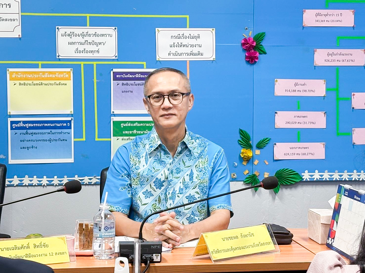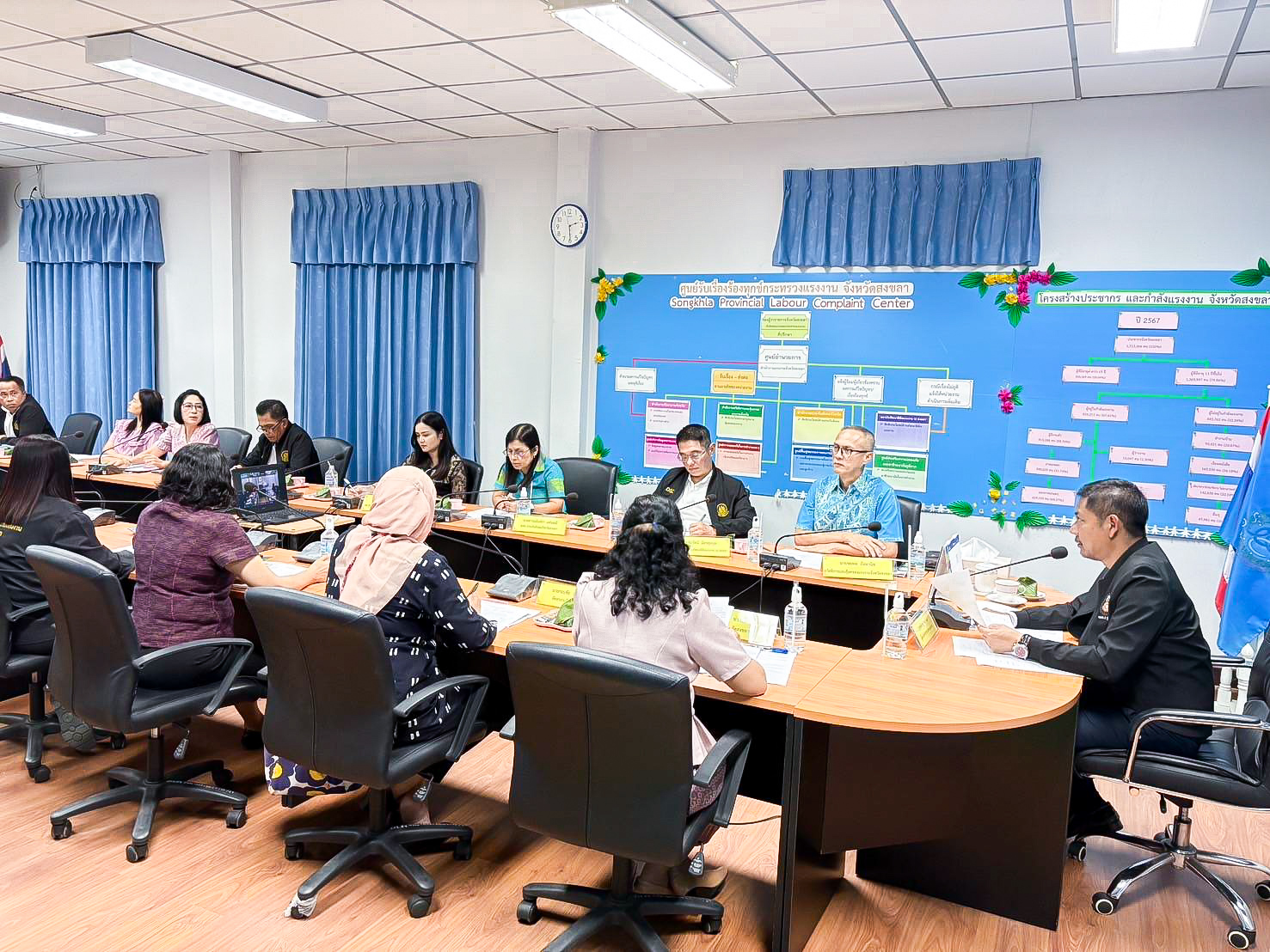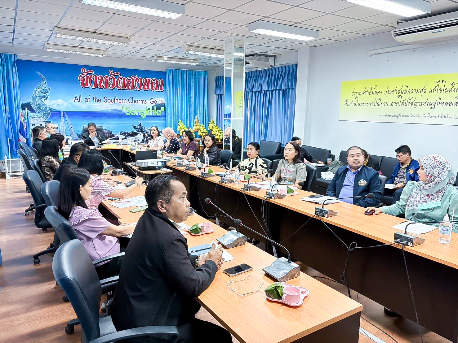 สำหรับการประชุมครั้งนี้มีเรื่องพิจารณา ได้แก่ กำหนดการ ประชุมหัวหน้าส่วนราชการสังกัดกระทรวงแรงงาน จังหวัดปัตตานี ยะลา นราธิวาส และสงขลา เพื่อตรวจติดตาม เร่งรัดและผลักดันแนวทางสำหรับสถานพยาบาลในการจัดเก็บ และวิเคราะห์ข้อมูลคนต่างด้าวที่เข้ารับการรักษาพยาบาลแล้วไม่สามารถเรียกเก็บค่ารักษาพยาบาลได้และแนวทางการจูงใจสถานประกอบการให้นำเข้าแรงงานต่างด้าวแบบ MOU และการมอบหมายหน่วยงานที่เกี่ยวข้อง เพื่อเตรียมการด้านข้อมูล และอำนวยความสะดวก ในการตรวจเยี่ยมกลุ่มแรงงานในสถานประกอบการ จังหวัดสงขล