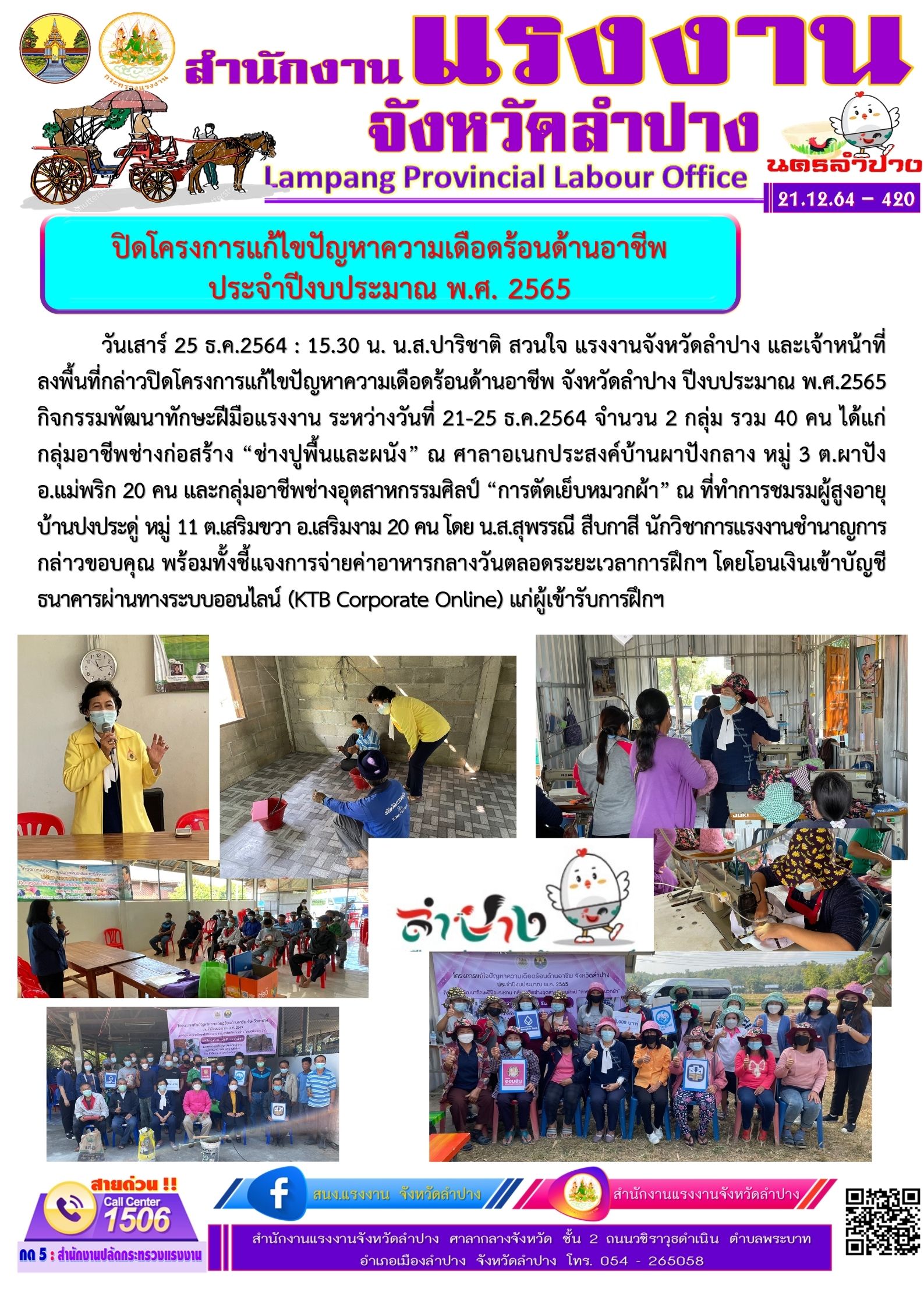 ปิดโครงการแก้ไขปัญหาความเดือดร้อนด้านอาชีพ จังหวัดลำปาง ปีงบประมาณ พ.ศ.2565