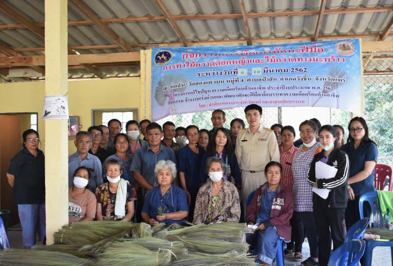 จากนั้นเดินทางไปทำการเปิดฝึกฯหลักสูตรการพัฒนาทักษะฝีมือการทำไม้กวาดดอกหญ้าและไม้กวาดทางมะพร้าว ณ หอฉัน วัดสองแควบน ม.4 ต.ป่าสัก อ.วังชิ้น จ.แพร่