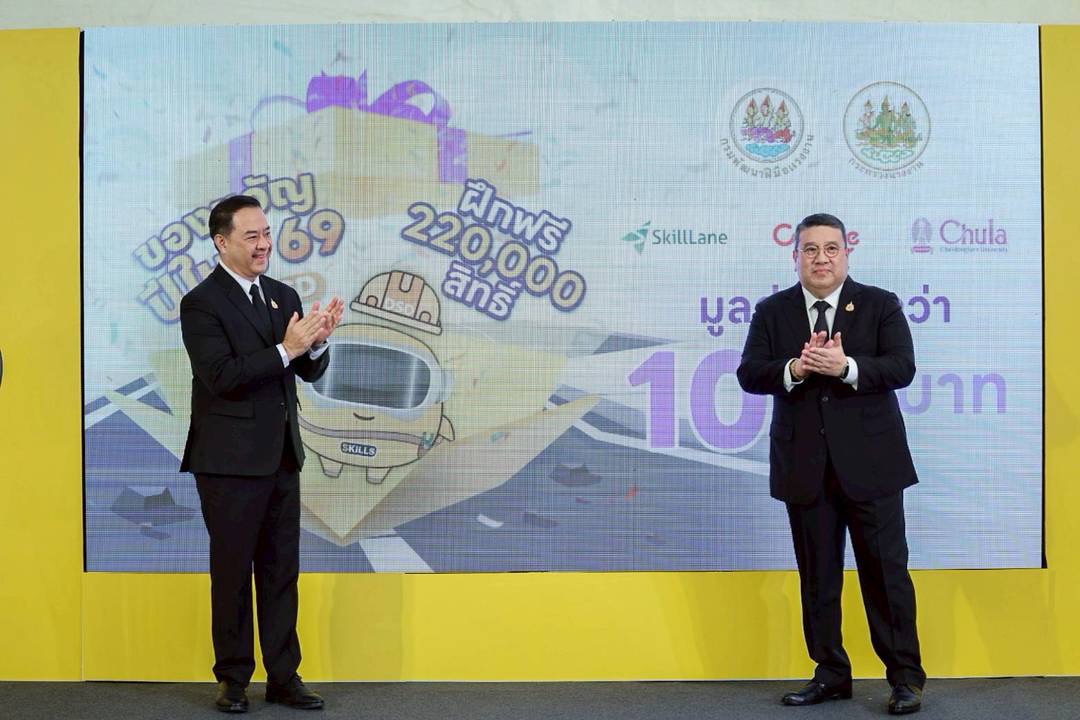 สำหรับของขวัญชิ้นที่ 2 คือ เปิดฝึกอบรมออนไลน์ฟรี 220,000 สิทธิ์ โดยร่วมกับจุฬาลงกรณ์มหาวิทยาลัย บริษัท สกิลเลน เทคโนโลยี จำกัด (มหาชน) และบริษัท โคนิเคิล จำกัด ซึ่งครอบคลุมทักษะดิจิทัลและทักษะที่จำเป็นต่อการทำงานในอนาคต ประชาชนสามารถ สมัครได้ที่ https://gcloud.dsd.go.th/~skillgift/ ตั้งแต่วันที่ 29 ธันวาคม 2568 ถึง 31 มกราคม 2569 หรือจนกว่าสิทธิ์จะครบ ผู้ที่ลงทะเบียนจะเริ่มอบรมรอบแรกได้ตั้งแต่วันที่ 1 มกราคม 2569 และเรียนได้จนถึงวันที่ 9 เมษายน 2569 เพื่อใช้ช่วงวันหยุดและต้นปีในการยกระดับทักษะ เพิ่มโอกาสในการทำงานและพัฒนาตนเอง