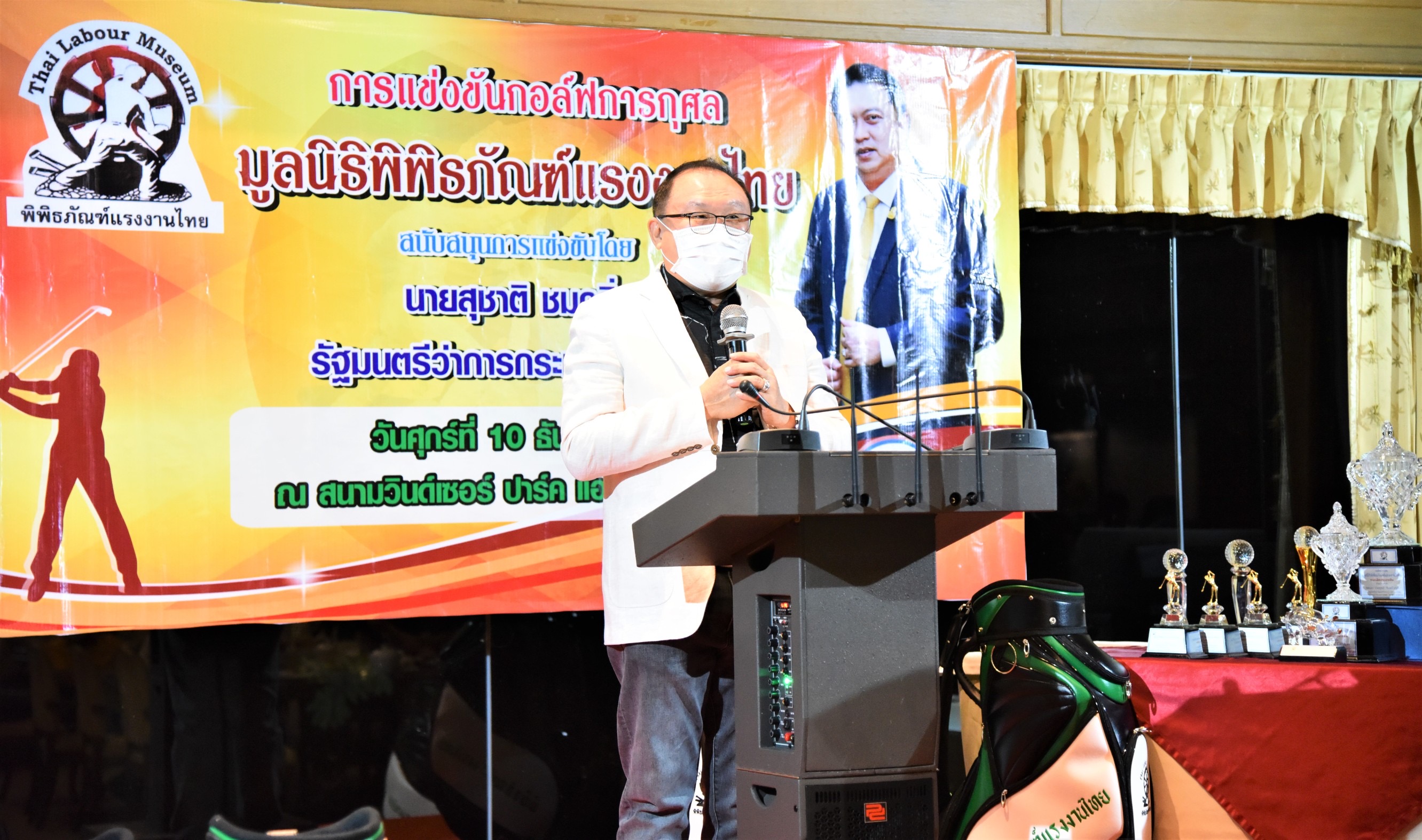 เมื่อวันที่ ๑๐ ธันวาคม ๒๕๖๔ เวลา ๑๘.๐๐ น. นายสุรชัย ชัยตระกูลทอง ที่ปรึกษารัฐมนตรีประจำกระทรวงแรงงาน พร้อมด้วยนายสุเทพ ชิตยวงษ์ เลขานุการรัฐมนตรีว่าการกระทรวงแรงงาน นายสุทธิ สุโกศล ประจำสำนักเลขาธิการนายกรัฐมนตรี ปฏิบัติหน้าที่ประจำกระทรวงแรงงาน นางสาวบุปผา เรืองสุด รองปลัดกระทรวงแรงงาน นายบุญสงค์ ทัพชัยยุทธ์ เลขาธิการสำนักงานประกันสังคม นายวรรณรัตน์ ศรีสุกใส ผู้ตรวจราชการกระทรวงแรงงาน นายณัฐวัฒน์ ธีรทัศน์ธำรง คณะที่ปรึกษารัฐมนตรีว่าการกระทรวงแรงงาน ร่วมกล่าวปิดการแข่งขันกอล์ฟการกุศลมูลนิธิพิพิธภัณฑ์แรงงานไทย และขอบคุณผู้เข้าร่วมแข่งขันทั้ง ๑๒ หน่วยงาน ประกอบด้วย ประกอบด้วย บริษัท ซีจีซี (ประเทศไทย) จำกัด บริษัท เดนโซ่ (ประเทศไทย) จำกัด บริษัท เด็นโซ่ อินเตอร์เนชั่นแนล เอเชีย จำกัด บริษัท ทีซีเอ็ม เทคโนโลยี จำกัด บริษัท ไทยฮอนด้า แมนูแฟคเจอริ่ง จำกัด บริษัท เนคเทค เอเชีย จำกัด (มหาชน) บริษัท บีจิสติกส์ จำกัด บริษัท บางกอกไบโอไซเอนซ์ จำกัด สหภาพแรงงานโตโยต้า สหภาพแรงงานฮอนด้าแห่งประเทศไทย บริษัท อิมเมจ คอร์เปอเรชั่น (ประเทศไทย) จำกัด บริษัท แอลแอลไอที (ประเทศไทย) จำกัด ที่ได้ให้การสนับสนุนการจัดแข่งขันจนสำเร็จตามวัตถุประสงค์ ณ ณ สนามกอล์ฟ วินด์เซอร์ ปาร์ค & กอล์ฟคลับ เขตหนองจอก กรุงเทพมหานคร สำหรับรายได้หลังหักค่าใช้จ่ายทั้งหมด จะได้นำไปสมทบทุนในการการปรับปรุงและบริหารพิพิธภัณฑ์แรงงานไทยต่อไป
