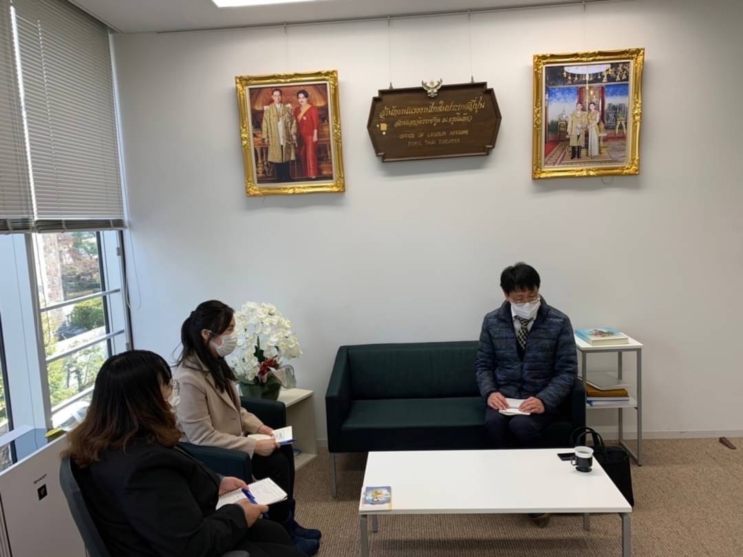 เมื่อวันที่ 17 มกราคม 2565 เวลา 13.30 น. (ตามเวลาท้องถิ่นประเทศญี่ปุ่น ซึ่งเร็วกว่าประเทศไทย 2 ชั่วโมง) นางสาวสดุดี กิตติสุวรรณ อัครราชทูตที่ปรึกษา (ฝ่ายแรงงาน) สำนักงานแรงงานในประเทศญี่ปุ่น อนุญาตให้ Mr. WADA Masaki ผู้จัดการบริษัทจัดหางานเอ็นเอ บางกอก จำกัด สำนักงานญี่ปุ่น เข้าเยี่ยมคารวะและใช้โอกาสนี้ในการหารือเรื่องการขยายตลาดแรงงานไทยในประเทศญี่ปุ่น การดูแลและประชาสัมพันธ์ให้ผู้ฝึกปฏิบัติงานด้านเทคนิค/แรงงานทักษะเฉพาะที่จัดส่งโดยบริษัทฯ ดูแลและป้องกันตนเองในช่วงการแพร่ระบาดของโควิด-19 และหารือเรื่องการให้ความคุ้มครองและดูแลสิทธิประโยชน์ของผู้ฝึกปฏิบัติงานด้านเทคนิค/แรงงานทักษะเฉพาะเรื่องการขยายตลาดแรงงานไทยในประเทศญี่ปุ่น นางสาวสดุดีฯ ได้สอบถามความคืบหน้าจากการที่บริษัทได้ไปออกบูธที่จังหวัดชิบะ ซึ่ง Mr. WADA Masaki แจ้งว่ามีบริษัทญี่ปุ่น 3 แห่งที่มีความสนใจจะไปลงทุนที่ประเทศไทย โดยอยู่ระหว่างการหารือในรายละเอียด และบริษัทฯ มีแผนจะออกบูธในงาน Expo ที่จังหวัดโอซากา ระหว่างวันที่ 24 – 26 กุมภาพันธ์ 2565 และที่โตเกียวในช่วงเดือนตุลาคม 2565 ทั้งนี้ บริษัทฯ มีแผนจะลงทุนทำบ้านพักคนชราและโรงเรียนสอนงานบริบาลที่จังหวัดอุดรธานี มีวัตถุประสงค์เพื่อถ่ายทอดและยกระดับความรู้ด้านงานบริบาลเพื่อให้ผู้ฝึกปฏิบัติงานด้านเทคนิค/แรงงานทักษะเฉพาะนำไปใช้ให้เกิดประโยชน์ และเพื่อให้ผู้ใช้บริการได้รับบริการที่ดี ขณะนี้บริษัทฯ รับผู้ฝึกปฏิบัติงานด้านเทคนิคไทย 55 คน และแรงงานทักษะเฉพาะไทย 30 คนที่ฝึกงาน/ทำงานในประเทศญี่ปุ่น และมีผู้ฝึกปฏิบัติงานด้านเทคนิค/แรงงานทักษะเฉพาะไทยที่ยังรอการเดินทางอีกประมาณ 100 คน ซึ่งนางสาวสดุดีฯ ขอความร่วมมือบริษัทฯ ให้ช่วยประชาสัมพันธ์และสนับสนุนให้นายจ้างญี่ปุ่นจ้างแรงงานไทยเพิ่มมากขึ้น เนื่องจากคนหางานไทยมีความสนใจจะเดินทางมาทำงานในประเทศญี่ปุ่นเป็นจำนวนมาก และสำนักงานฯ ยินดีที่จะอำนวยความสะดวกแก่นายจ้างในการจ้างแรงงานไทย