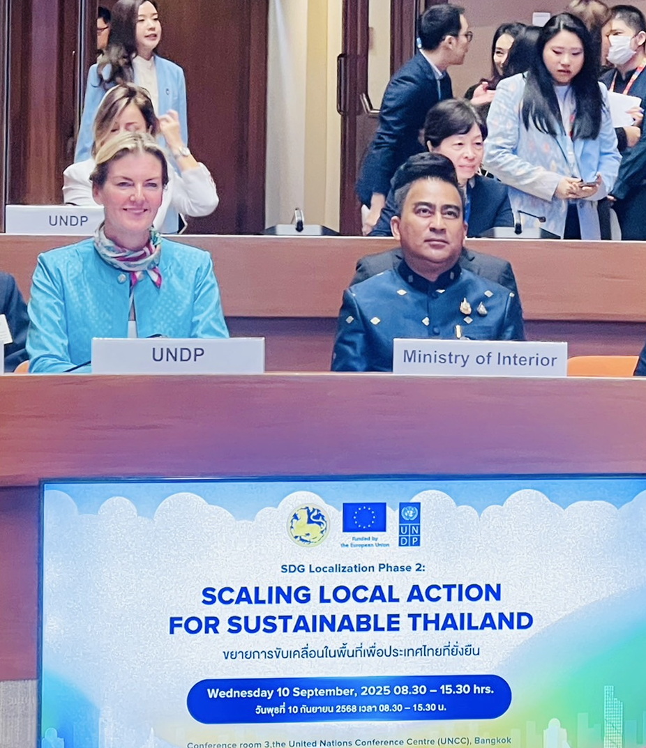 วันที่ 10 กันยายน 2568 เวลา 09.00 น. นายสมาสภ์ ปัทมะสุคนธ์ รองปลัดกระทรวงแรงงาน มอบหมายให้ นายศักดินาถ สนธิศักดิ์โยธิน ผู้ช่วยปลัดกระทรวงแรงงาน ร่วมงานเปิดตัวโครงการ SDG Localisation Phase 2: Scaling Local Action for Sustainable Thailand (การขยายผลการดำเนินงานในระดับพื้นที่เพื่อประเทศไทยที่ยั่งยืน) โดยมี นายสันติธร ยิ้มละมัย รองปลัดกระทรวงมหาดไทย ผู้แทนคณะผู้แทนสหภาพยุโรปประจำประเทศไทย และ Ms. Niamh Collier-Smith ผู้แทนพำนักประจำ UNDP ประเทศไทย กล่าวต้อนรับ ณ ห้องประชุม 3 ศูนย์การประชุมสหประชาชาติ อาคารสหประชาชาติ กรุงเทพมหานคร