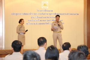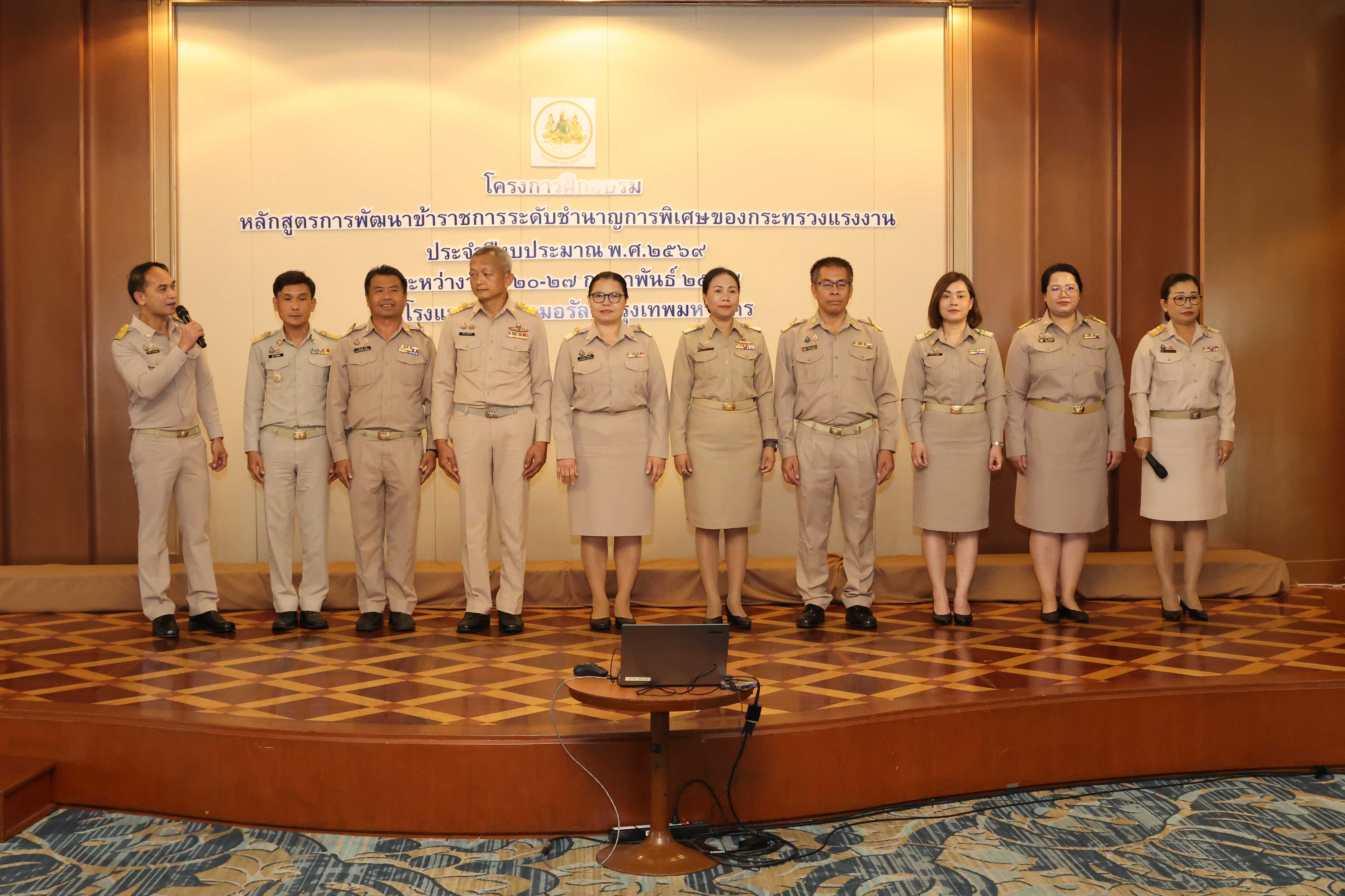 วันที่ 27 กุมภาพันธ์ 2569 เวลา 09.30 น. นายศักดินาถ สนธิศักดิ์โยธิน ผู้ช่วยปลัดกระทรวงแรงงาน พร้อมด้วย นายเสกสิทธิ์ สวรรยาธิปัติ ผู้ช่วยปลัดกระทรวงแรงงาน ร่วมรับฟังการนำเสนอและให้ข้อเสนอแนะในกิจกรรมการนำเสนอข้อเสนอเพื่อการพัฒนาหลักสูตรการพัฒนาข้าราชการระดับชำนาญการพิเศษของกระทรวงแรงงาน ประจำปีงบประมาณ พ.ศ. 2569 ณ ห้องพาโนรามา ชั้น 14 โรงแรม ดิ เอมเมอรัลด์ ถนนรัชดาภิเษก เขตดินแดง กรุงเทพมหานคร