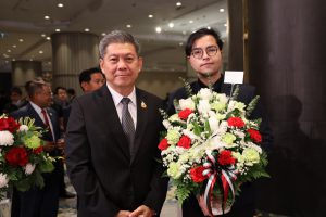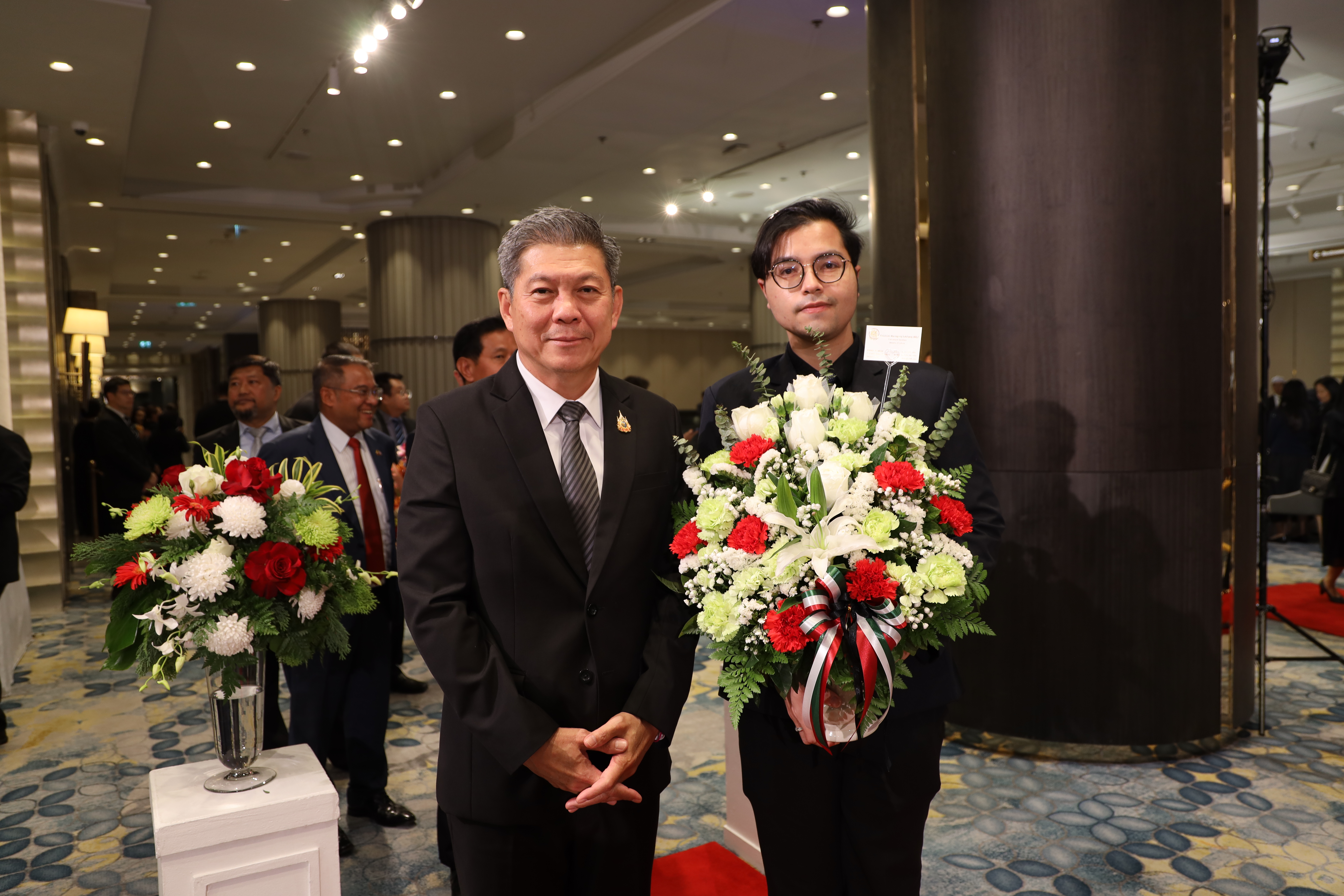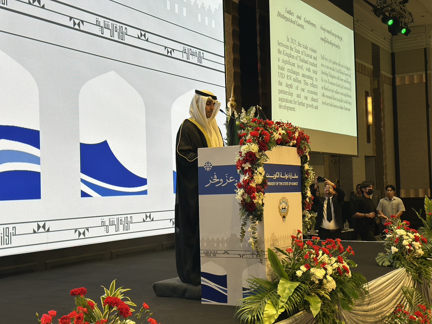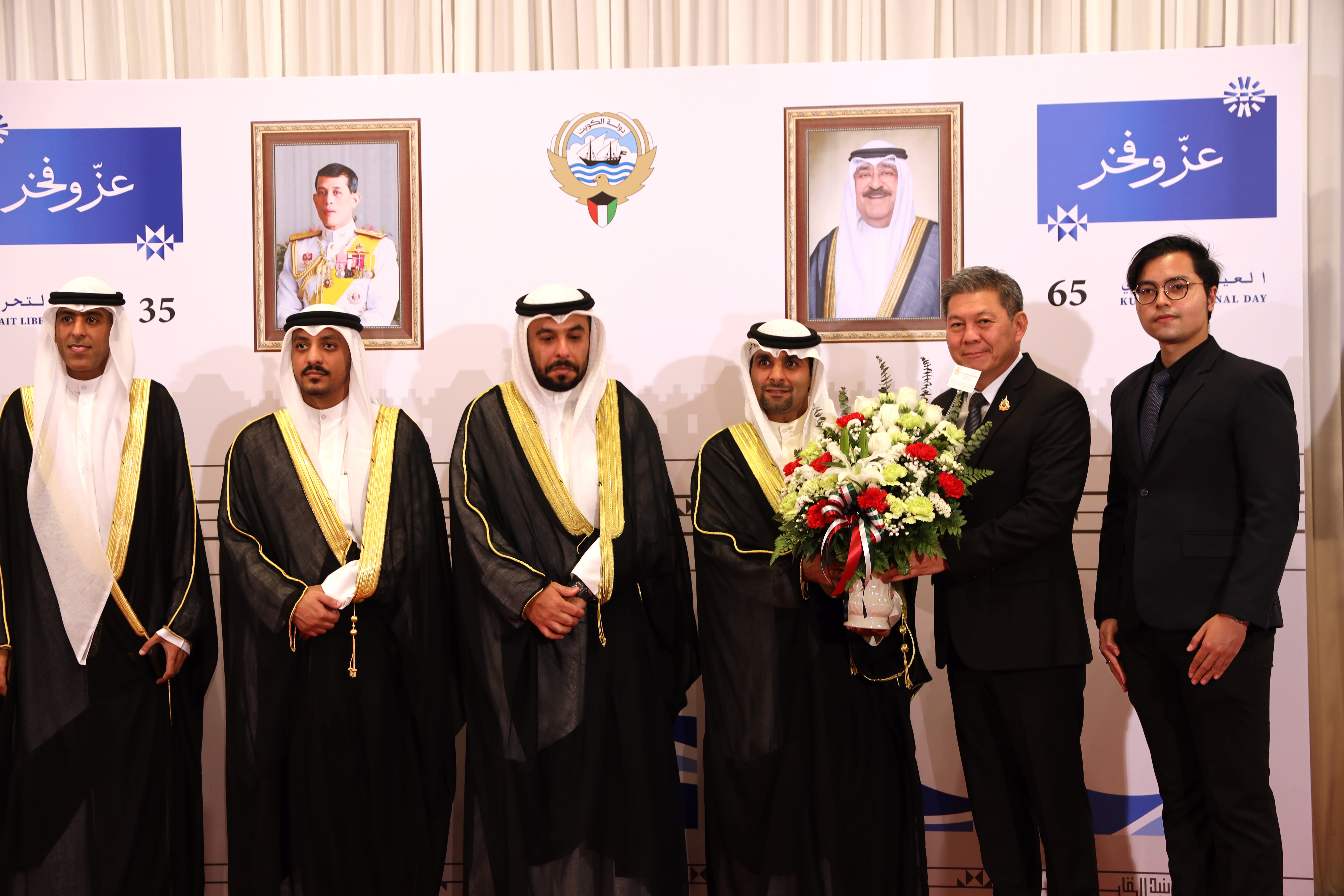 วันที่ 3 กุมภาพันธ์ 2569 เวลา 18.30 น. พันตำรวจโท วรรณพงษ์ คชรักษ์ ปลัดกระทรวงแรงงาน มอบหมายให้ นายศักดินาถ สนธิศักดิ์โยธิน ผู้ช่วยปลัดกระทรวงแรงงาน เป็นผู้แทนมอบแจกันดอกไม้ร่วมแสดงความยินดีเนื่องในโอกาสครบรอบ 65 ปีวันชาติ และวันครบรอบการประกาศอิสรภาพรัฐคูเวต ปีที่ 35 โดยมี นายอับดุลโมห์เซน อัลฟาเรส (Mr. Abdulmohsen Alfares) อุปทูตรักษาการสถานเอกอัครราชทูตรัฐคูเวตประจำประเทศไทย เป็นผู้รับมอบและร่วมให้การต้อนรับ ณ ห้องแกรนด์บอลรูม โรงแรมอินเตอร์ คอนติเนนตัล ถนนเพลินจิต เขตปทุมวัน กรุงเทพมหานคร