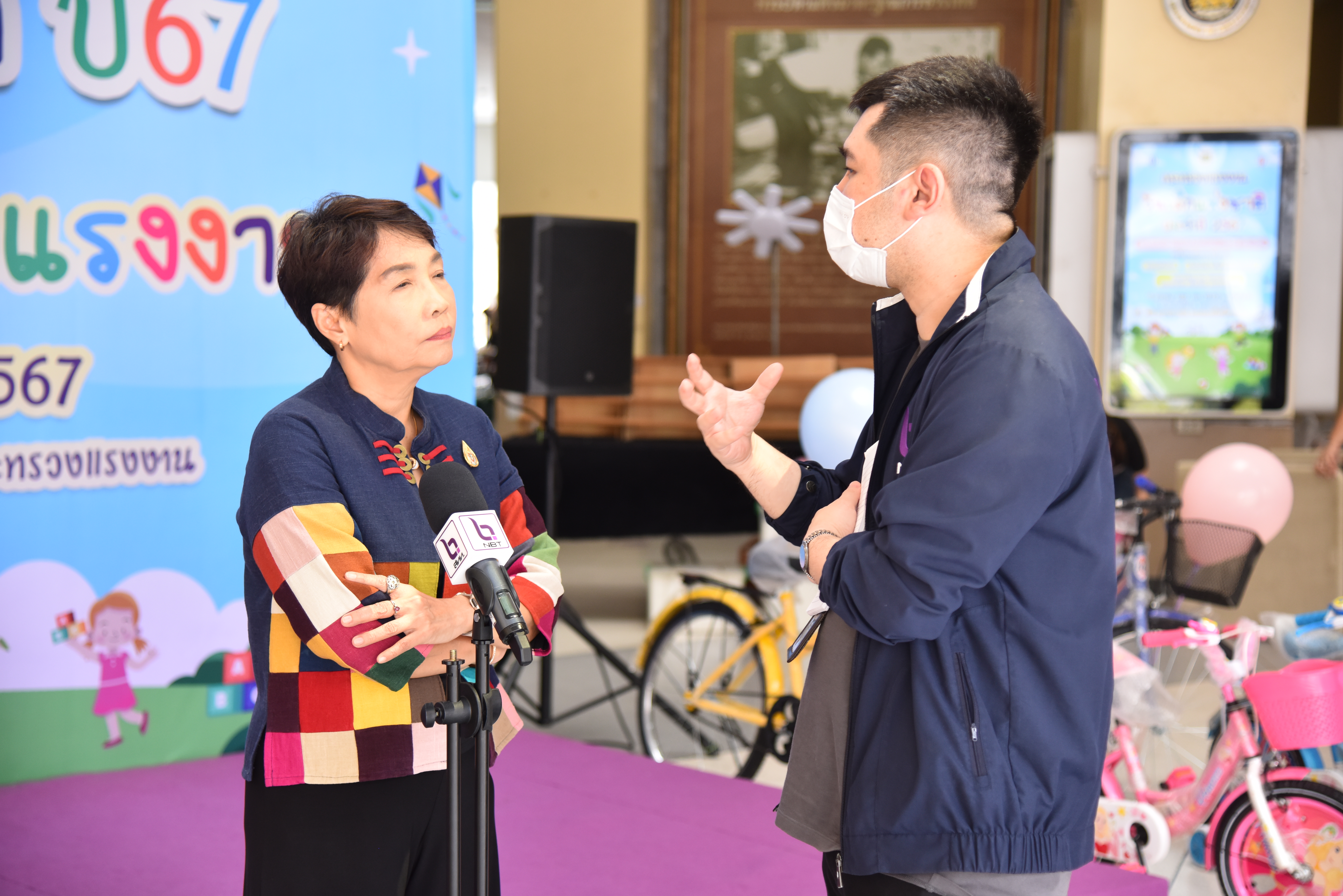 วันที่ 12 มกราคม 2567 เวลา 14.00 น. นางสาวกรจิรัฏฐ์ พงจันทร์ศธร ผู้ช่วยปลัดกระทรวงแรงงาน ให้สัมภาษณ์ประเด็น การจัดกิจกรรมงานวันเด็กแห่งชาติ กระทรวงแรงงาน ประจำปี 2567 เพื่อประชาสัมพันธ์เชิญชวนพี่น้องแรงงาน นายจ้าง ลูกจ้าง และประชาชนทั่วไป พาบุตรหลานมาร่วมกิจกรรมวันเด็กแห่งชาติ ในวันเสาร์ที่ 13 มกราคมนี้ ที่บริเวณโถงชั้นล่างอาคารกระทรวงแรงงาน ถนนมิตรไมตรี เขตดินแดง กรุงเทพฯ เริ่มตั้งแต่เวลา 08.00 น.เป็นต้นไป
