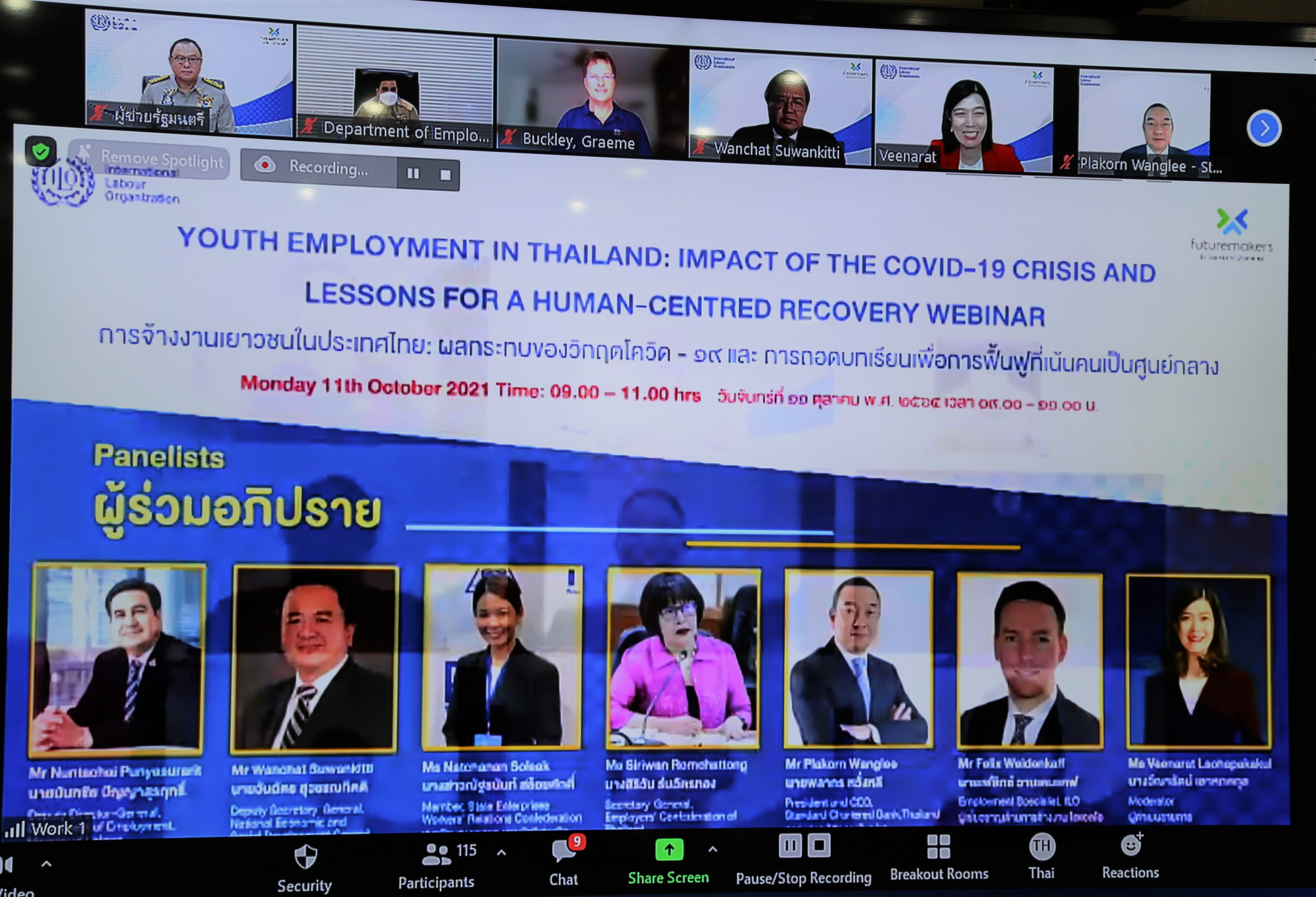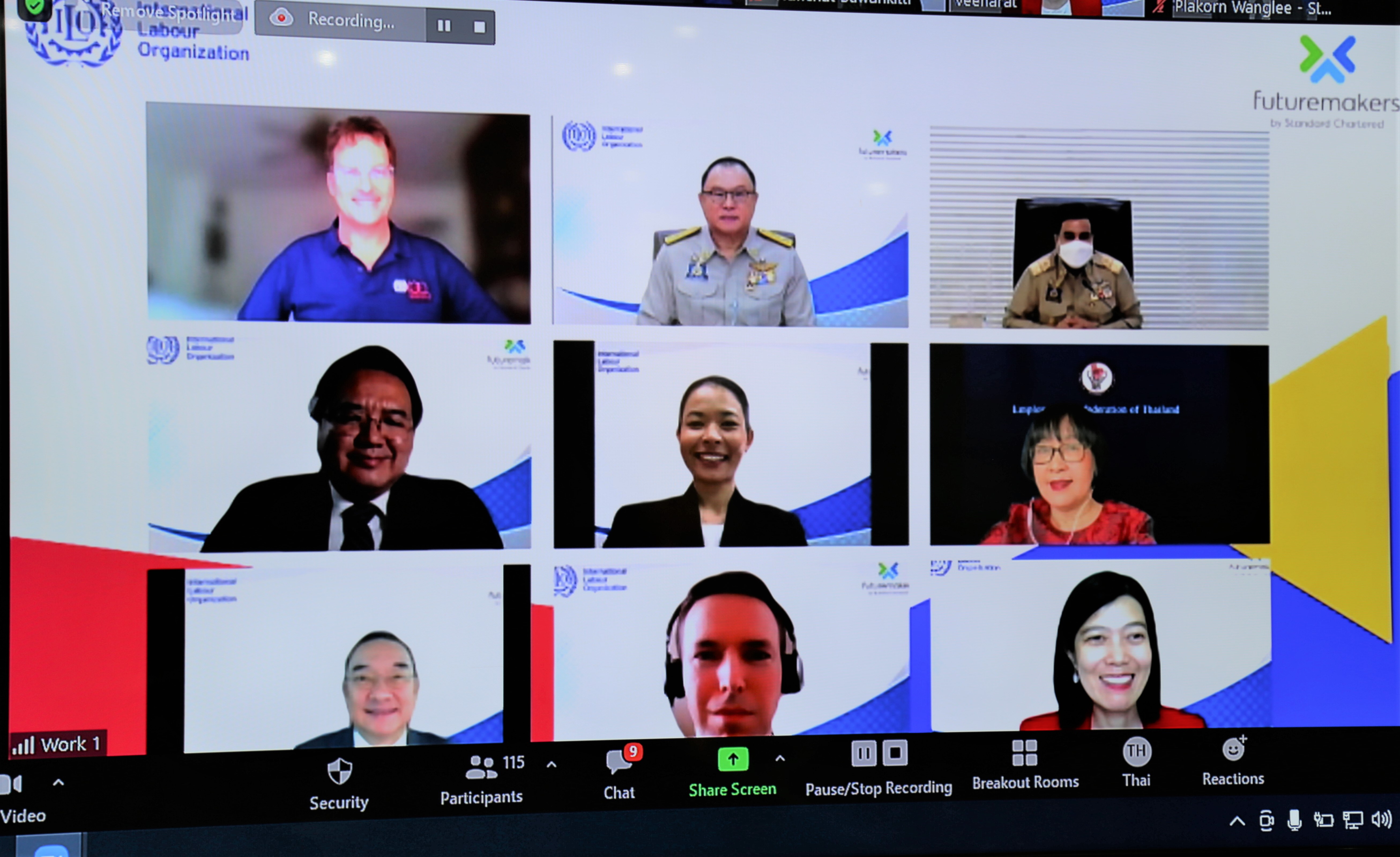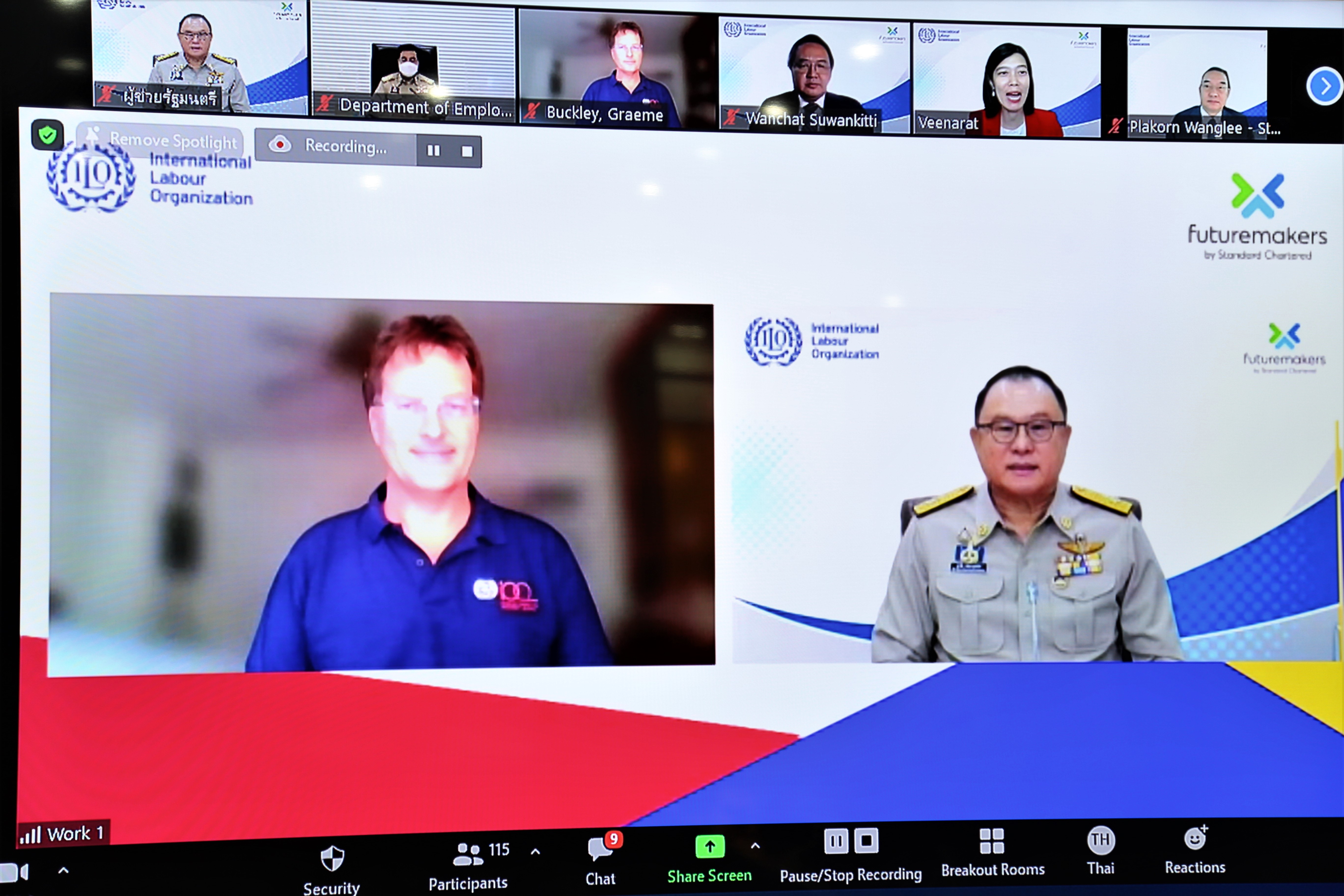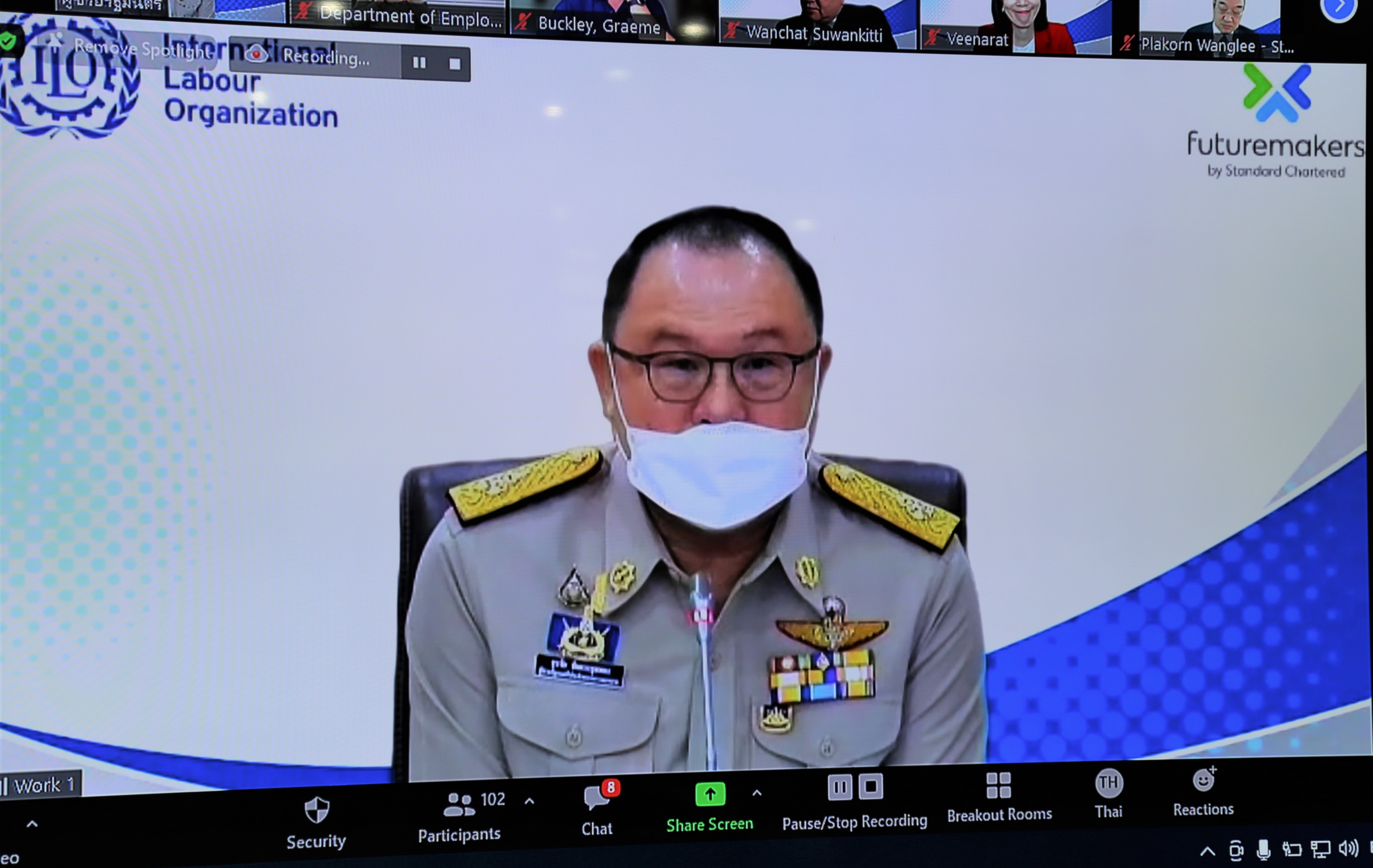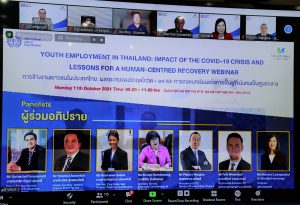 วันที่ ๑๑ ตุลาคม ๒๕๖๔ เวลา ๐๙.๐๐ น. นายสุชาติ ชมกลิ่น รัฐมนตรีว่าการกระทรวงแรงงาน มอบหมายให้ นายสุรชัย ชัยตระกูลทอง ผู้ช่วยรัฐมนตรีประจำกระทรวงแรงงาน กล่าวปาฐกถาพิเศษในการสัมมนาออนไลน์ ของ ILO เรื่อง การจ้างงานเยาวชนในประเทศไทย : ผลกระทบของวิกฤตโควิด – ๑๙ และการถอดบทเรียนเพื่อการฟื้นฟูที่เน้นคนเป็นศูนย์กลาง ณ ห้องประชุมแสงสิงแก้ว ชั้น ๕ อาคารกระทรวงแรงงาน โดย นายสุรชัย กล่าวว่า รัฐบาลไทยภายใต้การนำของ พลเอก ประยุทธ์ จันทร์โอชา นายกรัฐมนตรีและรัฐมนตรีว่าการกระทรวงกลาโหม ได้ประกาศยุทธศาสตร์ชาติ ๒๐ ปี ซึ่งมีวัตถุประสงค์เพื่อบรรลุวิสัยทัศน์ “ประเทศไทยมีความมั่นคง มั่งคั่ง ยั่งยืน เป็นประเทศพัฒนาแล้ว ด้วยการพัฒนาตามหลักปรัชญาของเศรษฐกิจพอเพียง” โดยได้กำหนดยุทธศาสตร์ด้านการสร้างความสามารถในการแข่งขัน และด้านการพัฒนาและเสริมสร้างศักยภาพของทรัพยากรมนุษย์ เพื่อพัฒนาคนในทุกด้าน และในทุกช่วงวัยให้เป็นคนดี คนเก่ง มีคุณภาพ และสามารถตอบสนองต่อการเปลี่ยนแปลงในศตวรรษที่ ๒๑ โดยส่งเสริมการพัฒนาคนตลอดช่วงชีวิต (LifelongLearning) และให้ความสำคัญกับการพัฒนาเด็กและเยาวชน เพื่อสร้างทรัพยากรมนุษย์ที่มีคุณภาพ และส่งเสริมการเป็นผู้ประกอบการ