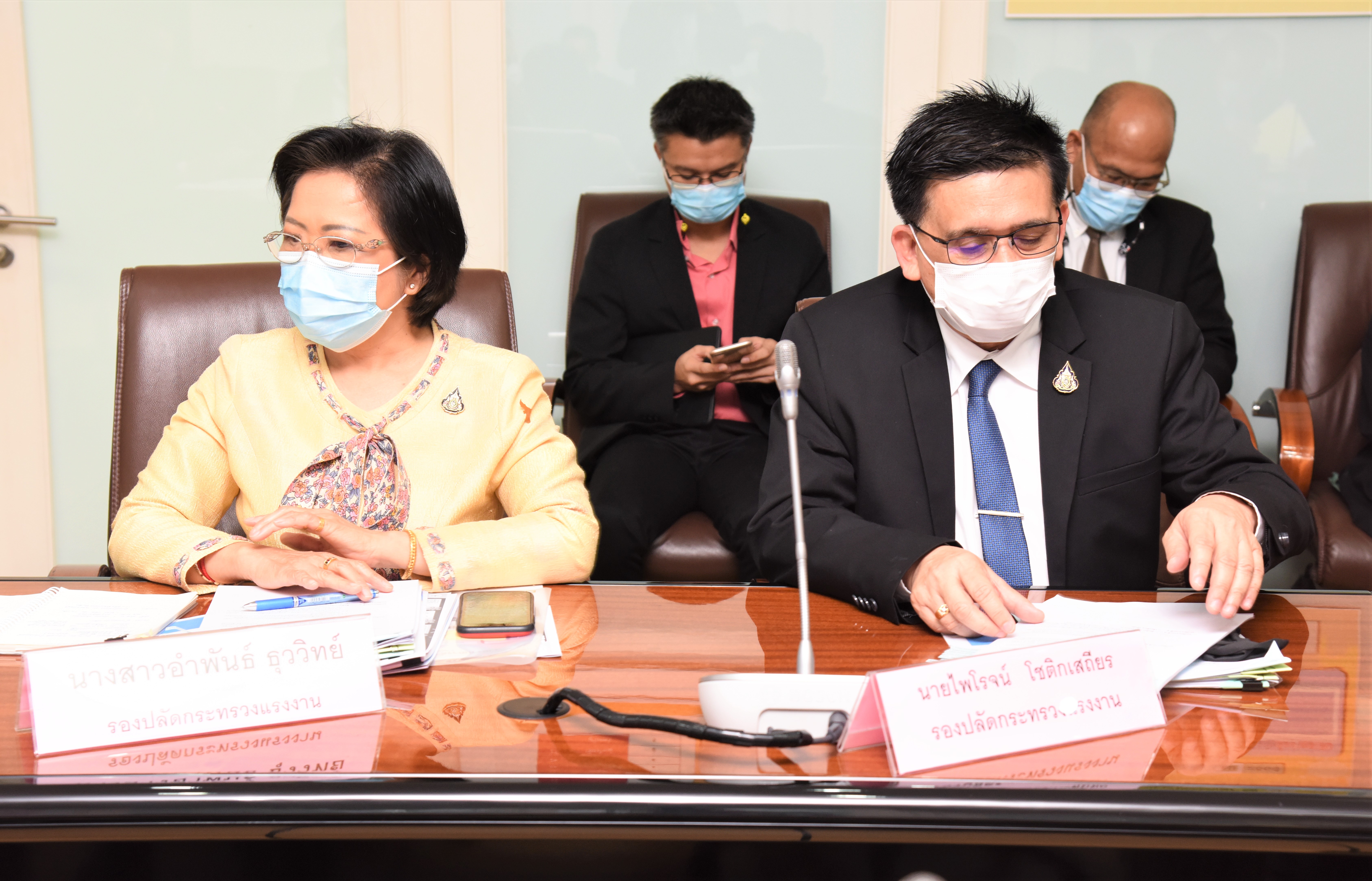 ทั้งนี้ ที่ประชุมขอความร่วมมือให้ทุกจังหวัดประชาสัมพันธ์นายจ้าง และสถานประกอบกิจการทุกแห่งดำเนินการประชาสัมพันธ์ ประกาศกระทรวงแรงงาน เรื่องขอความร่วมมือห้ามเคลื่อนย้ายแรงงานต่างด้าวเข้าไปหรือออกจากนอกพื้นที่ที่มีความเสี่ยงต่อการแพร่ระบาดของโรคติดเชื้อไวรัสโคโรน่า 2019 จัดให้มีมาตรการเฝ้าระวังตรวจสอบคัดกรองโรค เช่น วัดอุณหภูมิร่างกาย จัดหาเจลแอลกอฮอล์ล้างมือ ควบคุมให้สวมใส่หน้ากากอนามัย รวมถึงการประชาสัมพันธ์ให้แรงงานต่างด้าวทราบวิธีป้องกันตนเอง คำสั่งกระทรวงแรงงาน เรื่องจัดตั้งศูนย์บริหารสถานการณ์การแพร่ระบาดของโรคติดเชื้อไวรัสโคโรน่า 2019 กระทรวงแรงงาน (ศบค.รง.) และมติคณะรัฐมนตรี เรื่อง การผ่อนผันให้คนต่างด้าว 3 สัญชาติ (กัมพูชา ลาว และเมียนมา) อยู่ในราชอาณาจักร และทำงานอย่างถูกต้องตามกฎหมายเป็นกรณีพิเศษ ภายใต้สถานการณ์การแพร่ระบาดของโรคติดเชื้อไวรัสโคโรน่า 2019 ระลอกใหม่ พร้อมทั้งรับทราบ มาตรการเยียวยาผู้ประกันตนที่ได้รับผลกระทบจาก Covid-19 ระลอกใหม่ กระทรวงแรงงาน รายงานสถานการณ์การแพร่ระบาดของโรคติดเชื้อไวรัสโคโรนา 2019 ของแต่ละจังหวัด กรณีพบแรงงานติดเชื้อ อาทิ จำนวนสถานประกอบกิจการ/ จำนวนลูกจ้าง จำแนกเป็นลูกจ้างไทย ลูกจ้างต่างด้าว (สัญชาติ) และการดำเนินการ เช่น นำส่งสถานที่กักตัว หรือ การส่งตัวเข้ารับการรักษา เพื่อการดูแลและป้องกันตนเองจากการระบาดของโควิด – 19
