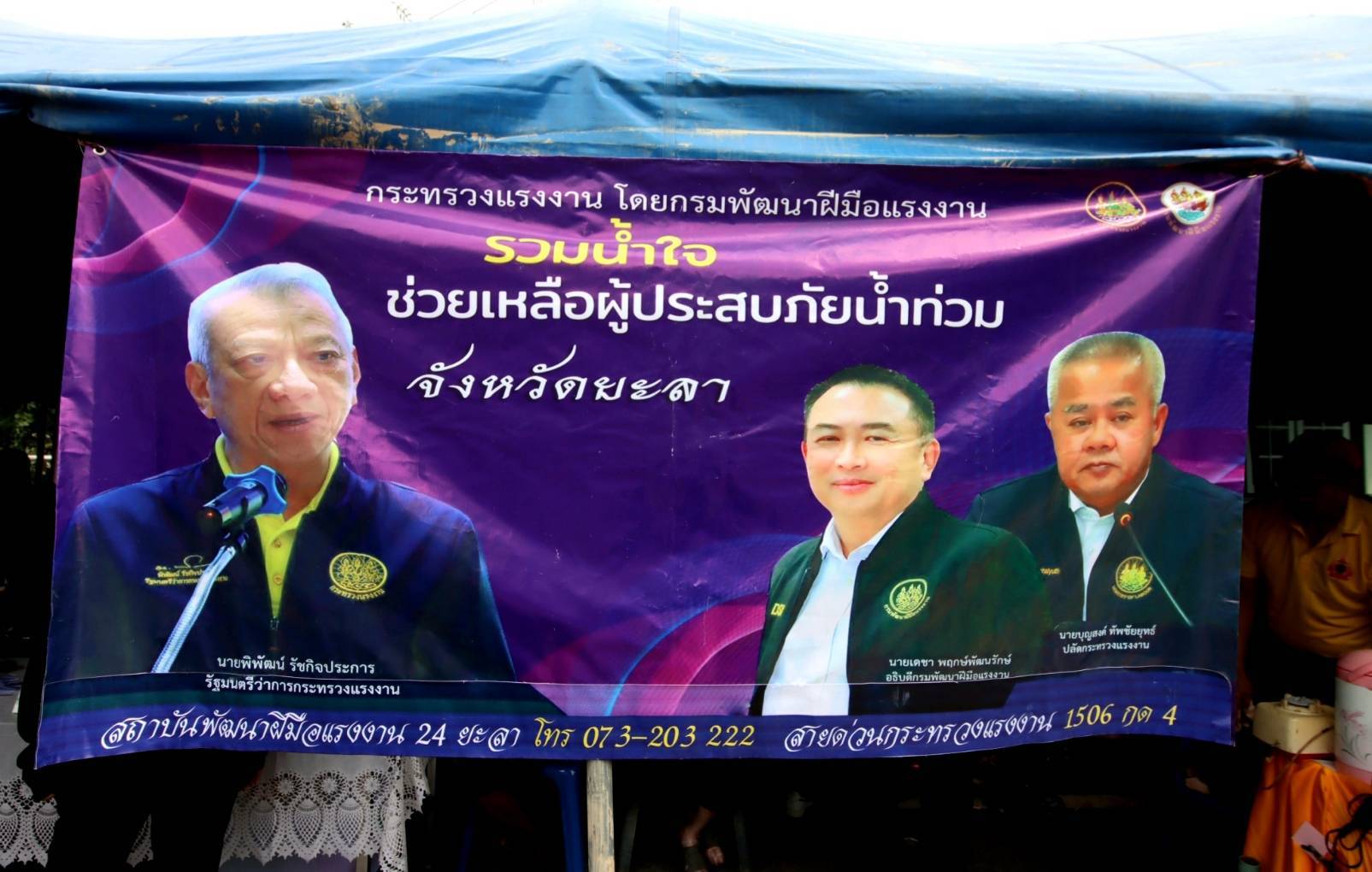 วันที่ 5 ธันวาคม 2567 นายพิพัฒน์ รัชกิจประการ รัฐมนตรีว่าการกระทรวงแรงงาน มอบนายสิรภพ ดวงสอดศรี ผู้ช่วยรัฐมนตรีประจำกระทรวงแรงงาน ลงพื้นที่มอบถุงยังชีพช่วยเหลือแรงงานนอกระบบ ผู้ประกอบอาชีพอิสระ และประชาชนที่ได้รับผลกระทบจากอุทกภัยในพื้นที่จังหวัดยะลา ซึ่งวันนี้เป็นวันที่สอง ในการนี้ นายบุญสงค์ ทัพชัยยุทธ์ ปลัดกระทรวงแรงงาน มอบหมายให้ นายพิเชษฐ์ ทองพันธ์ ผู้ตรวจราชการกระทรวงแรงงาน พร้อมด้วย นายศักดินาถ สนธิศักดิ์โยธิน ผู้ช่วยปลัดกระทรวงแรงงาน ผู้บริหารกระทรวงแรงงาน ร่วมลงพื้นที่ โดยมี หัวหน้าส่วนราชการสังกัดกระทรวงแรงงานจังหวัดยะลา องค์กรปกครองส่วนท้องถิ่น ผู้นำชุมชน และประชาชนในพื้นที่ร่วมให้การต้อนรับ โดย นายสิรภพ และคณะ ได้ลงพื้นที่มอบถุงยังชีพ จำนวน 4 จุด ประกอบด้วย หมู่ที่ 1, หมู่ 2, หมู่ที่ 3 และ หมู่ที่ 4 ต.หน้าถ้ำ อ.เมือง จ.ยะลา จุดละ 125 ชุด รวมจำนวน ทั้งสิ้น 500 ชุด พร้อมตรวจเยี่ยมการให้บริการซ่อมแซมอุปกรณ์เครื่องใช้ไฟฟ้า รถจักรยานยนต์ เครื่องยนต์เล็กเพื่อการเกษตรที่ได้รับผลกระทบ โดยสถาบันพัฒนาฝีมือแรงงาน 24 ยะลา ซึ่งเปิดวันแรก มีผู้มาใช้บริการซ่อมรถจักรยานยนต์ 56 คัน เครื่องใช้ไฟฟ้า 55 รายการ