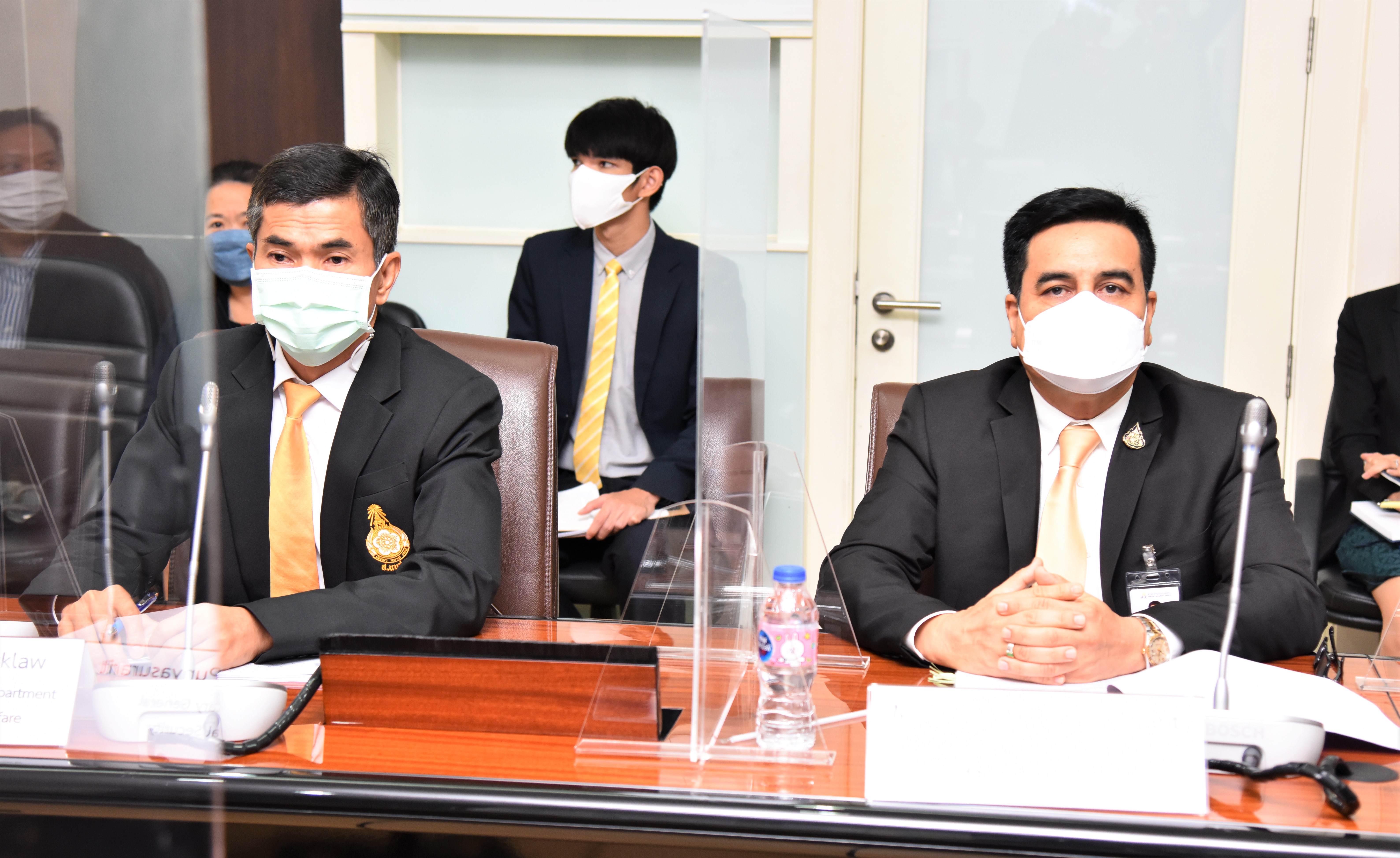 วันที่ 17 มีนาคม 2565 เวลา 10.00 น. นายสุชาติ ชมกลิ่น รัฐมนตรีว่าการกระทรวงแรงงาน มอบหมายให้ นายสุรชัย ชัยตระกูลทอง ผู้ช่วยรัฐมนตรีประจำกระทรวงแรงงาน เป็นผู้แทนให้การต้อนรับ Mr. TAKETANI Atsushi ประธานองค์การส่งเสริมการค้าต่างประเทศของญี่ปุ่น ประจำประเทศไทย (JETRO Bangkok) และคณะ เข้าเยี่ยมคารวะพร้อมหารือ เพื่อรายงานผลการสำรวจความเชื่อมั่นทางธุรกิจของผู้ประกอบการญี่ปุ่นในประเทศไทยช่วงครึ่งปีหลังของปี 2564 และแลกเปลี่ยนข้อมูลที่เป็นประโยชน์ร่วมกัน ผ่านทางระบบประชุมทางไกลผ่านจอภาพ ณ ห้องประชุมแสงสิงแก้ว ชั้น 5 อาคารกระทรวงแรงงาน โดยผู้ช่วยรัฐมนตรีประจำกระทรวงแรงงาน ได้กล่าวว่า การหารือในครั้งนี้จะช่วยสะท้อนให้เห็นถึงมุมมองและแนวโน้มการลงทุนของต่างชาติที่เป็นประโยชน์อย่างยิ่งในการวางนโยบายเศรษฐกิจของไทยในอนาคต รวมถึงเป็นมุมมองสำคัญที่เชื่อมโยงกับด้านแรงงานที่เป็นรากฐานของเศรษฐกิจต่อไป
