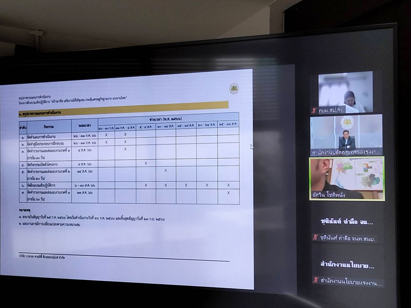วันที่ 4 สิงหาคม 2566 นายสมาสภ์ ปัทมะสุคนธ์ ผู้ตรวจราชการกระทรวงแรงงาน เป็นประธานประชุมคณะกรรมการตรวจรับพัสดุโครงการฝึกอบรมเชิงปฏิบัติการ “สร้างอาชีพ เสริมรายได้ ให้ชุมชน กระตุ้นเศรษฐกิจฐานรากแรงงานไทย” ครั้งที่ 1/2566 ผ่านแอพพลิเคชั่น Zoom ณ ห้องประชุมแสงสิงแก้ว ชั้น 5 อาคารกระทรวงแรงงาน โดยที่ประชุมได้พิจารณาตรวจรับงานงวดที่ 1 โครงการฝึกอบรมเชิงปฏิบัติการ “สร้างอาชีพ เสริมรายได้ให้ชุมชน กระตุ้นเศรษฐกิจฐานราก แรงงานไทย” การลงพื้นที่และตรวจติดตามการดำเนินงานของคณะกรรมการตรวจรับพัสดุ แบบรายงานการตรวจสอบและรับรองการจัดกิจกรรมในวันเปิดตัวโครงการดังกล่าว