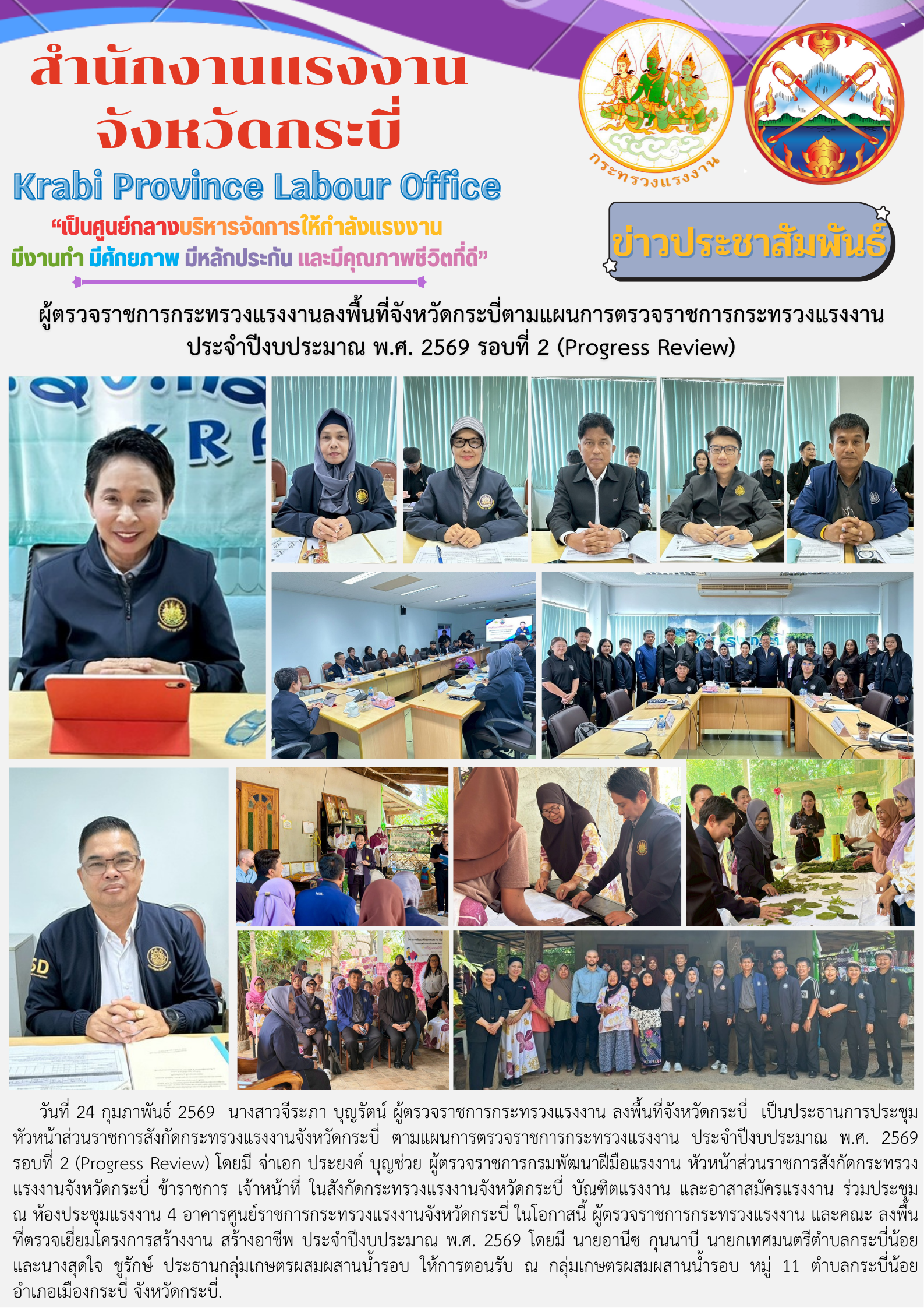ผู้ตรวจราชการกระทรวงแรงงานลงพื้นที่จังหวัดกระบี่ตามแผนการตรวจราชการกระทรวงแรงงานประจำปีงบประมาณ พ.ศ. 2569 รอบที่ 2 (Progress Review)