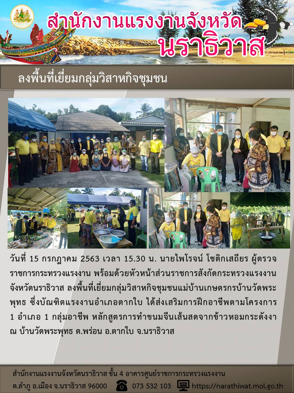 ผู้ตรวจราชการกระทรวงแรงงานและคณะ ลงพื้นที่เยี่ยมกลุ่มวิสาหกิจชุมชน