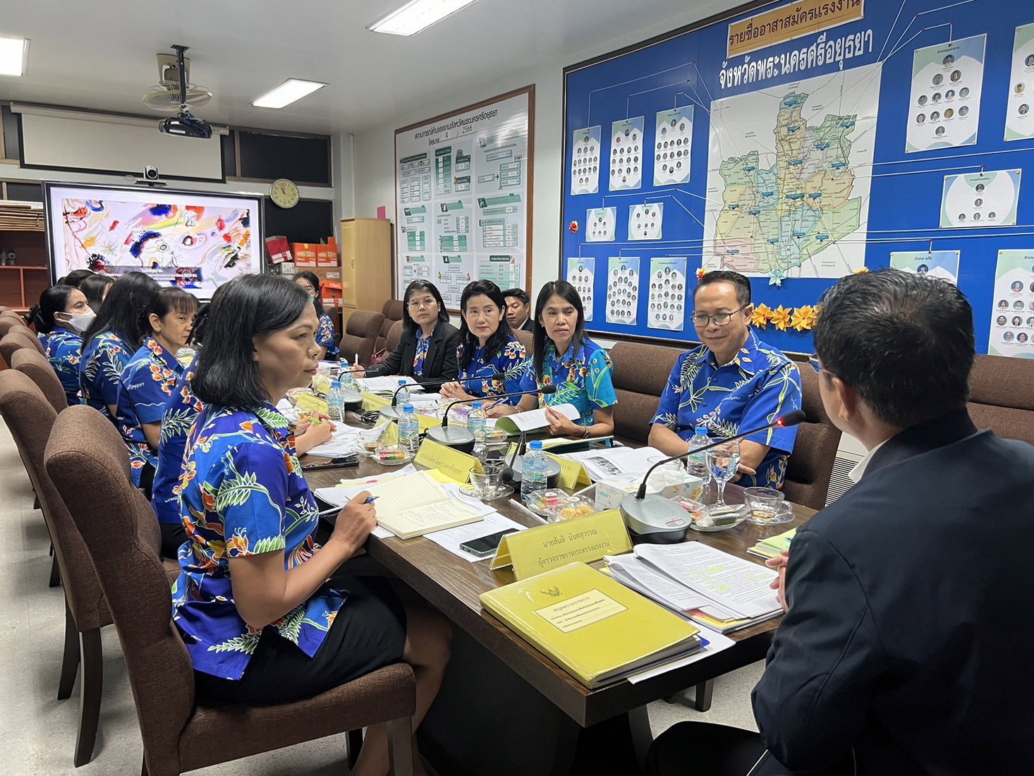 วันที่ 22 มีนาคม 2567 นายสันติ นันตสุวรรณ ผู้ตรวจราชการกระทรวงแรงงาน พร้อมหัวหน้าส่วนราชการในสังกัดกระทรวงแรงงาน เข้าพบ นายประพันธ์ ตรีบุปผา รองผู้ว่าราชการพระนครศรีอยุธยา เพื่อหารือข้อราชการด้านแรงงาน การขับเคลื่อนโครงการจ้างงานคนพิการเชิงสังคม การบริหารจัดการการทำงานของแรงงานต่างด้าว การส่งแรงงานไทยไปทำงานต่างประเทศ เป็นต้น ณ ชั้น 2 ศาลากลางจังหวัดพระนครศรีอยุธยา