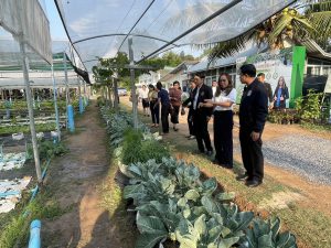 ต่อมาในช่วงบ่าย ผู้ตรวจราชการกระทรวงแรงงาน ตรวจเยี่ยม “การพัฒนาทักษะเฉพาะของแรงงานอิสระยุค 4.0 (Gig Worker) การฝึกอาชีพผู้ประกอบการร้านกาแฟ พร้อมมอบเครื่องมือพื้นฐานชุดการฝึก (ชุดเครื่องมือทำมาหากิน) หลักสูตรการประกอบอาหารจานเดี่ยวเชิงธุรกิจออนไลน์ แก่กลุ่มแรงงาน ณ สำนักงานพัฒนาฝีมือแรงงานกาฬสินธุ์ อำเภอยางตลาด จังหวัดกาฬสินธุ์ และตรวจเยี่ยมสวนปันบุญเกษตรอินทรีย์ วิสาหกิจชุมชน สร้างอาชีพสร้างรายได้แก่คนในชุมชน ณ หมู่ 2 ตำบลฆ้องชัยพัฒนา อำเภอฆ้องชัย จังหวัดกาฬสินธุ์