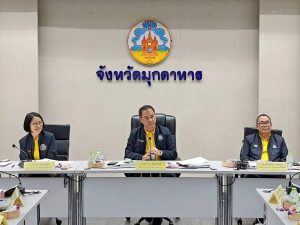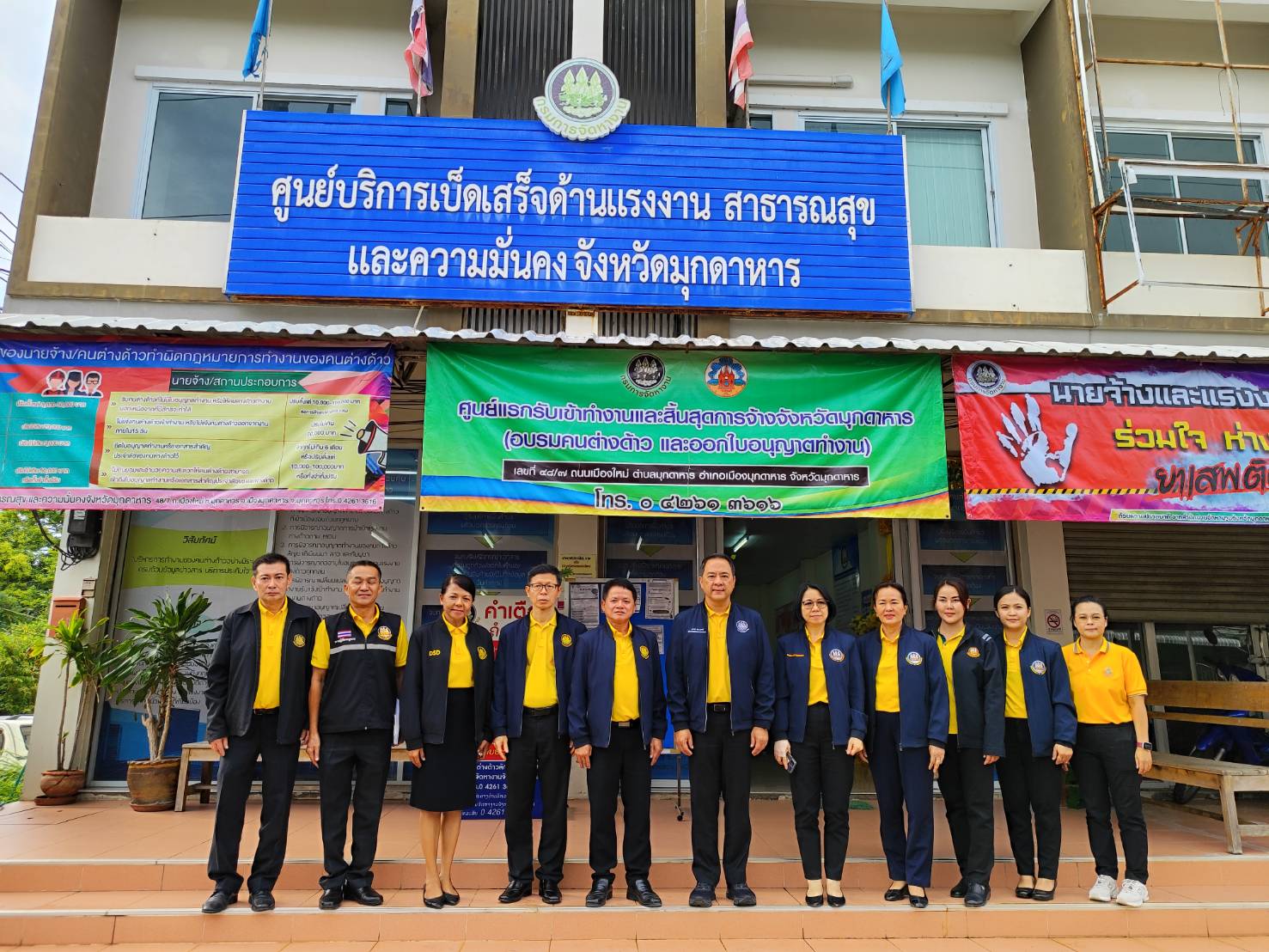 ณ ห้องประชุมดอกช้างน้าว ชั้น 2 ศาลากลางจังหวัดมุกดาหาร เพื่อตรวจติดตามประเมินผลการปฏิบัติงานตามประเด็นแผนการตรวจราชการของผู้ตรวจราชการกระทรวงแรงงาน ประจำปีงบประมาณ พ.ศ. 2567 รอบที่ 3 (Monitoring/Evaluation) และเพื่อขับเคลื่อนเร่งรัดการจัดระบบแรงงานต่างด้าวในพื้นที่จังหวัดชายทะเลและจังหวัดชายแดนที่มีอาณาเขตติดต่อกับประเทศเพื่อนบ้าน พร้อมทั้งประชุมคณะทำงานเฉพาะกิจป้องกันการค้ามนุษย์ด้านแรงงานจังหวัด และลงพื้นที่ตรวจเยี่ยมและให้กำลังใจเจ้าหน้าที่ผู้ปฏิบัติงาน ณ ศูนย์บริการเบ็ดเสร็จด้านแรงงานสาธารณสุขและความมั่นคงจังหวัดมุกดาหาร