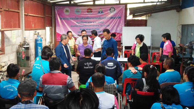 วันอาทิตย์ที่ 24 กุมภาพันธ์ 2562 เวลา 14.15 น. ผู้ตรวจราชการกระทรวงแรงงาน (นายอภิญญา สุจริตตานันท์) ผู้ตรวจราชการกรม กรมการจัดหางาน (นายสุวรรณ์ ดวงตา) ผู้ตรวจราชการกรม สำนักงานประกันสังคม (นางสาวสุมณฑา ไพรสุวรรณา) พร้อมด้วยหัวหน้าส่วนราชการและเจ้าหน้าที่หน่วยงานสังกัดกระทรวงแรงงานจังหวัดหนองบัวลำภู ตรวจเยี่ยมการฝึกอาชีพ และมอบเงินค่าอาหารกลางวันให้กับ ผู้พิการจำนวน 20 คน หลักสูตร”ช่างกลึงโลหะ” ระหว่างวันที่ 20-24 กุมภาพันธ์ 2562 ณ ชมรมคลินิกมนุษย์ล้อ หนองบัวลำภู เลขที่ 69 หมู่ที่ 14 ตำบลหนองบัว อำเภอเมือง จังหวัดหนองบัวลำภู