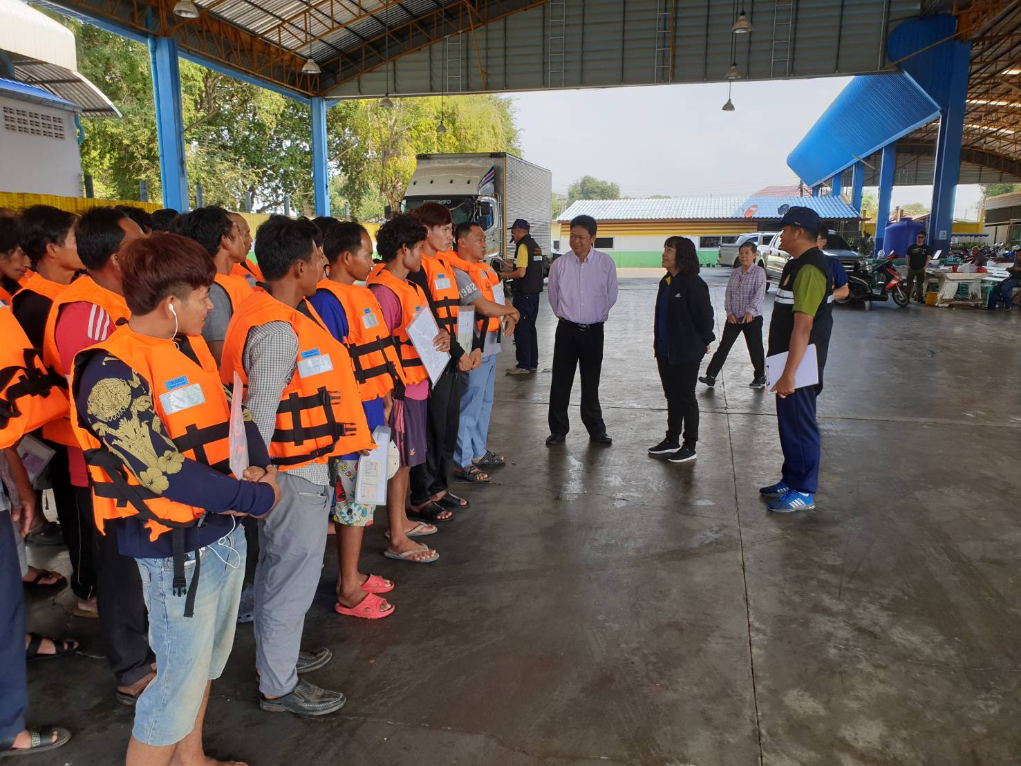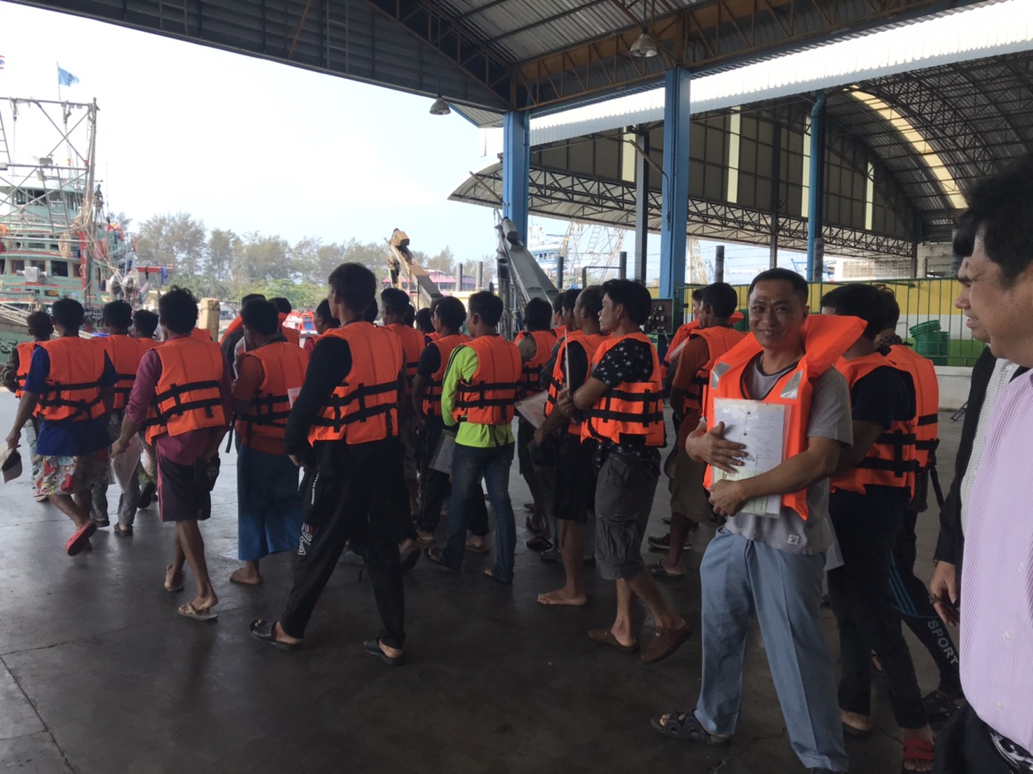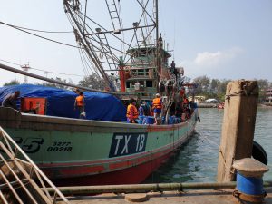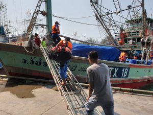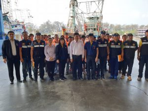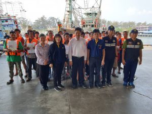 วันพุธที่ 26 กุมภาพันธ์ 2563 เวลา 10.00 น. นายภูมา ธรรมกุล ผู้ตรวจราชการกระทรวงแรงงานพร้อมด้วย นางสาวกรจิรัฏฐ์ พงจันทร์ศธร แรงงานจังหวัดระยอง นายวสันต์ ปาลาศ จัดหางานจังหวัดระยอง และผู้แทนสำนักงานสวัสดิการและคุ้มครองแรงงานจังหวัดระยอง นางปรียาพร บุญโกสุม นักวิชาการแรงงานชำนาญการพิเศษ ตรวจเยี่ยมการปฏิบัติงานของเจ้าหน้าที่ ศูนย์ควบคุมการแจ้งเข้า-ออก เรือประมง (PIPO) ระยอง อ.เมืองระยอง จากนั้นได้ตรวจเยี่ยมการทำงานของเจ้าหน้าที่หน้าท่า ได้พูดคุยกับนายจ้างและลูกจ้างเรือ ว.วัชระ555 ซึ่งมีลูกจ้างรวม 40 คน สัญชาติไทย 1 คน กัมพูชา 39 คน จากการสอบถามสภาพการจ้าง พบว่า ส่วนใหญ่นายจ้างจัดหาที่พักอาศัยโดยแรงงานพาครอบครัวมาอยู่ด้วยกัน รวมถึงเป็นผู้จัดทำเอกสารและออกค่าใช้จ่ายให้ ณ แพปลาศักดิ์สุวรรณ