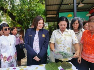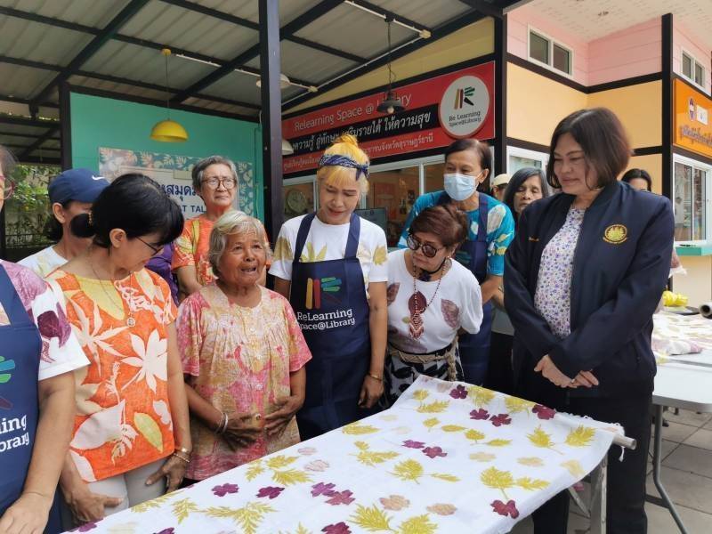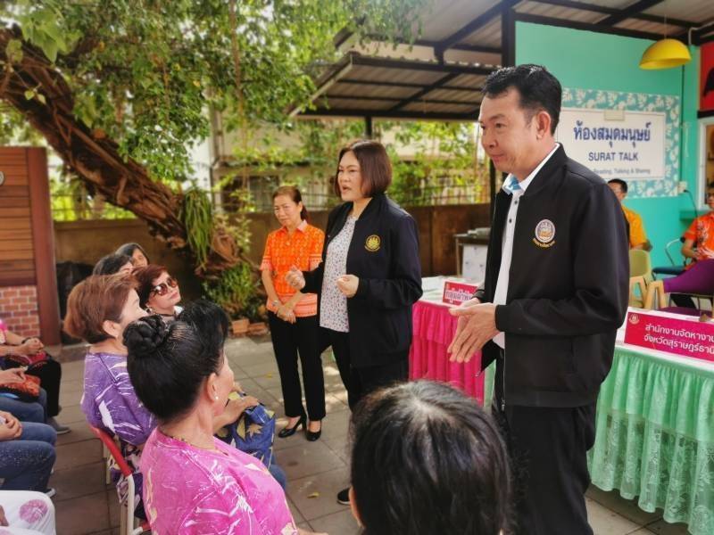 โดยสำนักงานจัดหางานจังหวัดสุราษฎร์ธานี ได้เข้าไปส่งเสริมการฝึกทักษะอาชีพ หลักสูตร การทำผ้าพิมพ์ใบไม้ เพื่อให้ผู้ที่ว่างงานและกลุ่มผู้สูงวัยที่ต้องการหากิจกรรมทำหลังเกษียณอายุ รวมถึงผู้ที่สนใจ ได้รับความรู้และได้ลงมือปฏิบัติในการประกอบอาชีพอิสระที่ตนเองสนใจ รวมทั้งได้รับวัสดุอุปกรณ์เพื่อใช้ในการประกอบอาชีพและสามารถนำความรู้และวัสดุอุปกรณ์ไปใช้ในการต่อยอดประกอบอาชีพหลักหรืออาชีพเสริม เพื่อให้ประกอบอาชีพได้อย่างยั่งยืน โดยมีนางเตือนจิตร วงสวัสดิ์ เป็นวิทยากรบรรยายและฝึกปฏิบัติ