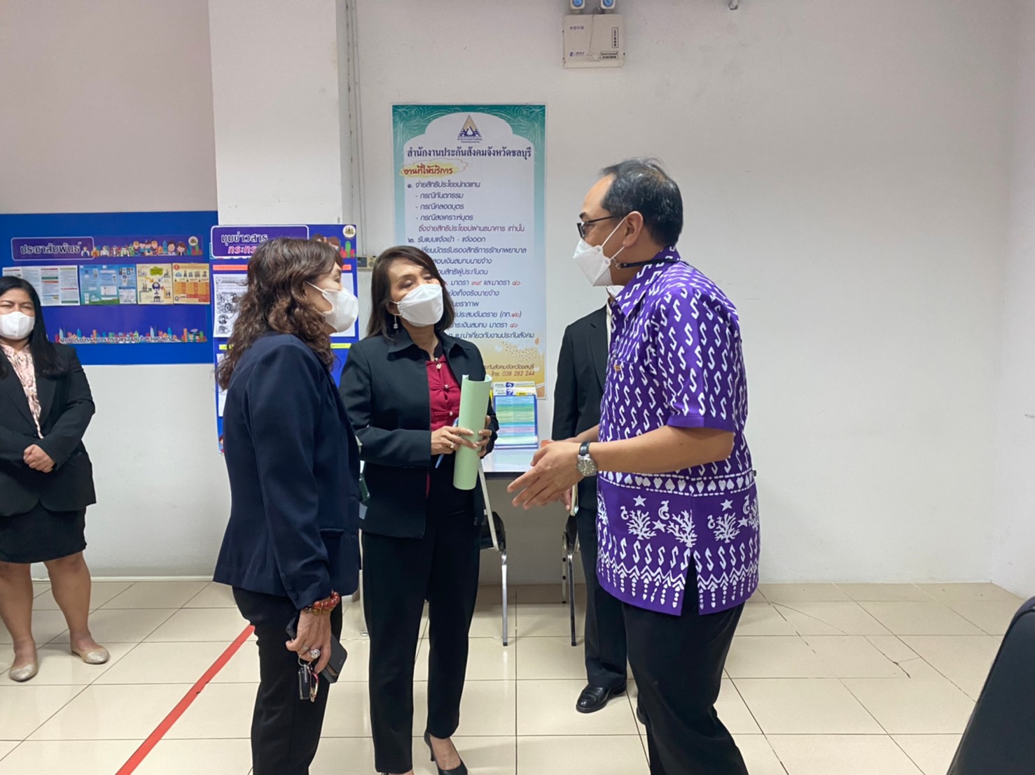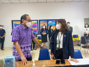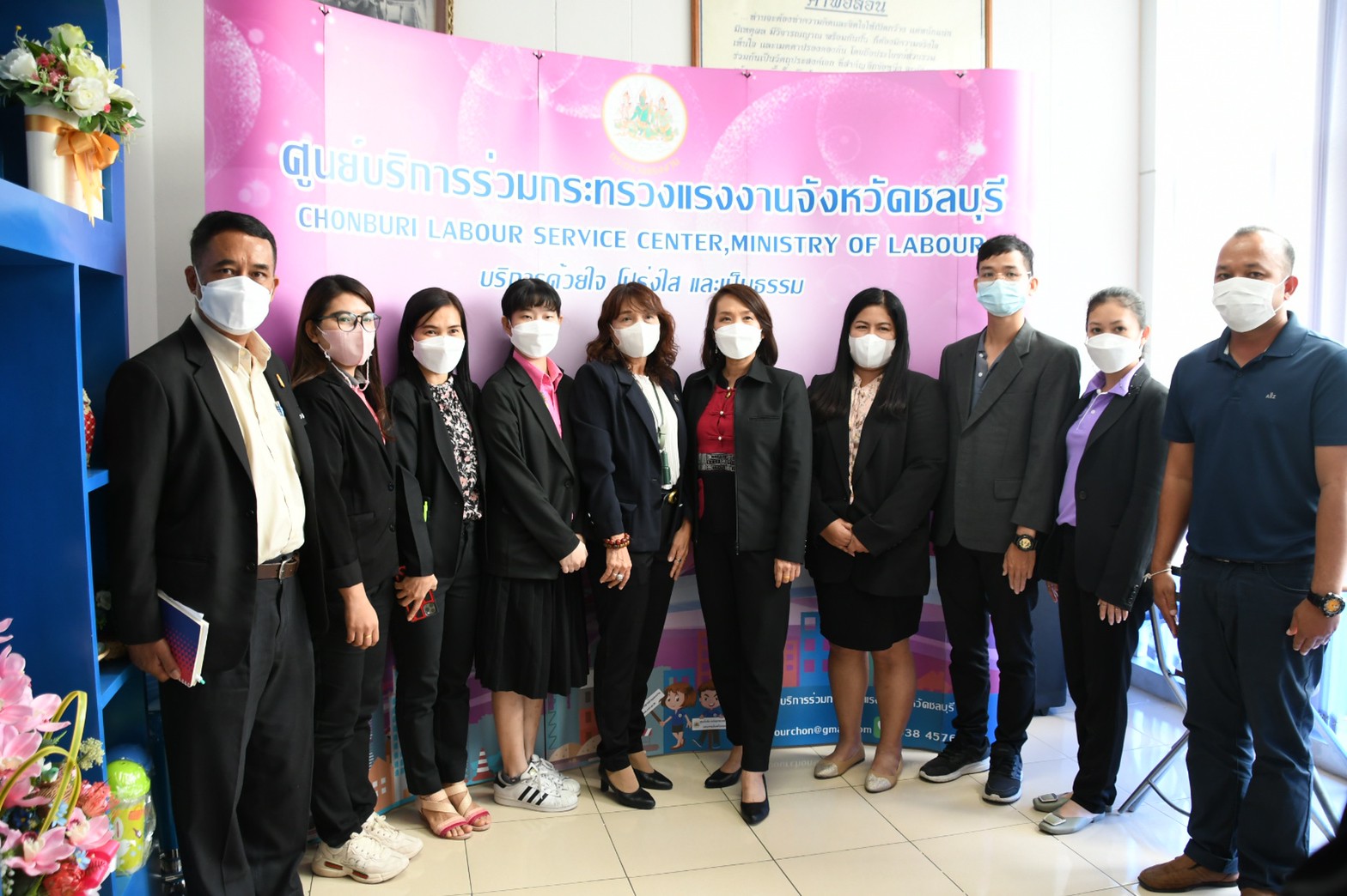 วันอังคารที่ 15 กุมภาพันธ์ 2565 เวลา 13.30 น. นางโสภา เกียรตินิรชา ผู้ตรวจราชการกระทรวงแรงงาน พร้อมด้วยนายศักดินาถ สนธิศักดิ์โยธิน ผู้ตรวจราชการ สำนักงานประกันสังคม และผู้แทนสถาบันพัฒนาฝีมือแรงงาน 3 ชลบุรี ตรวจเยี่ยมและประเมินการดำเนินงานของศูนย์บริการร่วมกระทรวงแรงงานจังหวัดชลบุรี ณ นิคมอุตสาหกรรมอมตะซิตี้ อำเภอเมือง จังหวัดชลบุรี เพื่อคัดเลือกเป็นศูนย์บริการร่วมกระทรวงแรงงานดีเด่นระดับเขตตรวจราชการ โดยมี นางสาวกรจิรัฎฐ์ พงจันทร์ศธร แรงงานจังหวัดชลบุรี นางสาวแสงระวี เกตุเกล้า และนางสาววชิรณาณ์ ถาพิทักษ์เสรี เจ้าหน้าที่ประจำ ศบร.รง.ชลบุรี ให้การต้อนรับและนำเสนอผลการดำเนินงานของศูนย์ฯ