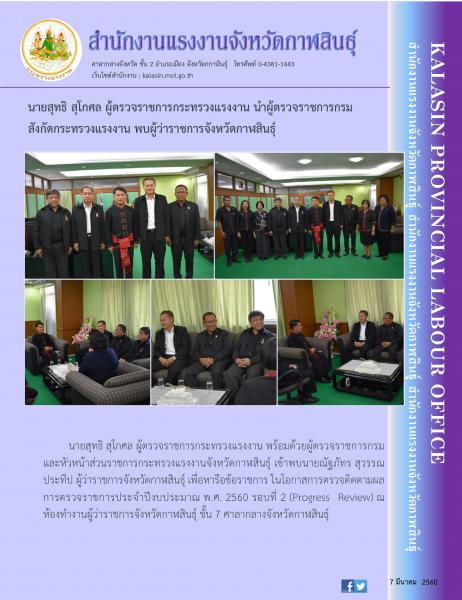 ผู้ตรวจราชการกระทรวงแรงงาน (นายสุทธิ สุโกศล) นำผู้ตรวจราชการกรมสังกัดกระทรวงแรงงาน พบผู้ว่าราชการจังหวัดกาฬสินธุ์