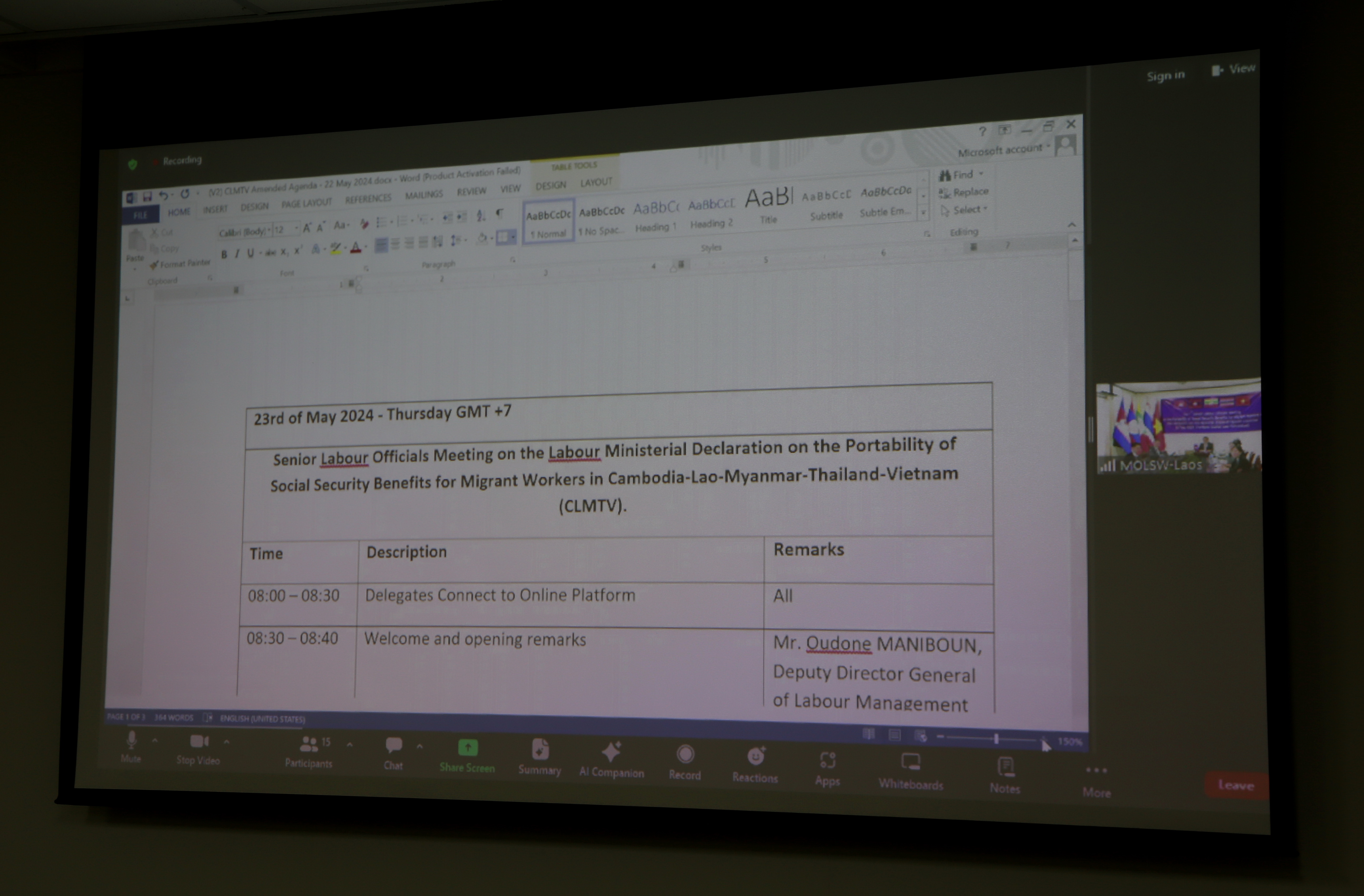 วันที่ 23 พฤษภาคม 2567 เวลา 08.30 น. นายสมาสภ์ ปัทมะสุคนธ์ ผู้ตรวจราชการกระทรวงแรงงาน ร่วมประชุมระดับเจ้าหน้าที่อาวุโสด้านแรงงาน ครั้งที่ 7 และการประชุมระดับรัฐมนตรีแรงงาน ครั้งที่ 4 ว่าด้วยการเคลื่อนย้ายสิทธิประกันสังคมสำหรับแรงงานข้ามชาติในกลุ่มประเทศ CLMTV (ผ่านระบบการประชุมทางไกล) โดยมี นายศักดินาถ สนธิศักดิ์โยธิน ผู้ช่วยปลัดกระทรวงแรงงาน ร่วมการประชุมในครั้งนี้ด้วย ณ ห้องประชุมกองกฎหมาย ชั้น 11 อาคารกระทรวงแรงงาน