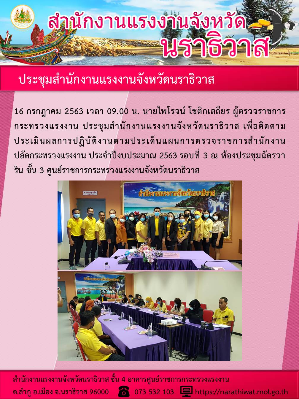 ผู้ตรวจราชการกระทรวงแรงงาน ประชุมติดตามการปฏิบัติงานของสำนักงานแรงงานจังหวัดนราธิวาส